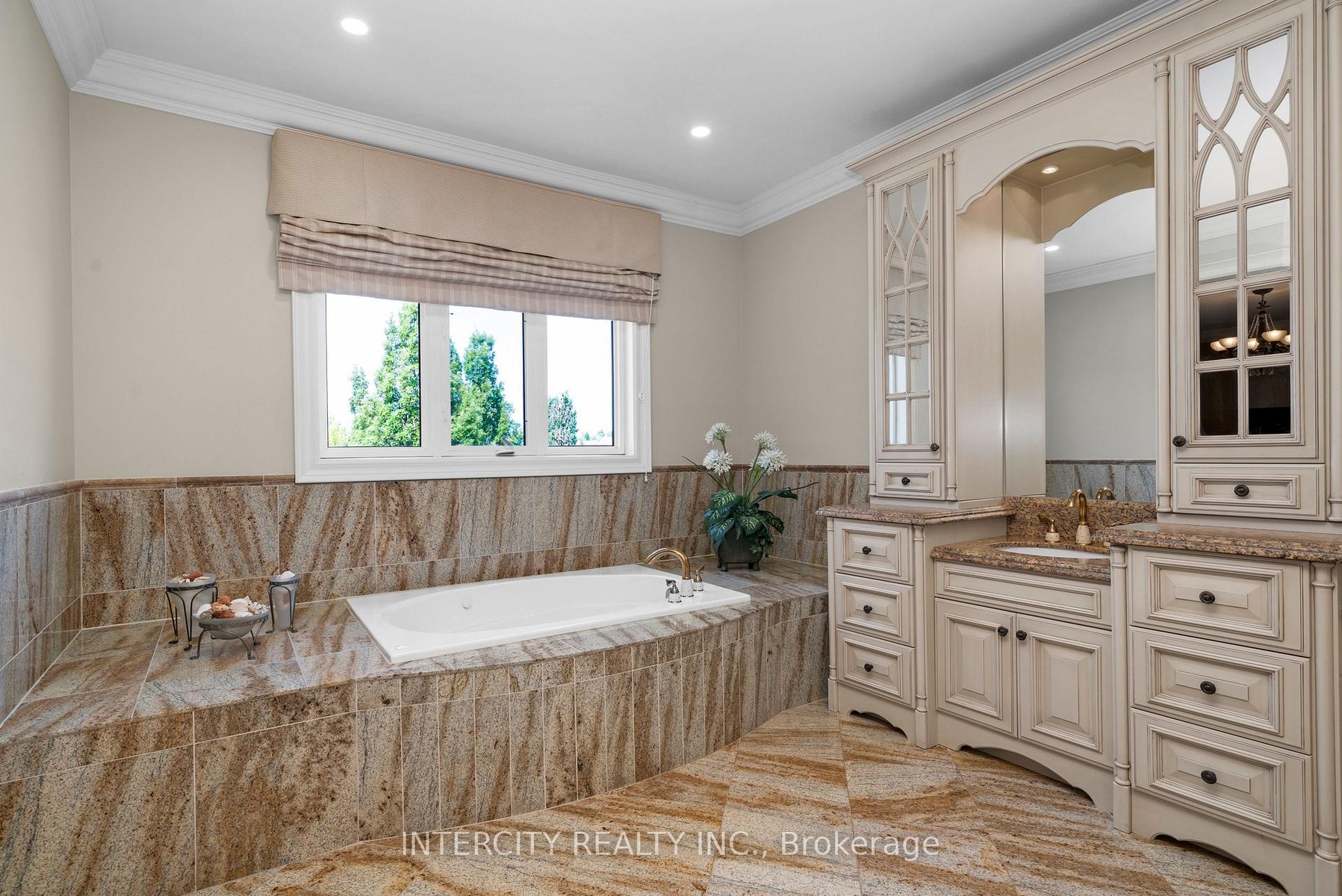 Spectacular custom built 4,163 Sq. Ft. home in a prestigious area of Kleinburg surrounded by executive homes in a family friendly neighborhood. High end finishes throughout. Stone & Wood floors. Walk into grand 19' ceilings in open concept entry and living room. Family room also has vaulted 19' ceilings, 10' ft in basement . Which has plenty of storage and a walk up to a backyard oasis. Property is fully fenced. In ground saltwater pool with newer liner and heater, secured by a wrought iron fence. Cabana with a 3 piece bath and a kitchenette with with sink, cabinets & counter. Plenty of space for lounging in your own resort like setting. Newer Roof. Stone driveway with parking for 8 cars and a 4 car garage - 3 tandem & 1 lift. Solid wood kitchen cabinets with huge island with extra sink, 2 Subzero Pull Out Fridge Drawers & Built-In Island. Crown Moulding throughout. Laundry room has door to garage & stairs to basement plus a bonus 3 piece bathroom. No Expense Spared!! Professionally landscaped and maintained.