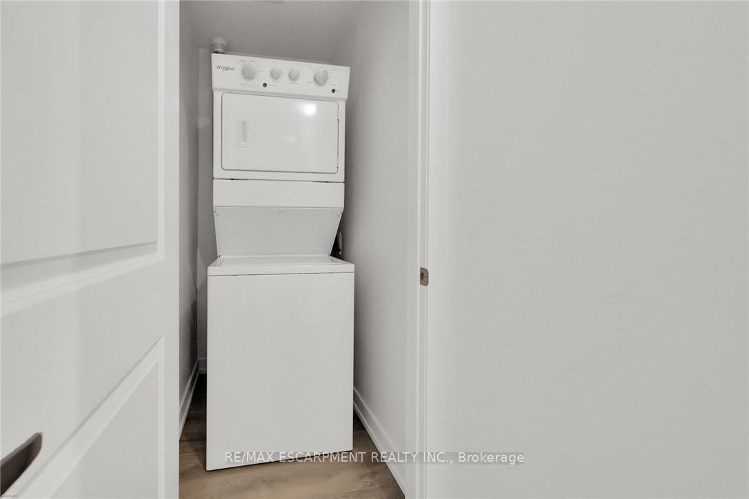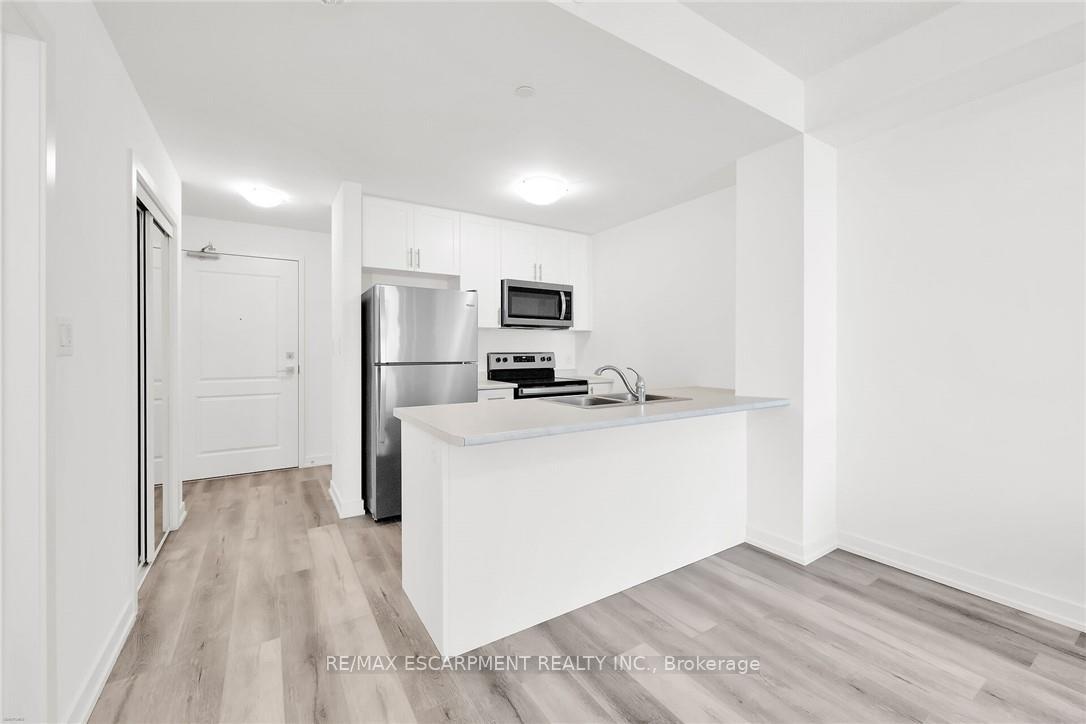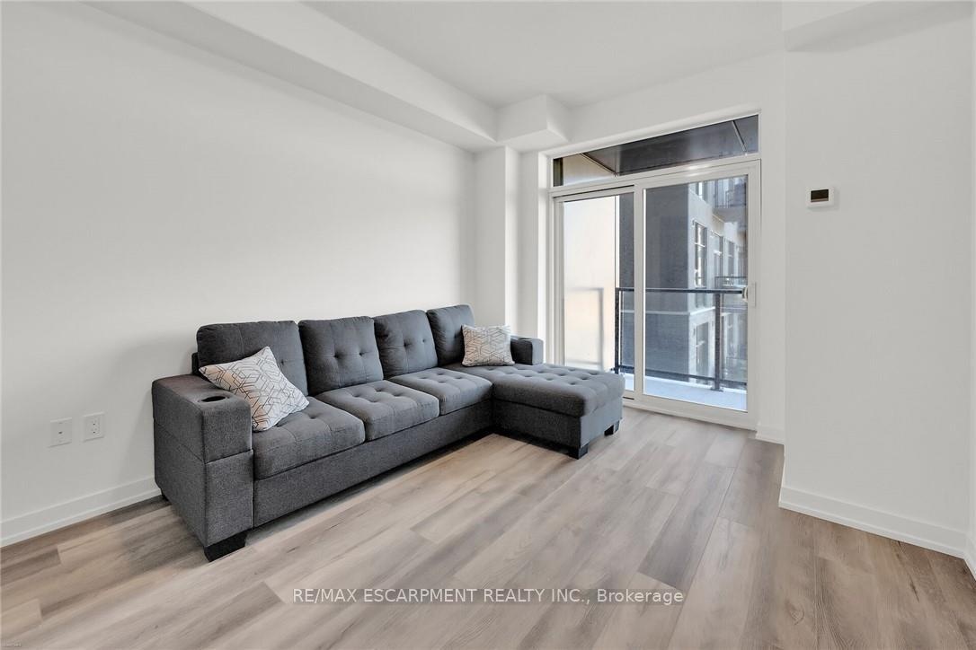 Welcome to this stunning 4th-floor unit in the sought-after Trend 3 building! This 1-bedroom + den, 1-bath condo features a modern open-concept layout with a sleek kitchen equipped with brand-new stainless steel appliances, a stylish breakfast bar, and direct access to a private balcony. The bright and spacious primary bedroom boasts floor-to-ceiling windows and a generous closet, while the versatile den is perfect for a home office. A well-appointed 3-piece bathroom and in-suite laundry add convenience. Includes 1 parking space and locker. Enjoy exceptional building amenities such as a fully equipped gym, party room, rooftop terrace, and bike storage. Prime location-just minutes from Aldershot & Burlington GO stations with easy access to Highways 403/407.