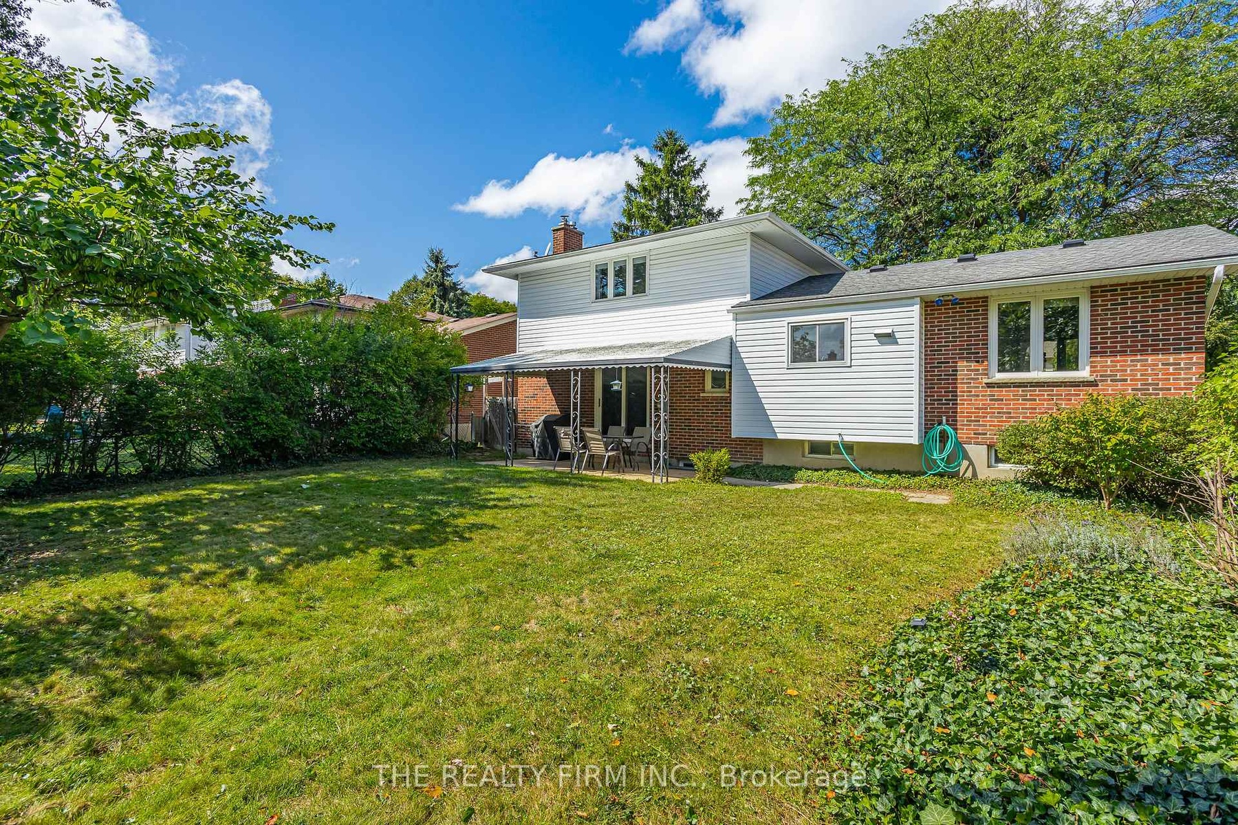 Don't miss this beautifully maintained 5 level side split, located on a quiet crescent in mature, sought-after, Stoneybrook. This home has everything you're looking for, with generous sized bedrooms, a large bright main floor, a spacious recreation room, loads of storage, a large private backyard with a covered patio, even his and hers closets in the primary bedroom. A long list of updates compliment this great home, including; roof, chimney, eaves, soffits, vinyl windows, quartz kitchen counter, stainless steel appliances, hardwood, and updated bathrooms. A fantastic family home with easy access to desirable neighbourhood schools, shopping, and the many neighbourhood amenities, including close-by Masonville Mall. Act fast, this one won't last long.