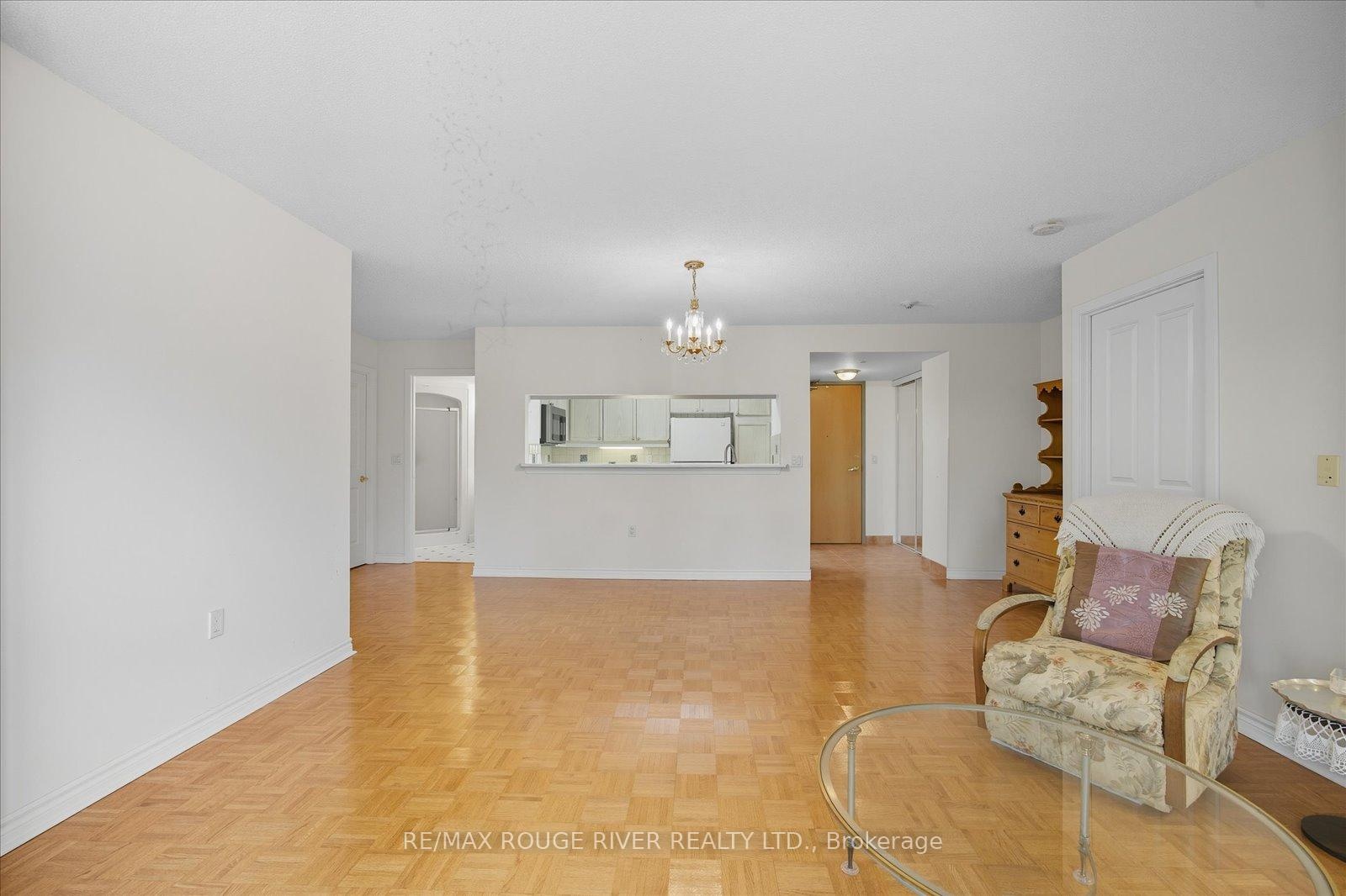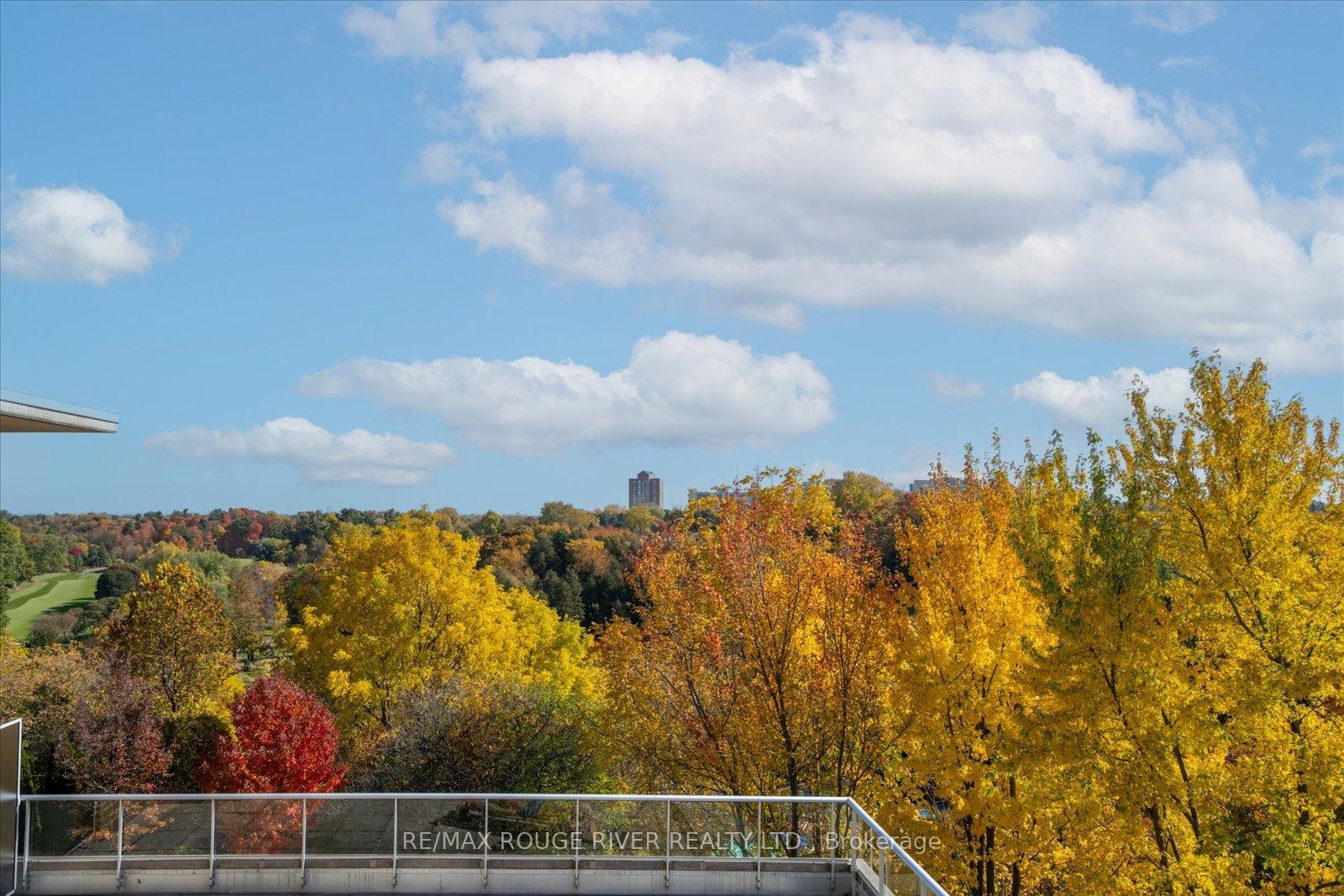Sunfilled south-west facing suite with over 1200 square ft ** The central living area offers a bedroom on each side plus a den, 2 full washrooms, and a Juliette balcony OVERLOOKING RAVINE towards Scarborough Golf Club. Stunning views from every window! All you can hear are the serene sounds of nature. Open-concept living and dining room. Large primary bedroom with two double closets and an upgraded 3 piece ensuite. Generously sized second bedroom with double closets. This suite is on a pet free floor and is in an adult active lifestyle Life Lease Building for ages 55 plus. This serene location surrounded by nature with its spectacular grounds are incredibly rare in the city! This lifestyle has it all, including the very popular "Prague" restaurant steps away. This low rise complex boasts a full calendar of events PLUS a sense of community! Located in park like setting next to 22 acres of property including the Scarborough Golf & Country Club. MUST BE 55+ and max 2 occupants per unit. Building features: gym, rooftop terrace, library, games room, outdoor shuffleboard/BBQ area, Atrium with entertainment/recreation area. Maintenance fee includes: water, parking, locker, Rogers Ignite Internet & TV, HVAC maintenance and common elements. Life Lease occupant to pay Hydro and Gas.