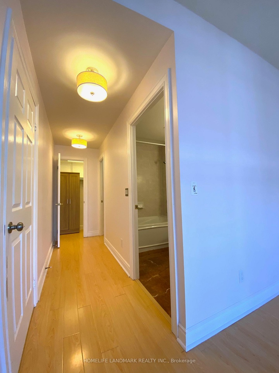 Absolutely Stunning 2+1 Bedroom, 2 Bathroom Luxury Condo at the Prestigious "Rockefeller" by Daniels. This bright and spacious unit boasts a thoughtfully designed split-bedroom layout, with a versatile den that can serve as a third bedroom. The kitchen features a stylish backsplash, a countertop breakfast bar, and modern finishes. The primary bedroom offers a 4-piece ensuite and a large walk-in closet for ample storage. Enjoy the convenience of being steps away from Bayview Subway Station, TTC, YMCA, and Bayview Village Mall. Quick access to DVP, Hwy 404, Hwy 401, and Yonge Street ensures seamless connectivity. Building Amenities: Indoor pool, billiards room, sauna, jacuzzi, party room, theatre room, library, and an on-site convenience store. This unit is perfect for those seeking luxury, comfort, and unbeatable location! **EXTRAS** Fridge, Stove, Microwave, B/I Dish Wsher, Washer, Dryer, All Elf's, All Window Coverings, One Parking and One Locker