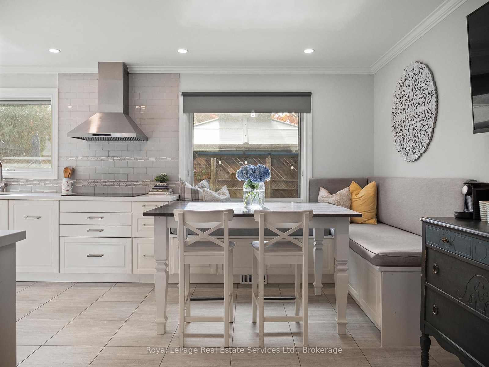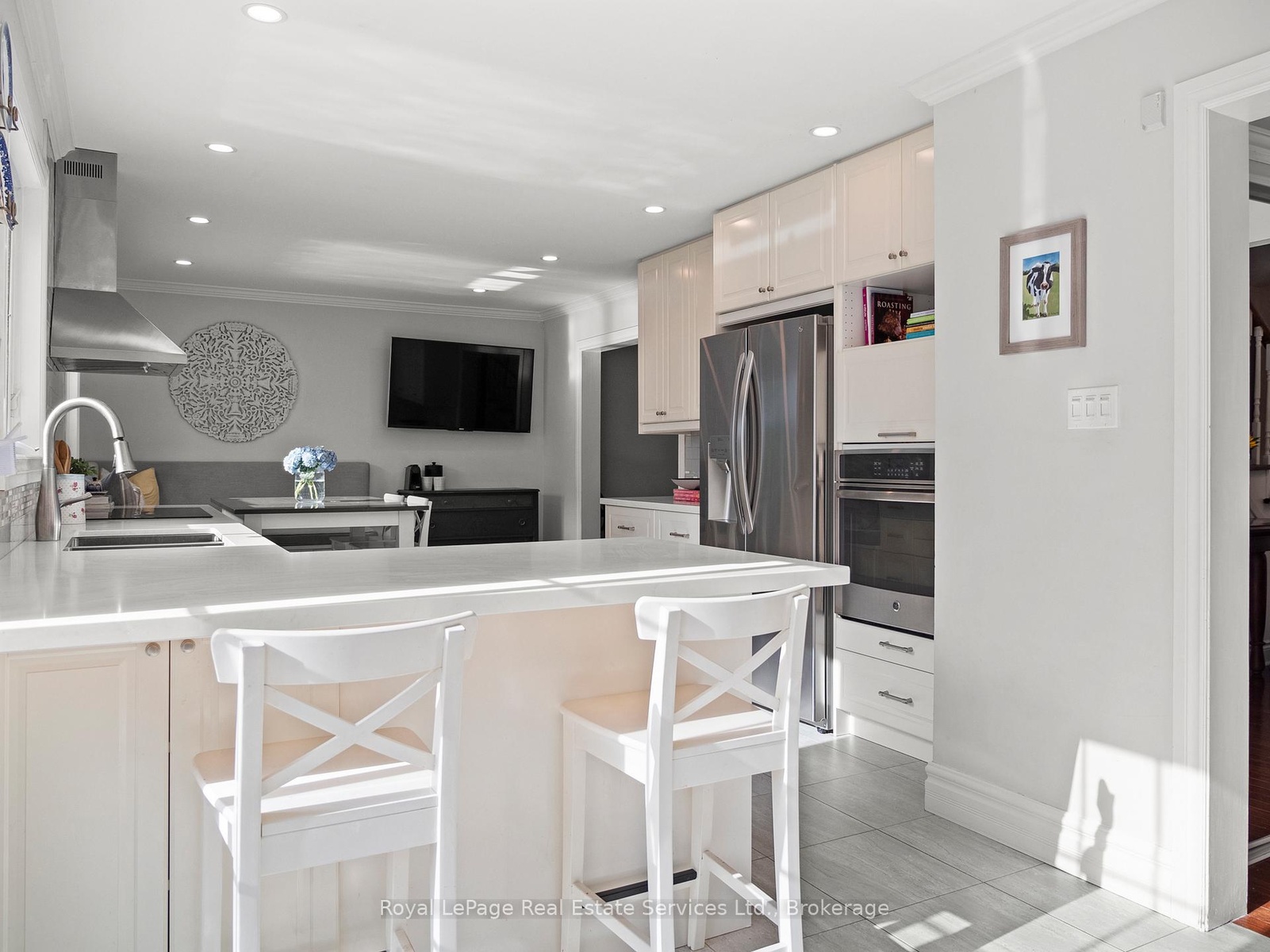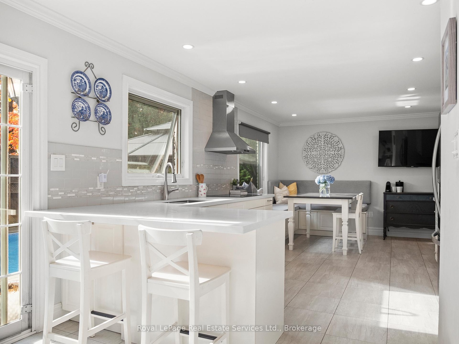 Welcome to 2480 Waterford Street in West Oakville. An updated 2 Storey Family home situated in an alcove on a quiet street. A covered porch leads to the custom front door entry and the spacious foyer. To the right is the Living/Dining Room and straight ahead the completely renovated Kitchen with many built ins, double sink and an additional single sink, bright windows and large eating area. The main floor Family Room features a gas fireplace and a walkout to the aboveground pool (half buried). The pool is surrounded by a two tiered deck and has a built in bar for entertaining. The Primary Bedroom is on the second floor with hardwood flooring and a 2 piece ensuite. There are two more bedrooms on the second floor and a renovated 4 piece Bathroom. Down to the basement where you will find a spacious Recreation Room and two additional Bedrooms (one could easily be used as a games room) as well as a 3 piece bathroom and wet/dry Sauna (as is) with cedar walls.
