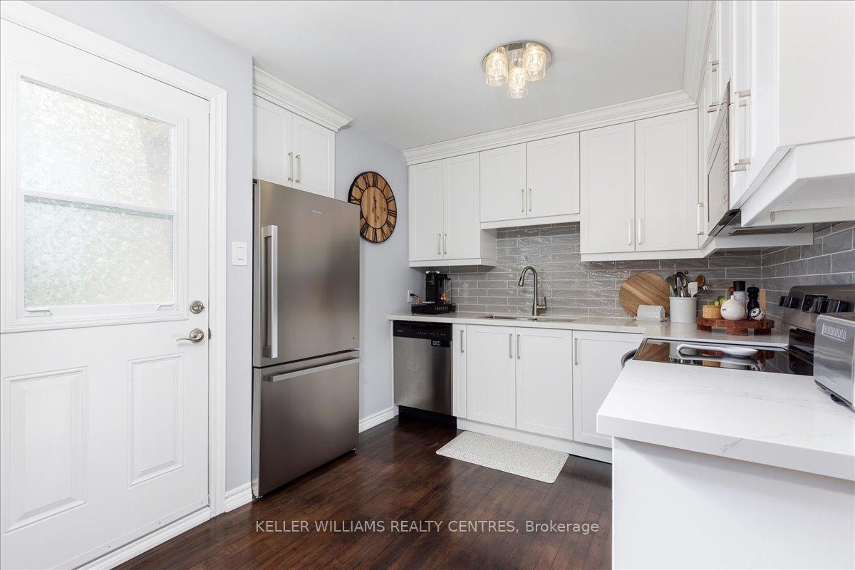 Chill Vibes & Modern Living on a Quiet Court! Welcome to 8 Fairbairn Court, a beautifully updated 3+1 bedroom, 3-bath semi-detached home tucked away on a private, family-friendly cul-de-sac, just minutes from HWY 401 for easy commuting. This move-in-ready gem sits on a massive pie-shaped lot with a fully fenced backyard, perfect for entertaining or unwinding. Enjoy summer BBQs on the spacious deck, kick back on a separate relaxation platform, and take advantage of two large storage sheds and plenty of space for gardening. Step inside to a bright, open-concept main floor featuring a newly renovated modern white kitchen with stainless steel appliances, fresh paint throughout, and laminate flooring; carpet-free for easy maintenance. Upstairs, you'll find 3 generously sized bedrooms and updated bathrooms that blend style with comfort. Perfect for down-sizers, multi-generational families or anyone wanting main-level convenience. The fully finished lower level offers serious bonus space with a huge rec room, a moody and cozy living area, a 4th bedroom, and a 4-piece bath with a deep Jacuzzi tub (jets as-is), ideal for guest quarters, in-law potential, or teen retreat. There's also a home office nook, a dedicated laundry area, and smart under-stairs storage. If you're looking for modern updates, chill vibes, and tons of space both inside and out, this one checks all the boxes. Come and take a look!