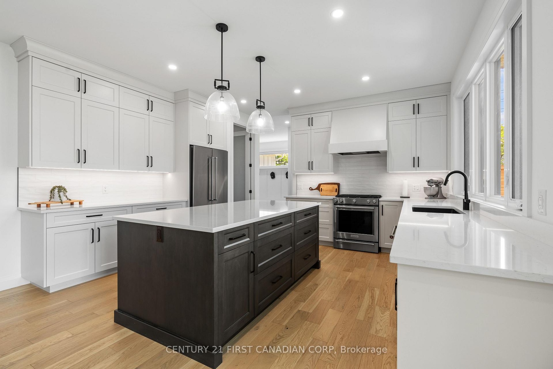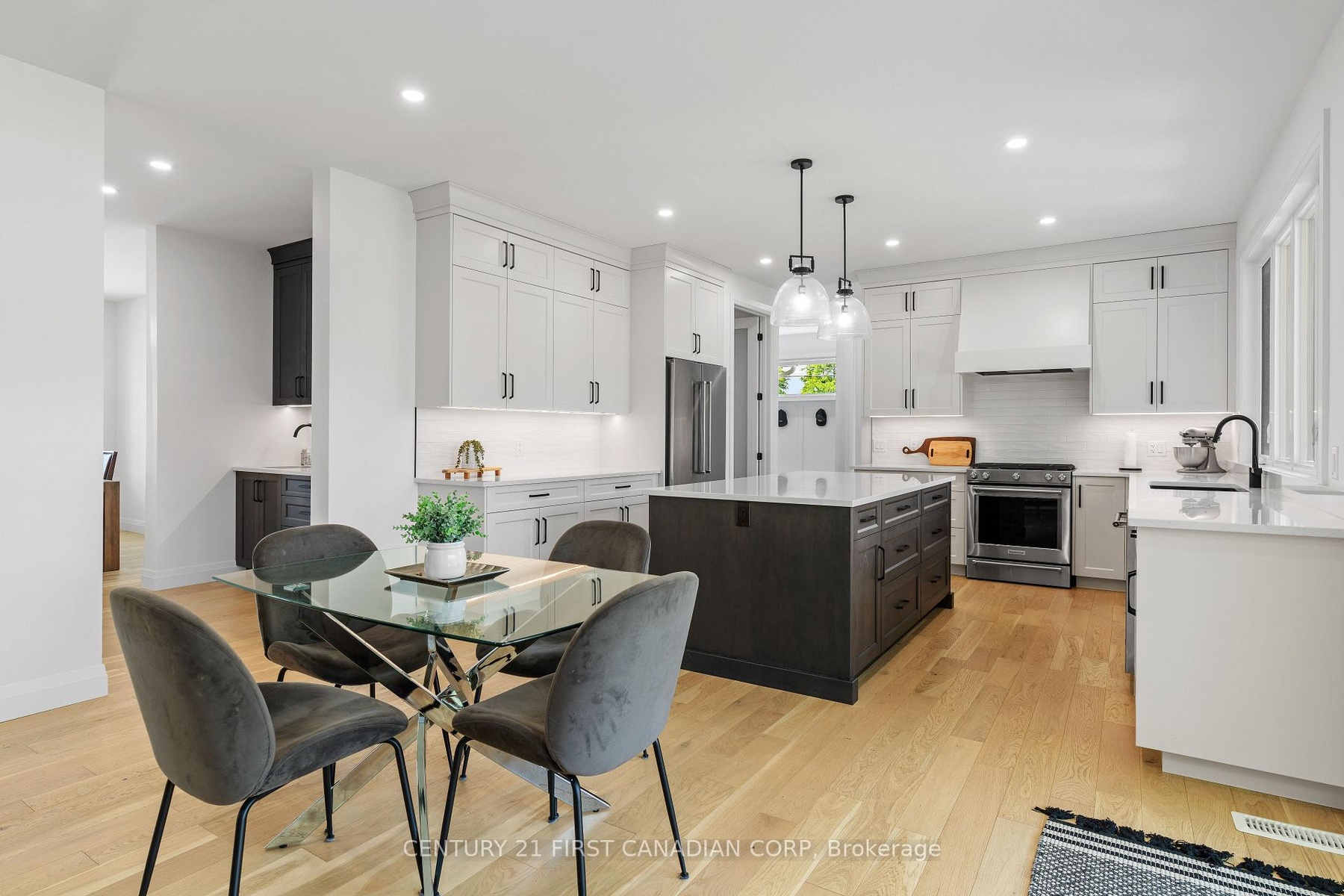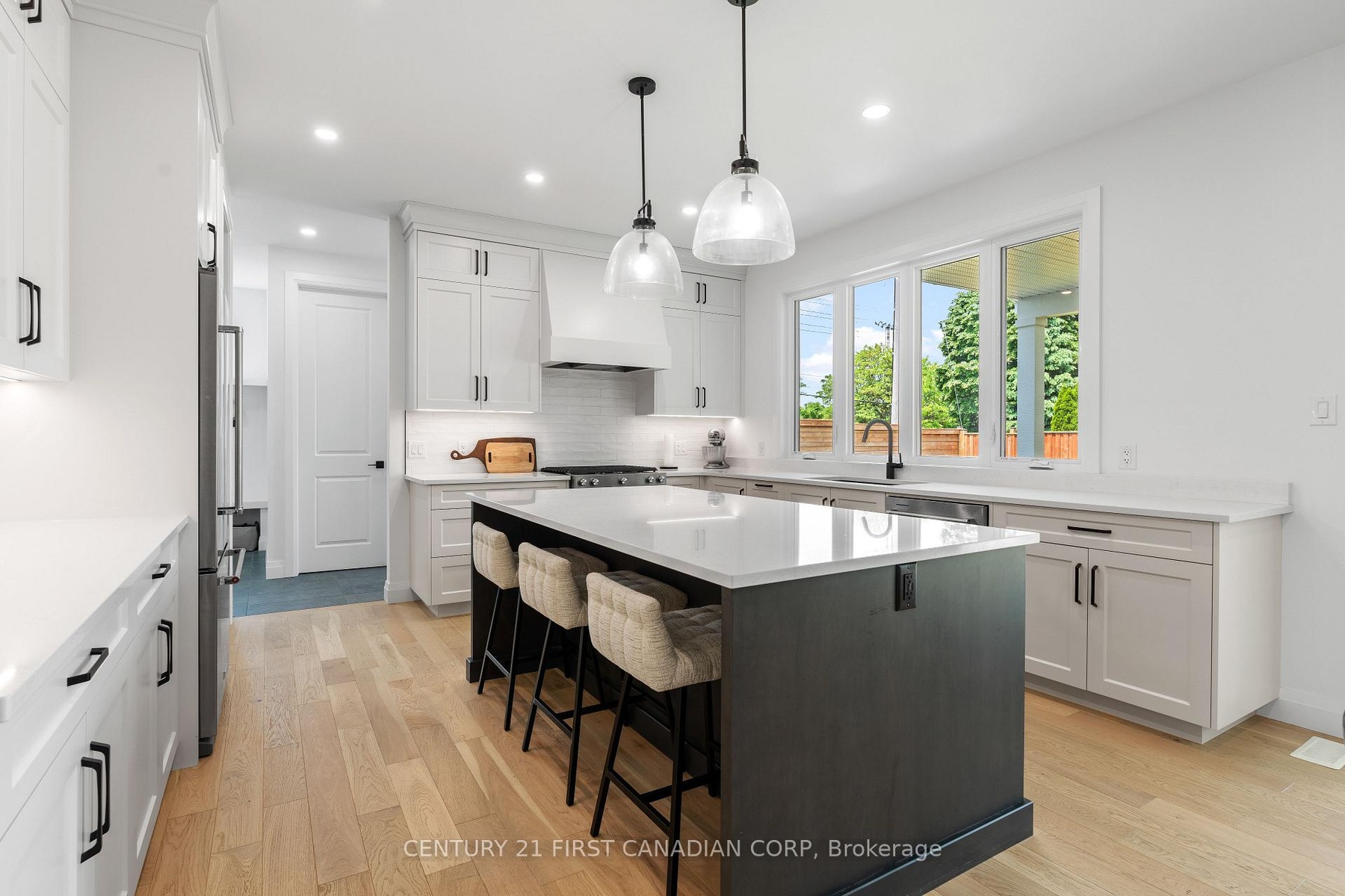 Custom-built by Castell Homes, this exceptional 4+1 bedroom, 4.5 bath home is located in the prestigious Boler Heights community in London. Set at the end of an exclusive court, it offers over 4,300 square feet of finished space on a fully fenced, spacious lot with a complete Rain Bird irrigation system. The open-concept main floor features a great room with gas fireplace and custom built-ins, a chef's kitchen with quartz countertops, large island, gas stove, walk-in pantry, and a butler's pantry with bar fridge connecting to the formal dining room. A private office, mudroom, and powder room complete the level. Upstairs includes four bedrooms, each with bathroom access, including a luxurious primary suite with a walk-in closet and spa-inspired ensuite. A convenient laundry room adds practicality. The finished lower level offers a spacious rec room, games area, fitness room, fifth bedroom, and full bath. A covered 22' x 12' deck overlooks the backyard. Located close to Byron, Optimist Park, and Westwood Power Centre, with easy access to Highway 401.