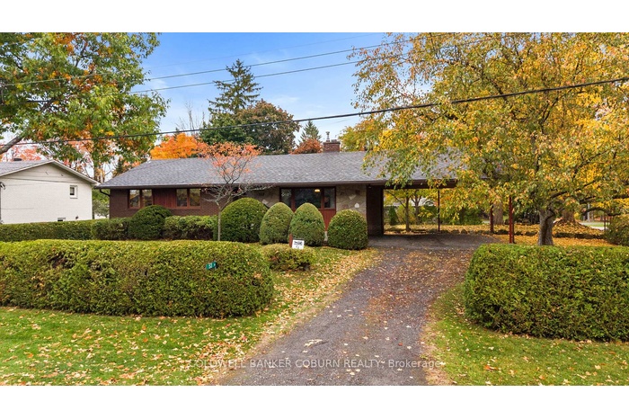 Timeless Bungalow on a Premier Corner Lot in Hearts Desire! Step into 53 Eisenhower, a classic 1964 bungalow that radiates warmth, charm, and potential. This 3-bedroom, 2-bathroom home welcomes you with gleaming hardwood floors that flow throughout the main living areas. Large windows fill the space with natural light, highlighting the home's inviting layout and highlighting the character of this mid-century gem. The primary bedroom boasts a convenient 2-piece ensuite, while the other bedrooms are generously sized, perfect for family, guests, or a home office. The full basement is partially finished, providing flexible space for recreation, storage, or a creative project, with room to expand and customize according to your vision. Situated on a rare and impressive 120 x 125 ft corner lot, the property is framed by mature trees, offering both privacy and a serene, park-like setting. The expansive yard provides endless possibilities for outdoor entertaining, gardening, or simply enjoying the tranquility of your surroundings. Nestled in the highly regarded Hearts Desire neighbourhood, this home offers a peaceful, family-oriented environment while remaining close to parks, walking trails including beautiful Heart's Desire Loop Trail, schools, and local amenities. Enjoy a sense of community with neighbors who value quiet streets, natural beauty, and a welcoming atmosphere. Whether you're looking to maintain its classic charm or envision a renovation to make it your own, 53 Eisenhower is a home full of character, potential, and lifestyle appeal. It's more than just a house - it's a canvas for creating your perfect family haven in one of Ottawa's most desirable communities.