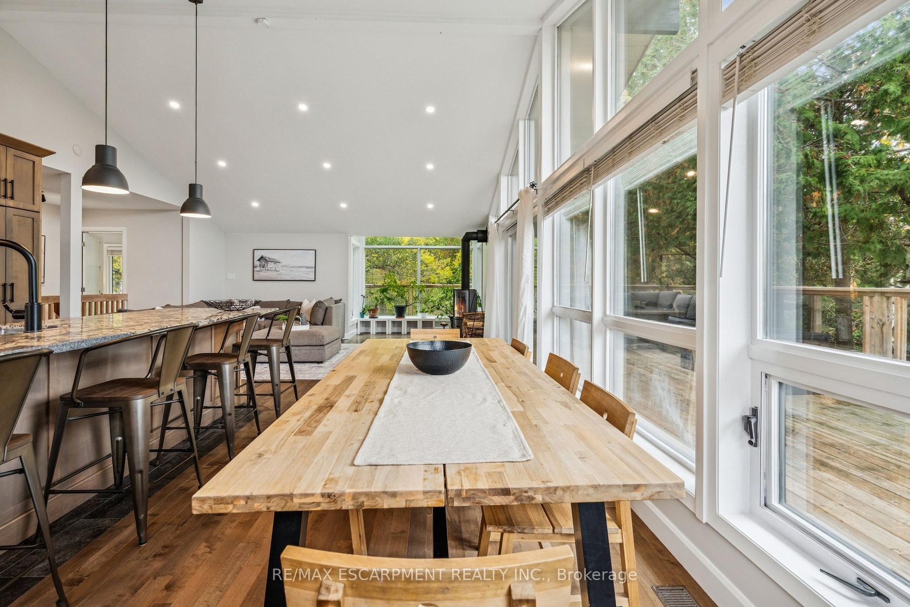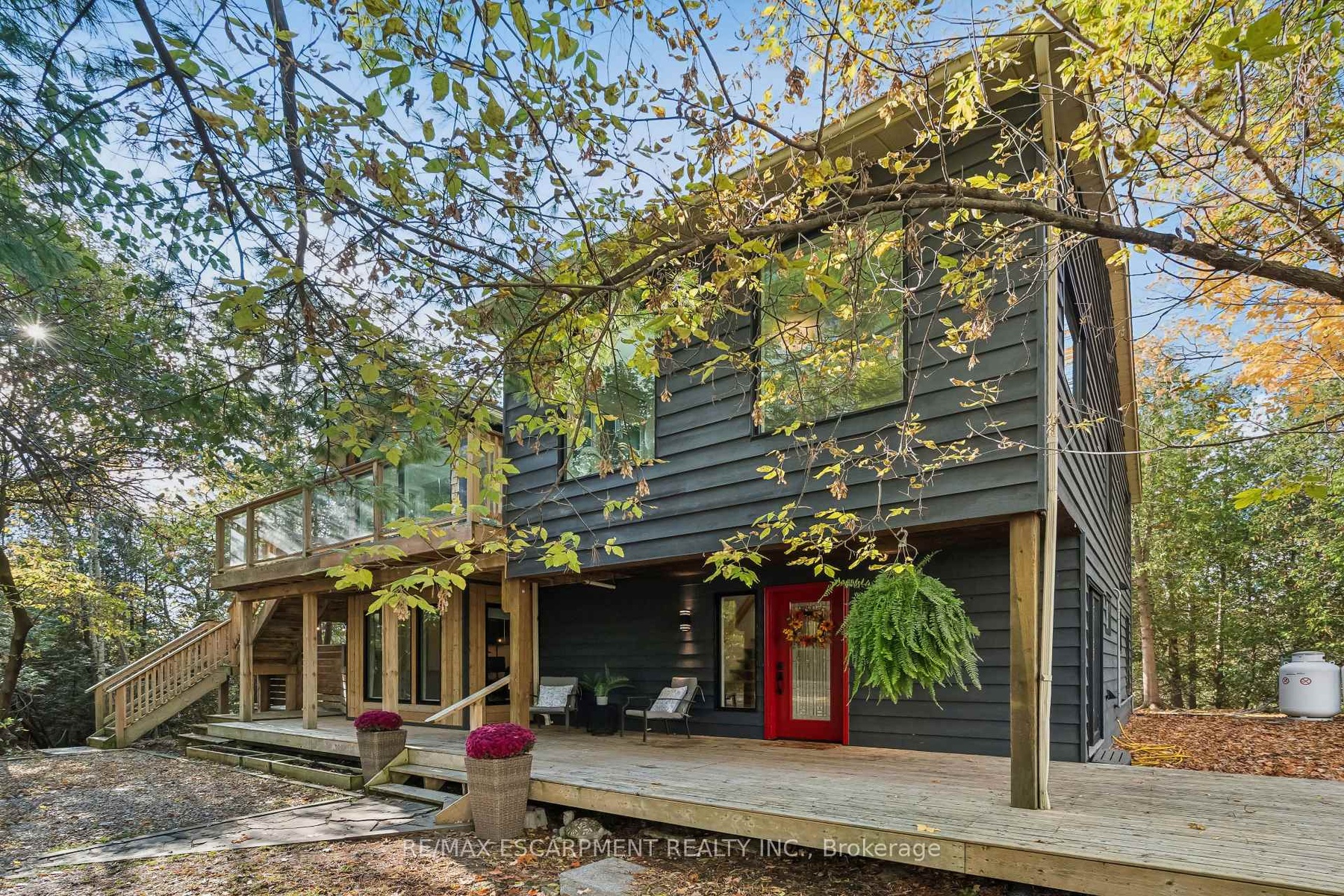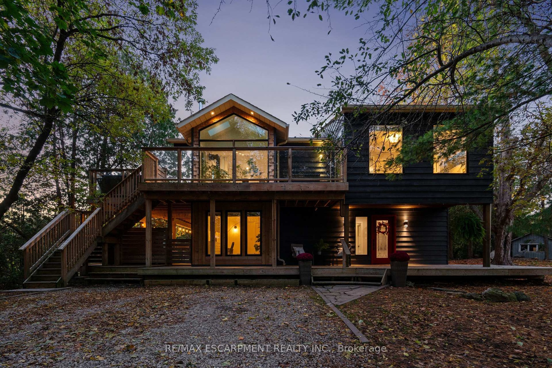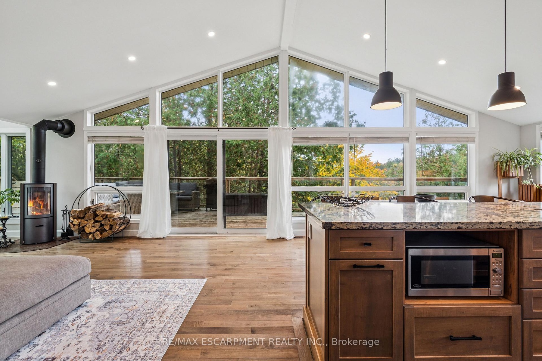 OVERLOOKS ROCKWOOD CONSERVATON! CHALET STYLE HOME! OFF THE BEATEN PATH! Tucked away off a quiet road and overlooking the forested beauty of Rockwood Conservation Area, 118 Old Quarry Road offers refined, nature-connected living with modern design sensibility. Step inside to the entry-level where you'll find two serene bedrooms, a cozy family room with a wood-burning fireplace, and a well-appointed laundry area - all oriented for peace and privacy. This level walks out to a deck with glass panels and a hot tub, offering unobstructed views of the conservation area just beyond your backyard. Ascend to the upper level, where form meets function in a bright, open-concept kitchen, dining, and living space. Here, floor-to-ceiling windows stretch wall to wall, drawing in light and framing the lush surroundings. A second wood-burning fireplace adds a modern warmth to the minimalist aesthetic, while the walkout deck continues the flow between indoors and out. Also on this level: two additional bedrooms, and a spa-inspired 4-piece bath with a soaker tub and separate glass shower, all renovated in 2019 alongside the new kitchen, flooring, decks, and bathrooms. Outdoors, enjoy detached one-car garage and parking for four. The included stainless-steel appliances and on-demand water heater round out this stylish yet sustainable offering. Set against the backdrop of hiking, kayaking, and camping at Rockwood Conservation, yet just 25 minutes to the 401 and minutes to Guelph or Acton GO, this is where lifestyle and location align.