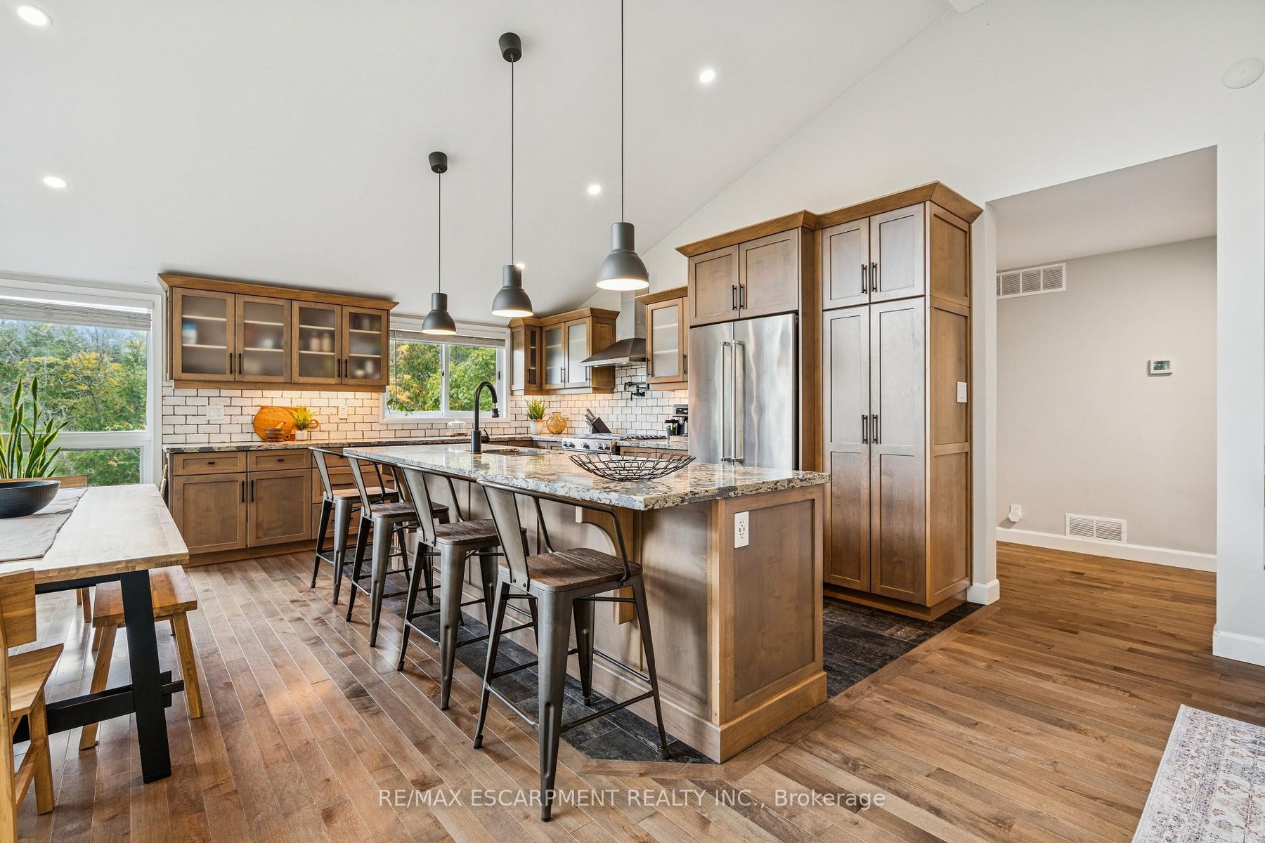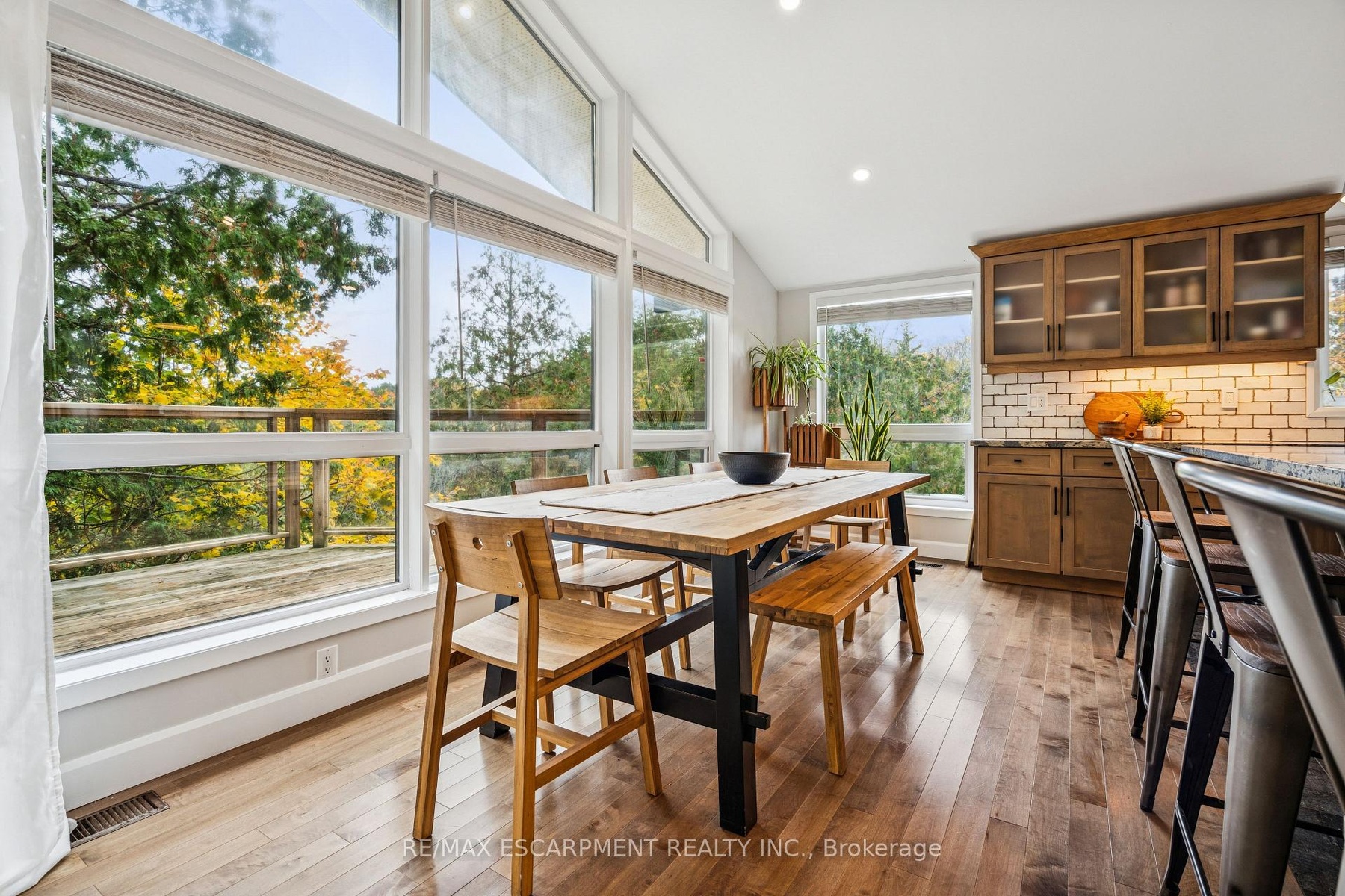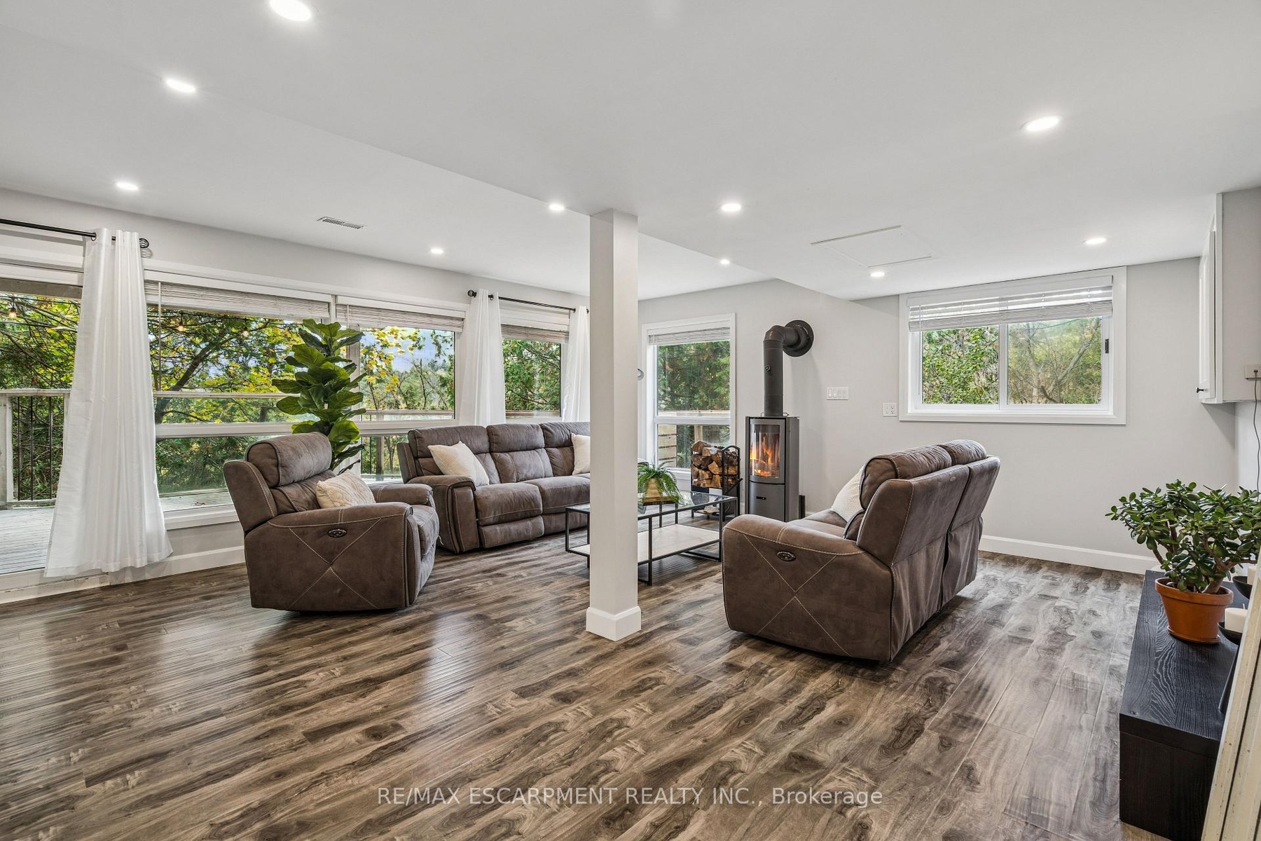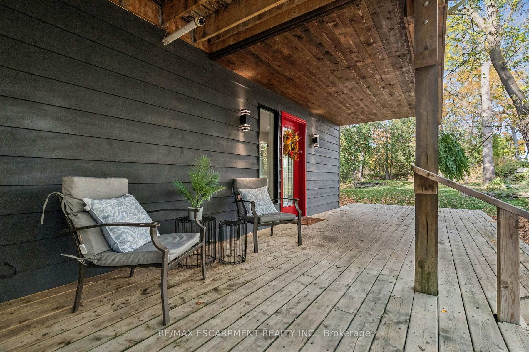 OVERLOOKS ROCKWOOD CONSERVATON! CHALET STYLE HOME! OFF THE BEATEN PATH! Tucked away off a quiet road and overlooking the forested beauty of Rockwood Conservation Area, 118 Old Quarry Road offers refined, nature-connected living with modern design sensibility. Step inside to the entry-level where you'll find two serene bedrooms, a cozy family room with a wood-burning fireplace, and a well-appointed laundry area - all oriented for peace and privacy. This level walks out to a deck with glass panels and a hot tub, offering unobstructed views of the conservation area just beyond your backyard. Ascend to the upper level, where form meets function in a bright, open-concept kitchen, dining, and living space. Here, floor-to-ceiling windows stretch wall to wall, drawing in light and framing the lush surroundings. A second wood-burning fireplace adds a modern warmth to the minimalist aesthetic, while the walkout deck continues the flow between indoors and out. Also on this level: two additional bedrooms, and a spa-inspired 4-piece bath with a soaker tub and separate glass shower, all renovated in 2019 alongside the new kitchen, flooring, decks, and bathrooms. Outdoors, enjoy detached one-car garage and parking for four. The included stainless-steel appliances and on-demand water heater round out this stylish yet sustainable offering. Set against the backdrop of hiking, kayaking, and camping at Rockwood Conservation, yet just 25 minutes to the 401 and minutes to Guelph or Acton GO, this is where lifestyle and location align.