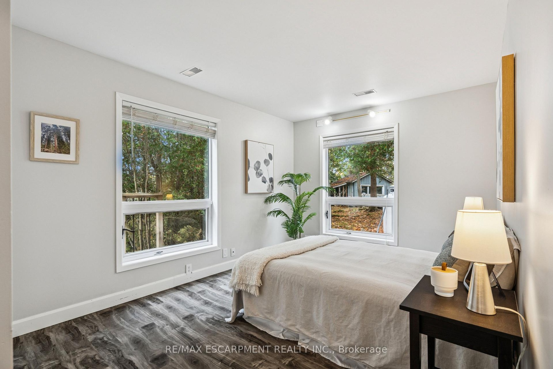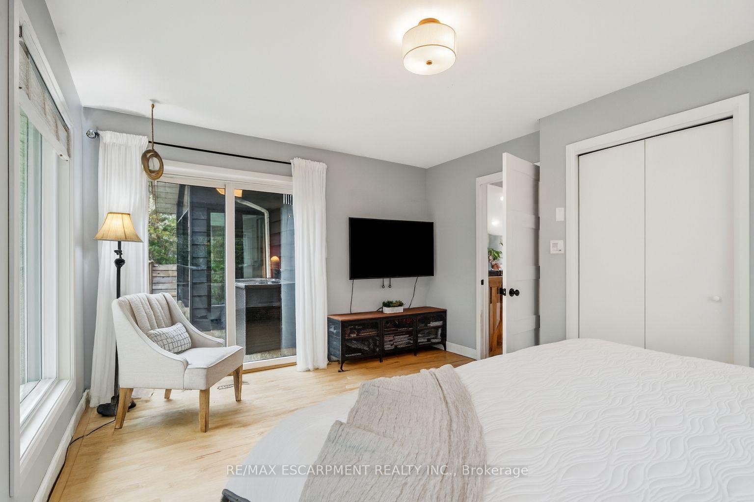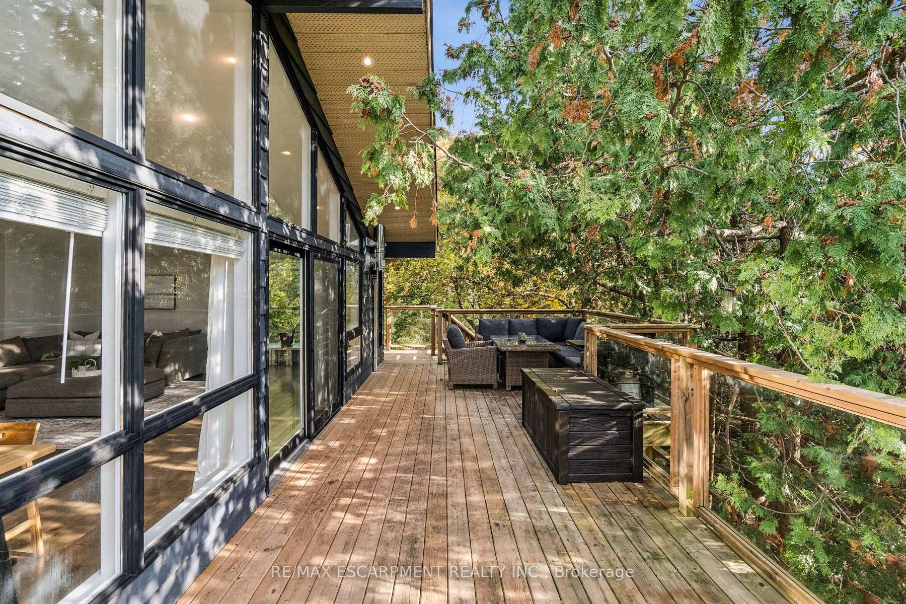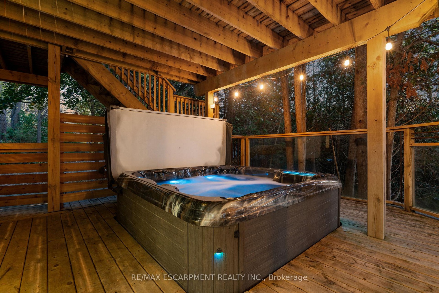 OVERLOOKS ROCKWOOD CONSERVATON! CHALET STYLE HOME! OFF THE BEATEN PATH! Tucked away off a quiet road and overlooking the forested beauty of Rockwood Conservation Area, 118 Old Quarry Road offers refined, nature-connected living with modern design sensibility. Step inside to the entry-level where you'll find two serene bedrooms, a cozy family room with a wood-burning fireplace, and a well-appointed laundry area - all oriented for peace and privacy. This level walks out to a deck with glass panels and a hot tub, offering unobstructed views of the conservation area just beyond your backyard. Ascend to the upper level, where form meets function in a bright, open-concept kitchen, dining, and living space. Here, floor-to-ceiling windows stretch wall to wall, drawing in light and framing the lush surroundings. A second wood-burning fireplace adds a modern warmth to the minimalist aesthetic, while the walkout deck continues the flow between indoors and out. Also on this level: two additional bedrooms, and a spa-inspired 4-piece bath with a soaker tub and separate glass shower, all renovated in 2019 alongside the new kitchen, flooring, decks, and bathrooms. Outdoors, enjoy detached one-car garage and parking for four. The included stainless-steel appliances and on-demand water heater round out this stylish yet sustainable offering. Set against the backdrop of hiking, kayaking, and camping at Rockwood Conservation, yet just 25 minutes to the 401 and minutes to Guelph or Acton GO, this is where lifestyle and location align.