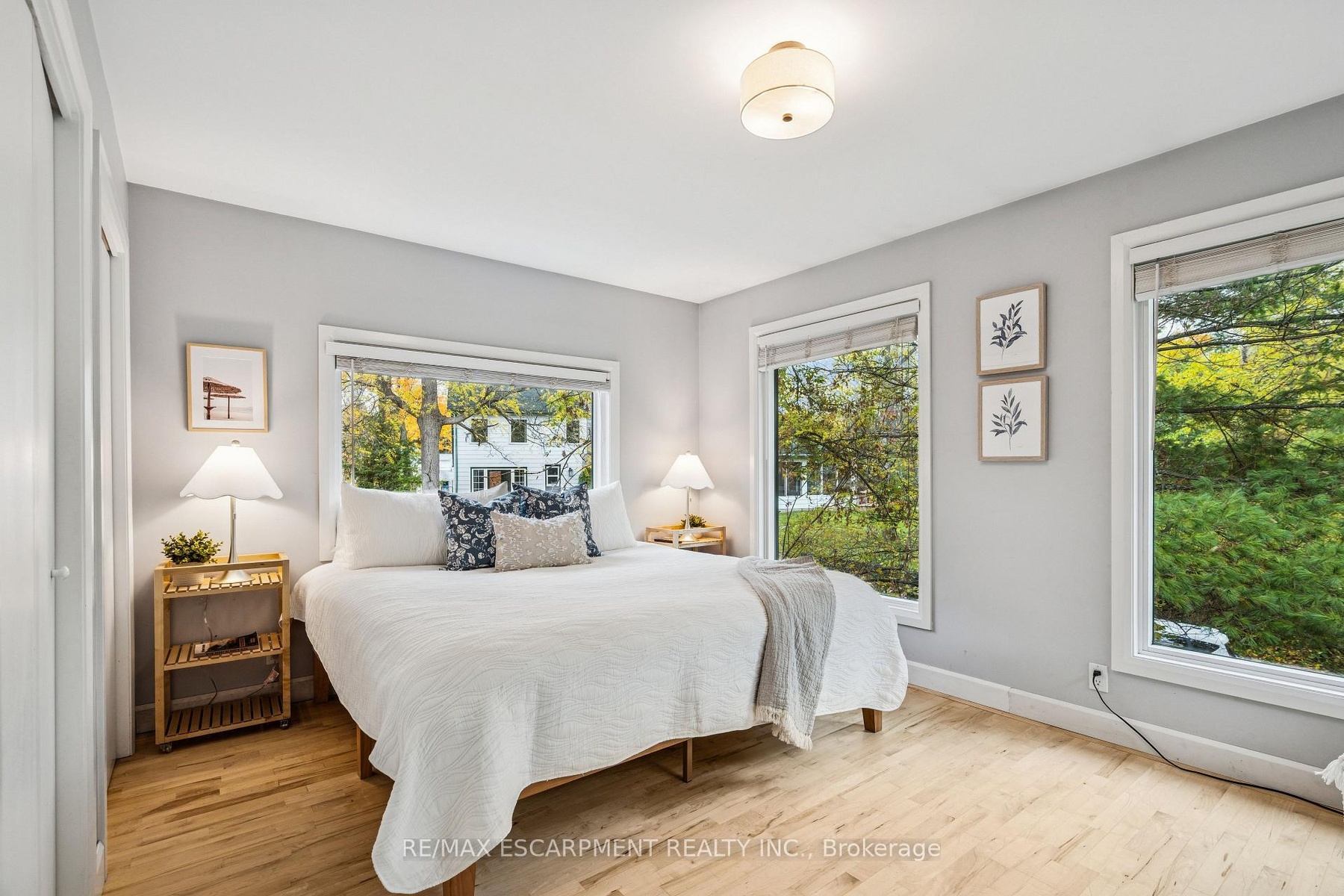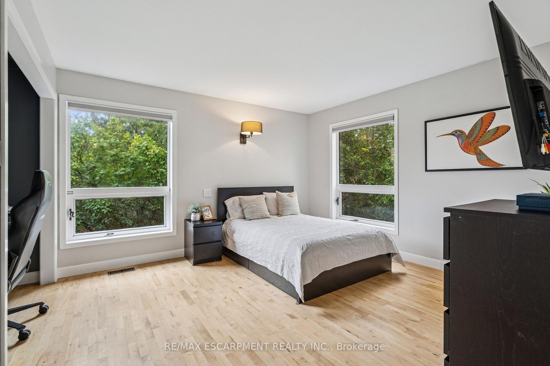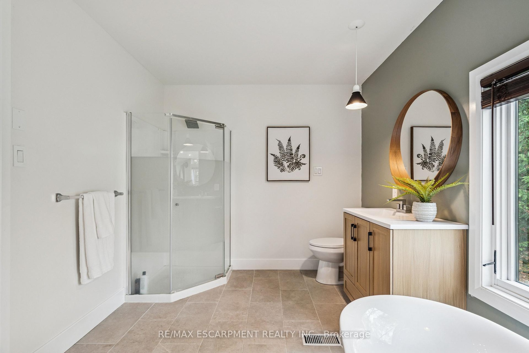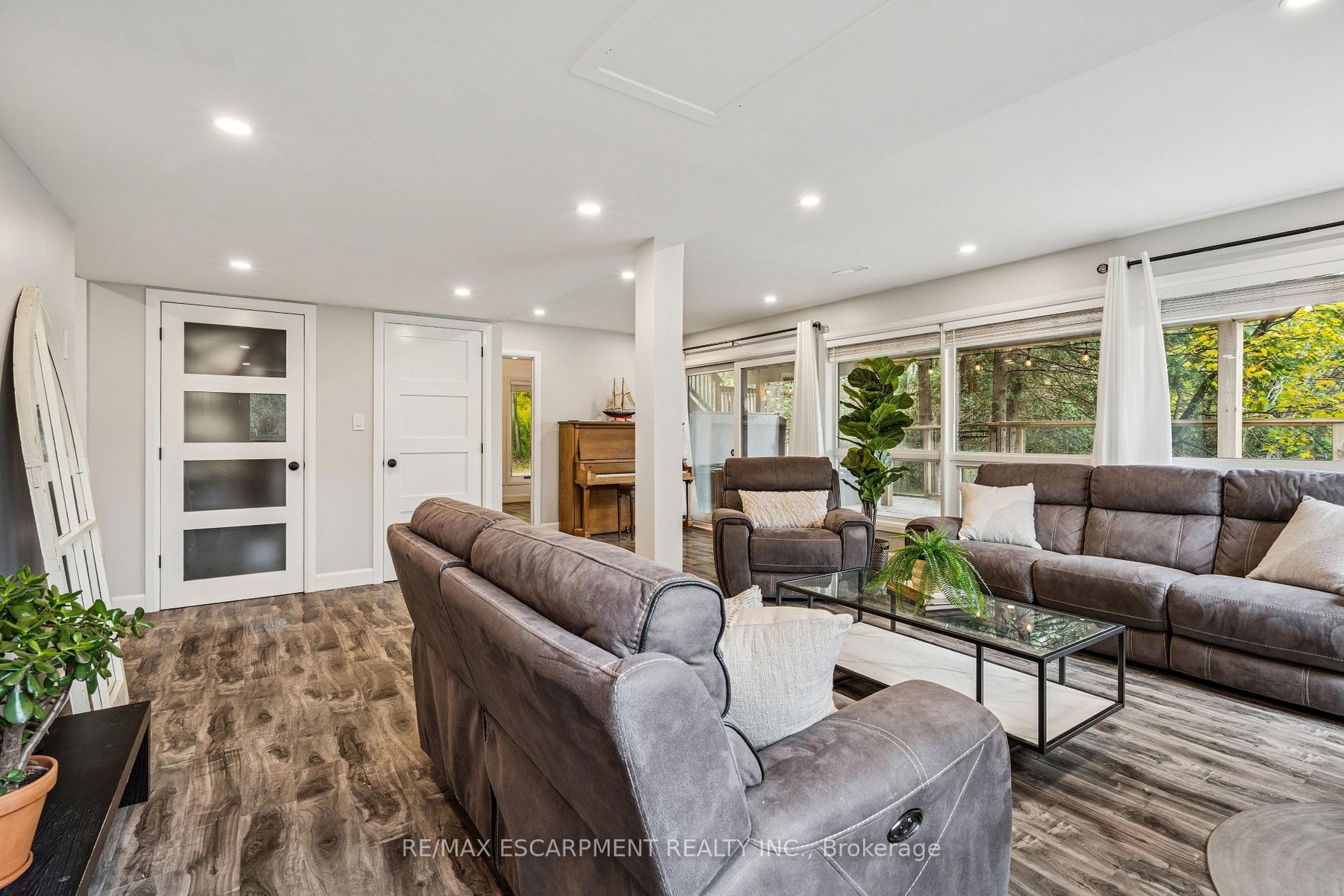 OVERLOOKS ROCKWOOD CONSERVATON! CHALET STYLE HOME! OFF THE BEATEN PATH! Tucked away off a quiet road and overlooking the forested beauty of Rockwood Conservation Area, 118 Old Quarry Road offers refined, nature-connected living with modern design sensibility. Step inside to the entry-level where you'll find two serene bedrooms, a cozy family room with a wood-burning fireplace, and a well-appointed laundry area - all oriented for peace and privacy. This level walks out to a deck with glass panels and a hot tub, offering unobstructed views of the conservation area just beyond your backyard. Ascend to the upper level, where form meets function in a bright, open-concept kitchen, dining, and living space. Here, floor-to-ceiling windows stretch wall to wall, drawing in light and framing the lush surroundings. A second wood-burning fireplace adds a modern warmth to the minimalist aesthetic, while the walkout deck continues the flow between indoors and out. Also on this level: two additional bedrooms, and a spa-inspired 4-piece bath with a soaker tub and separate glass shower, all renovated in 2019 alongside the new kitchen, flooring, decks, and bathrooms. Outdoors, enjoy detached one-car garage and parking for four. The included stainless-steel appliances and on-demand water heater round out this stylish yet sustainable offering. Set against the backdrop of hiking, kayaking, and camping at Rockwood Conservation, yet just 25 minutes to the 401 and minutes to Guelph or Acton GO, this is where lifestyle and location align.