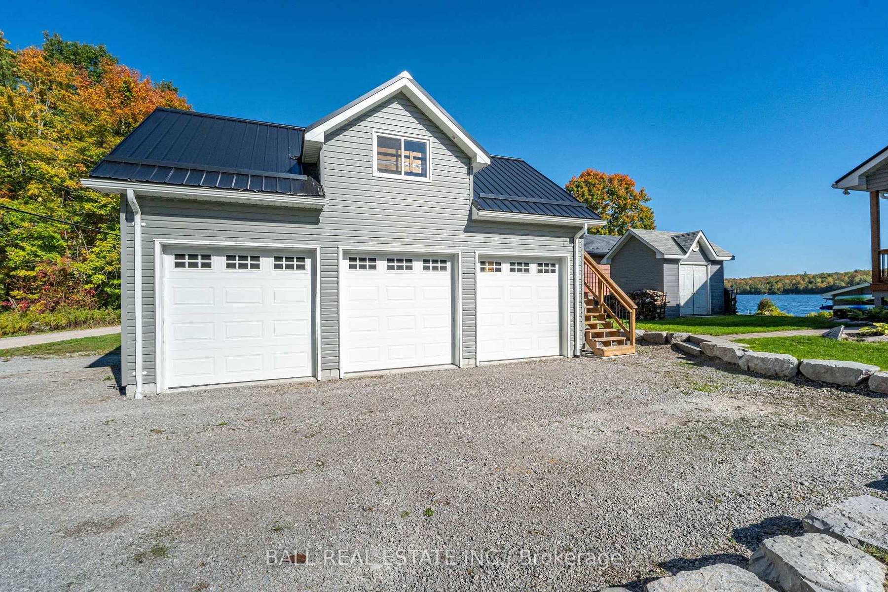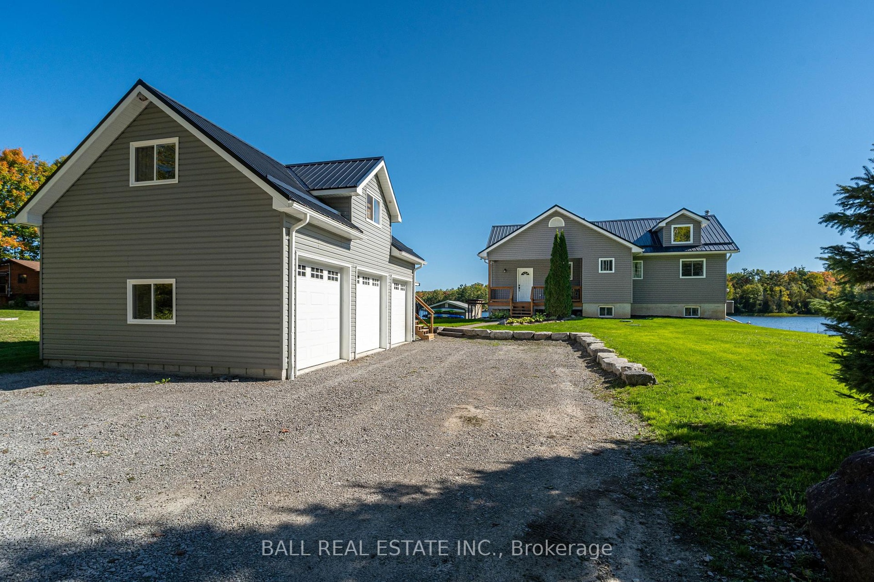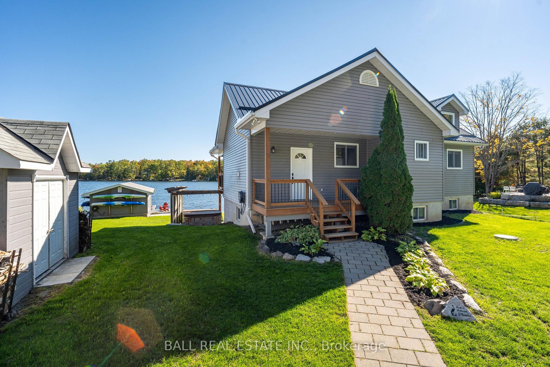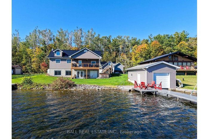 Welcome to this stunning Lower Buckhorn Lake home with a wet slip boat house and three-bay garage. This 3-bedroom, 2-bathroom home completely renovated in 2008 and has been continuously improved since, it combines modern comfort with the serenity of lakeside living. The heart of the home is the 2021 custom kitchen, featuring cathedral ceilings, granite countertops, and updated appliances. Its spacious, open design flows seamlessly onto a large covered balcony overlooking Deer Bay. The main floor includes a large bedroom with four windows and a cathedral ceiling. Also on the main floor is laundry facilities (2021), and a versatile second bedroom/office. The finished basement provides additional living space with a cozy wood-burning fireplace, the third bedroom, and a walk-out to a private patio with easy water access. This home is truly turnkey, with all major systems and features already taken care of. Renovations as follows: In 2008 a Complete home update. In 2021 a New custom kitchen (cabinets, granite countertops, appliances). In 2021 a New Furnace & central air. In 2023 a New three-bay garage with insulated loft space (permit closed). In 2024 a Septic system (permit closed). In 2024 a Metal roof on main house. For those who love the water, this property includes a boat house, docks with a 4 foot depth that goes down to 20 feet - perfect for swimming, boating, and excellent fishing. This property has calm waters, minimal boat traffic, welcoming neighbours, with hiking trails on the other side of the road. This home offers the perfect balance of modern upgrades, spacious living, and a waterfront lifestyle just 20 minutes from downtown Peterborough and 1.5 hours from Toronto.