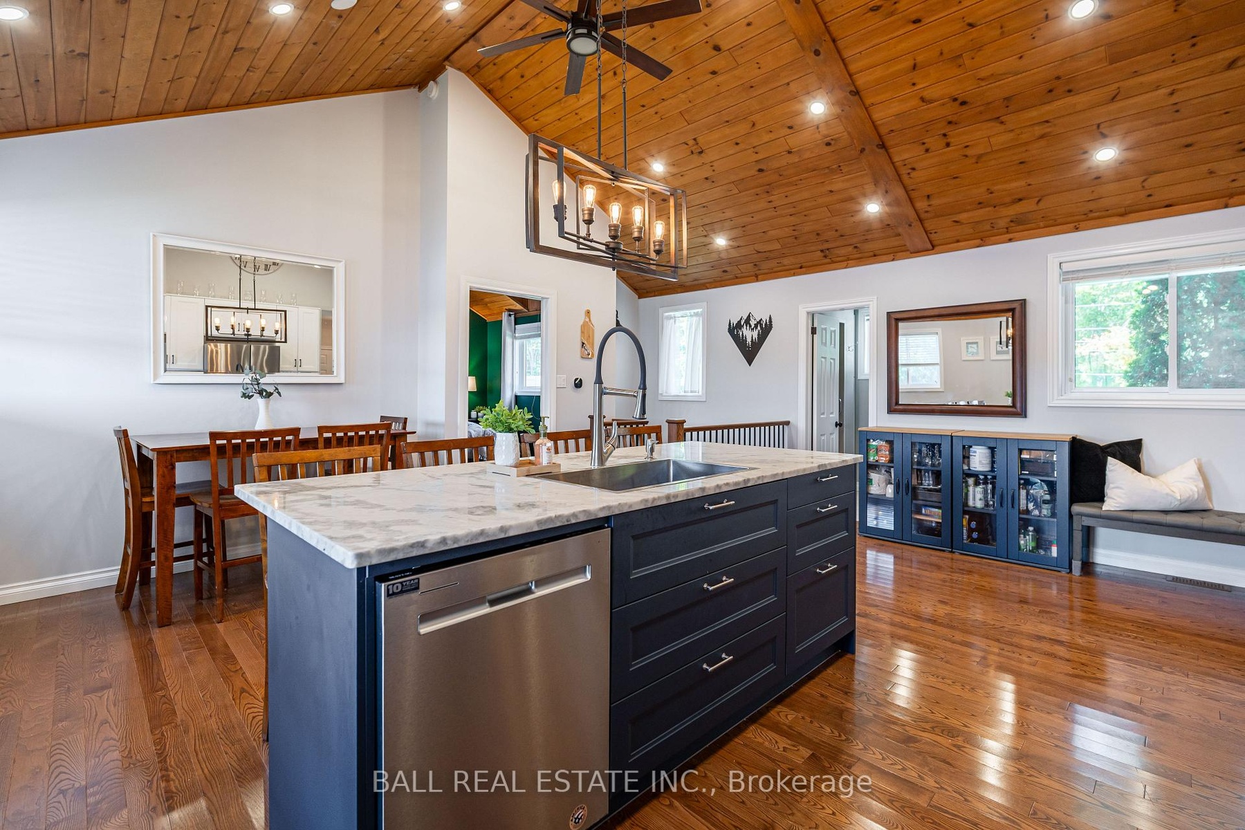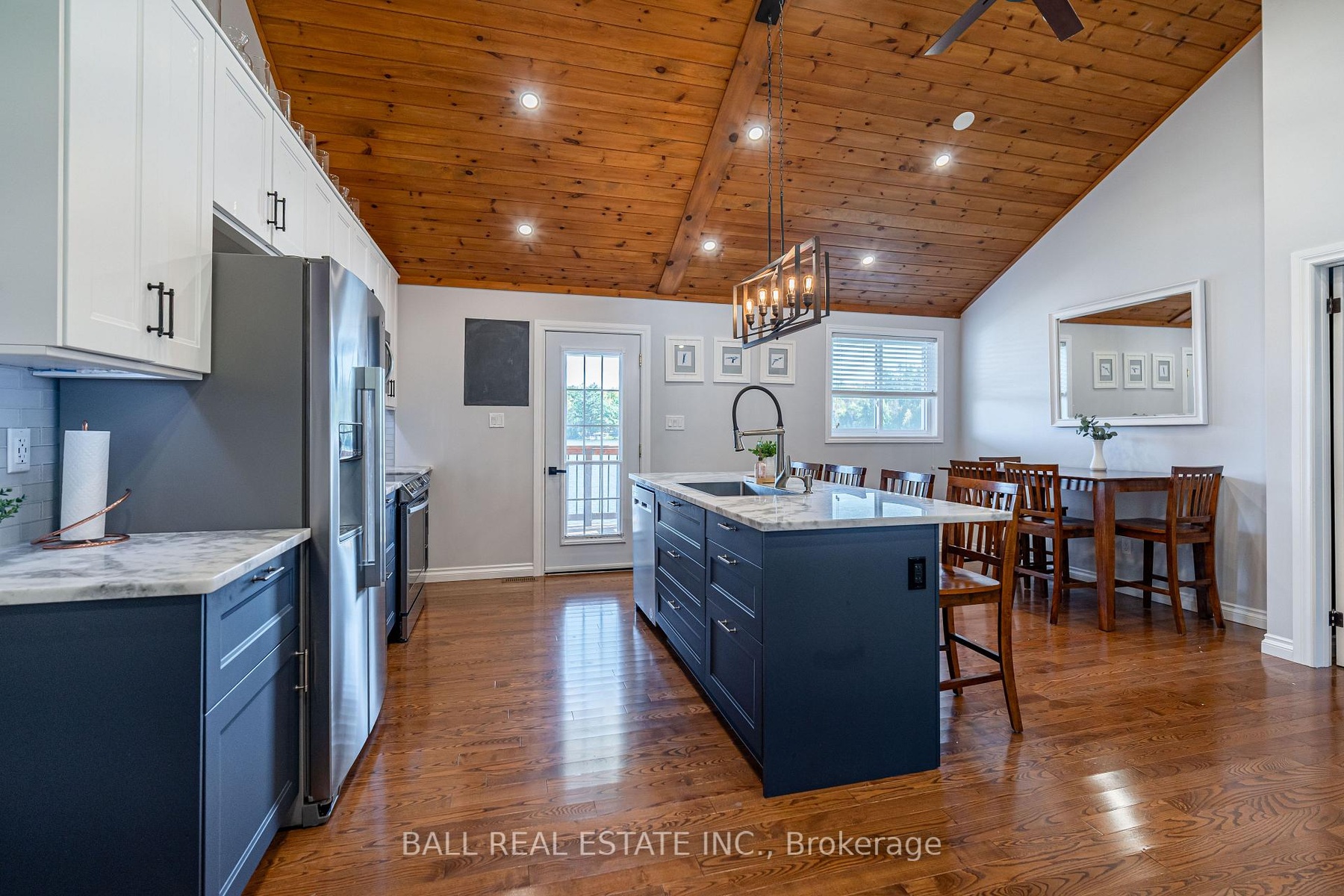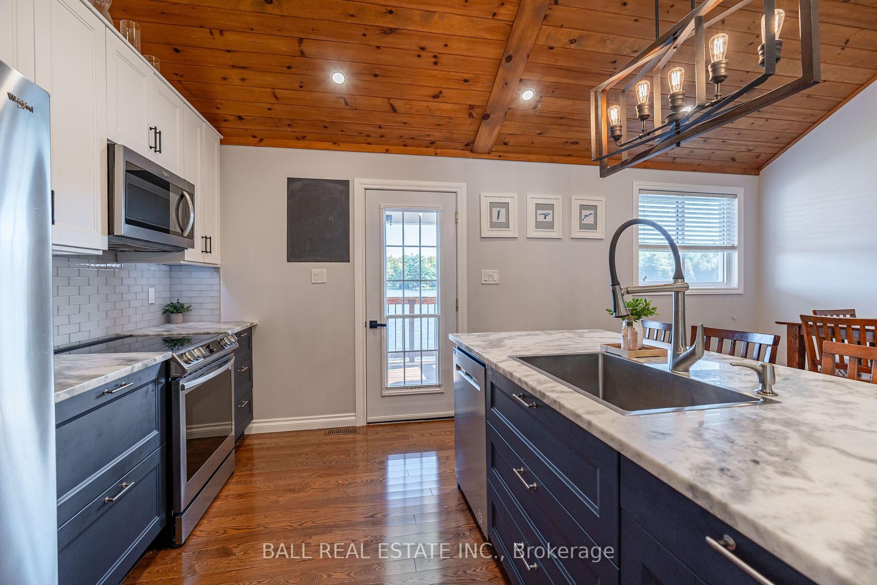 Welcome to this stunning Lower Buckhorn Lake home with a wet slip boat house and three-bay garage. This 3-bedroom, 2-bathroom home completely renovated in 2008 and has been continuously improved since, it combines modern comfort with the serenity of lakeside living. The heart of the home is the 2021 custom kitchen, featuring cathedral ceilings, granite countertops, and updated appliances. Its spacious, open design flows seamlessly onto a large covered balcony overlooking Deer Bay. The main floor includes a large bedroom with four windows and a cathedral ceiling. Also on the main floor is laundry facilities (2021), and a versatile second bedroom/office. The finished basement provides additional living space with a cozy wood-burning fireplace, the third bedroom, and a walk-out to a private patio with easy water access. This home is truly turnkey, with all major systems and features already taken care of. Renovations as follows: In 2008 a Complete home update. In 2021 a New custom kitchen (cabinets, granite countertops, appliances). In 2021 a New Furnace & central air. In 2023 a New three-bay garage with insulated loft space (permit closed). In 2024 a Septic system (permit closed). In 2024 a Metal roof on main house. For those who love the water, this property includes a boat house, docks with a 4 foot depth that goes down to 20 feet - perfect for swimming, boating, and excellent fishing. This property has calm waters, minimal boat traffic, welcoming neighbours, with hiking trails on the other side of the road. This home offers the perfect balance of modern upgrades, spacious living, and a waterfront lifestyle just 20 minutes from downtown Peterborough and 1.5 hours from Toronto.