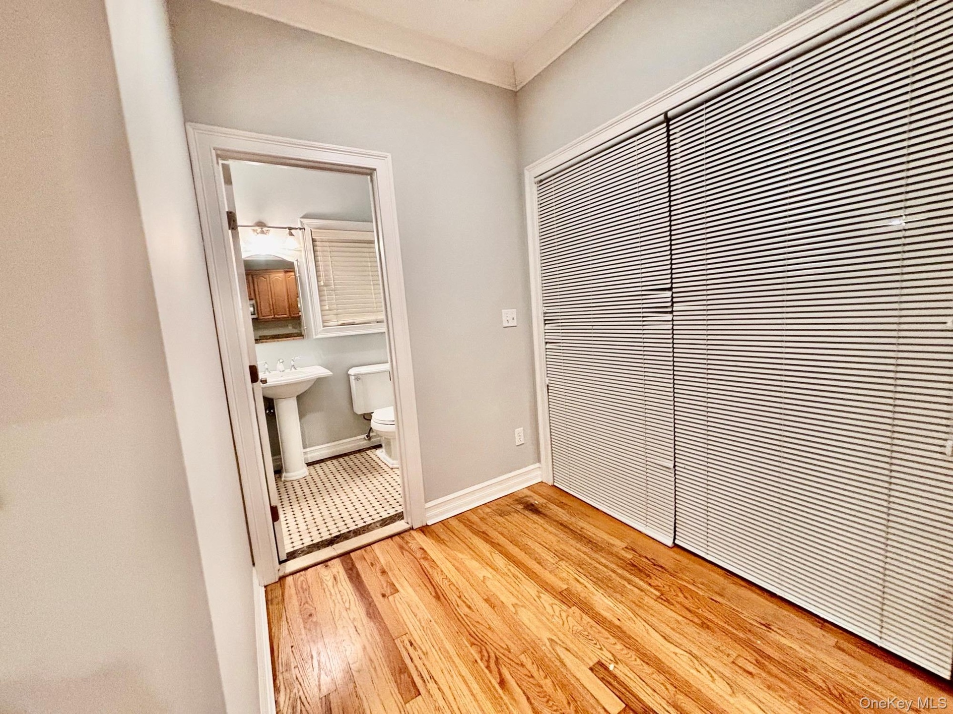 - Unfurnished bedroom featuring light wood-style floors, a closet, and ensuite bath