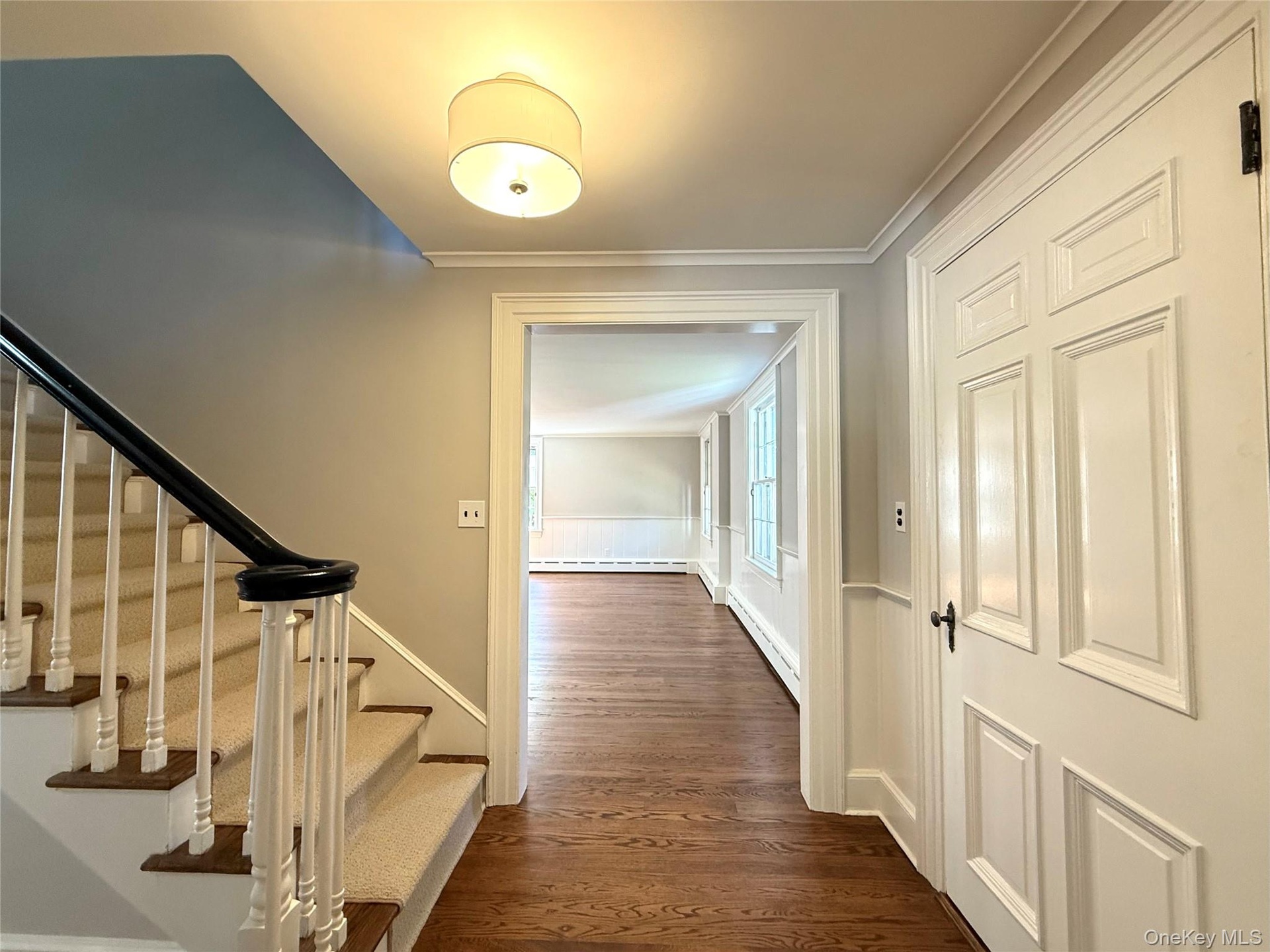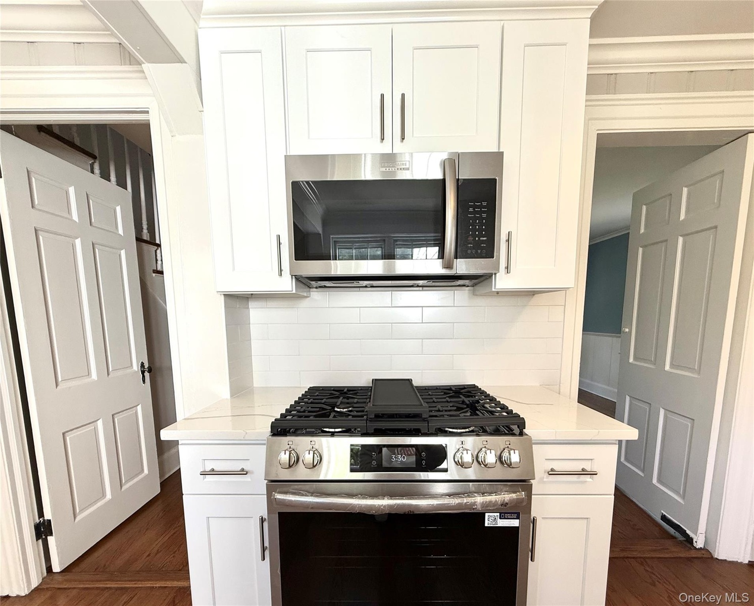 Nestled along a picturesque, tree-lined, winding road that evokes the peaceful charm of the countryside, this inviting home offers the perfect blend of tranquility and convenience. From the moment you enter, you're greeted by a classic and welcoming entryway that sets the tone for the home's rich character and warmth. The spacious and inviting living room offers impeccably maintained hardwood floors and a wood-burning fireplace, ideal for cozy evenings and relaxed gatherings. Hardwood floors flow seamlessly into the formal dining room with its charming original architectural details. A brand new kitchen features white shaker cabinets with soft-close drawers, quartz countertops and stainless appliances. Hardwood floors continue throughout, the second floor adding warmth and character where you'll find three spacious bedrooms along with an updated hall bath.