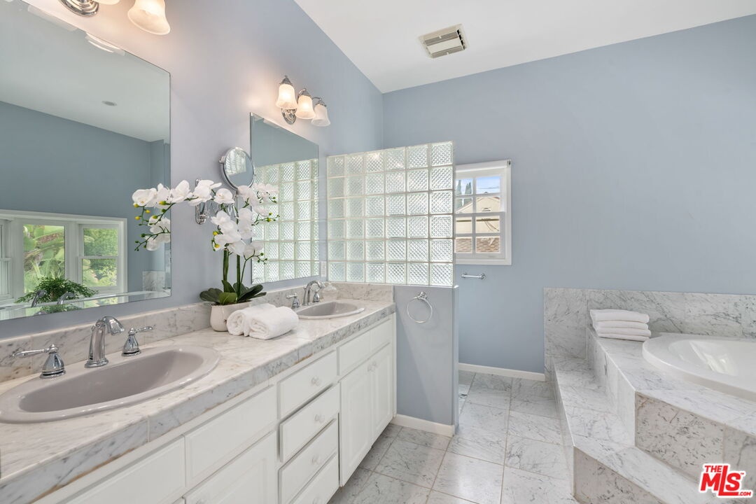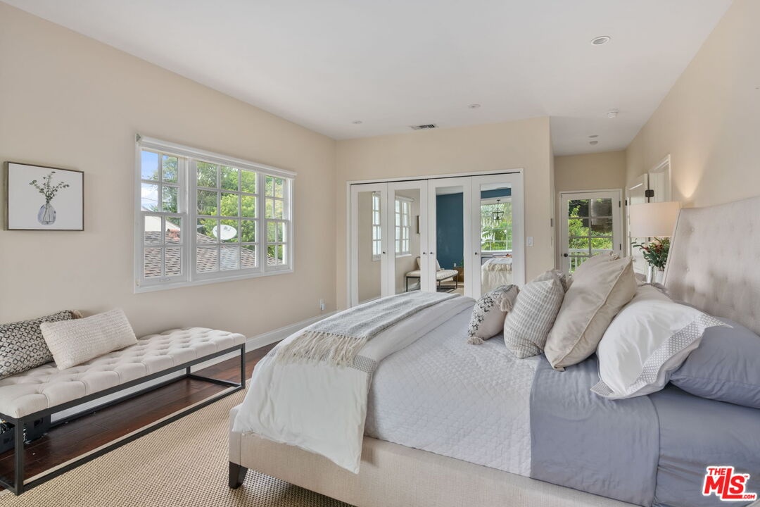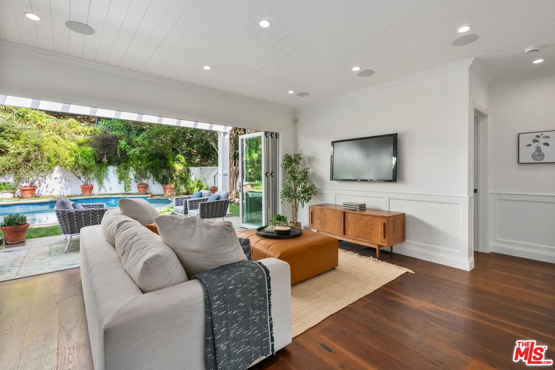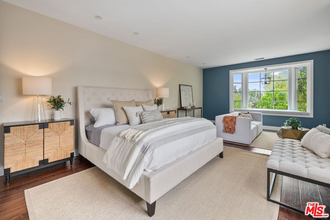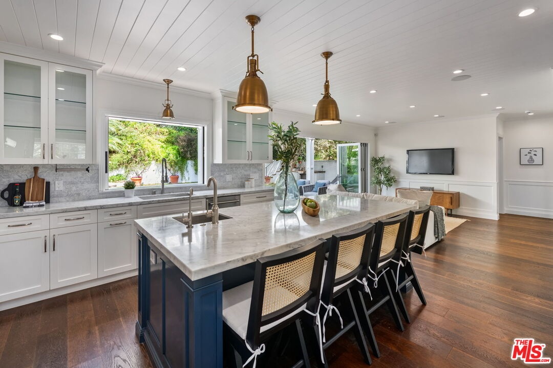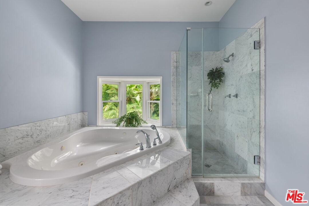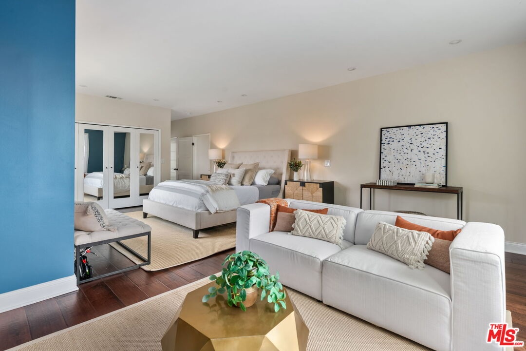 Gorgeous Custom 5 bed/4.5 bath Cape Cod Style Traditional 2-story in Beverlywood with spectacular views and delightful, oversized entertainer's backyard with pool and spa. Set privately off the street with treetop and city views, this lovely home is filled with natural light, high-end finishes, abundant storage and custom architectural details throughout. The home is designed for luxury family living and upscale entertaining. The entry features a two-story open ceiling and a charming, well-appointed mud room with barn door closure. The home's ideal, open floor plan includes a spacious living room with wainscoting, fireplace, large bay window with ample cushioned seating with city views, and an elegant powder room tucked away nearby. Formal dining room with exquisite coffered ceiling opens to sun-filled gourmet Kosher kitchen with large center island that offers generous breakfast seating for the whole family, stainless steel appliances including 8-burner Wolf range with built-in griddle and grill, over-range pot-filler faucet, high-capacity externally-vented Wolf hood, double ovens, a wine fridge, built-in under counter microwave, 2 sinks, marble countertops, pantry cabinets with pull out drawers and unique serving window over sink that opens the kitchen to an outside counter/bar adjacent to the outdoor BBQ. Kitchen opens to family room with 4-panel bi-fold doors that create an open, indoor/outdoor living space perfect for hosting intimate and larger-scale gatherings, with built-in barbecue and pergola-covered patio, and a backyard oasis with privately landscaped mature trees framing the pool/spa. Downstairs includes 2 bedrooms, one with en-suite beautifully updated 3/4 bathroom and large patio with tree-top views, and the 5th bedroom with backyard access and 3/4 bathroom just outside the bedroom, ideal as well for a home office. Upstairs 3 additional bedrooms, including oversized primary suite with fireplace, bay window with built-in cushions seating and city views, 2 closets including large custom closet, covered balcony overlooking backyard and luxurious remodeled marble-finished primary bathroom with spa tub, separate shower and dual basins. 2 additional spacious bedrooms upstairs open to shared bathroom with dual basins, including one generously-sized bedroom with a front-facing balcony that boasts breathtaking expansive city views spanning from Downtown Los Angeles to Marina del Rey. Additional features found in luxury estate homes include built-in speaker system in family room ceiling and backyard, security system including custom-designed exterior security cameras with remote access, tastefully remodeled custom bathrooms, high-end fixtures and hardware, hardwood flooring, dual zoned ac/heat, graceful wainscoting, custom door casings, solid wood doors throughout for sound reduction and added privacy, built-ins, skylight, high ceilings and recessed lighting throughout. Ideal proximity to Beverly Hills shopping and retail, Century City's Westfield Mall and Downtown Culver City retail and restaurants, with easy access to freeways. Castle Heights Elementary School. Stunning home ready to move right in!
