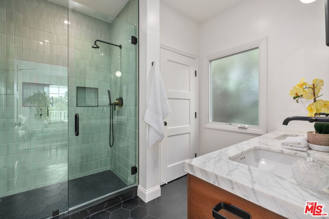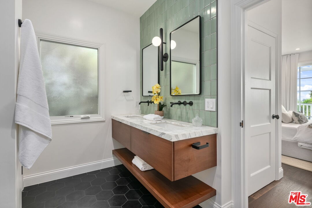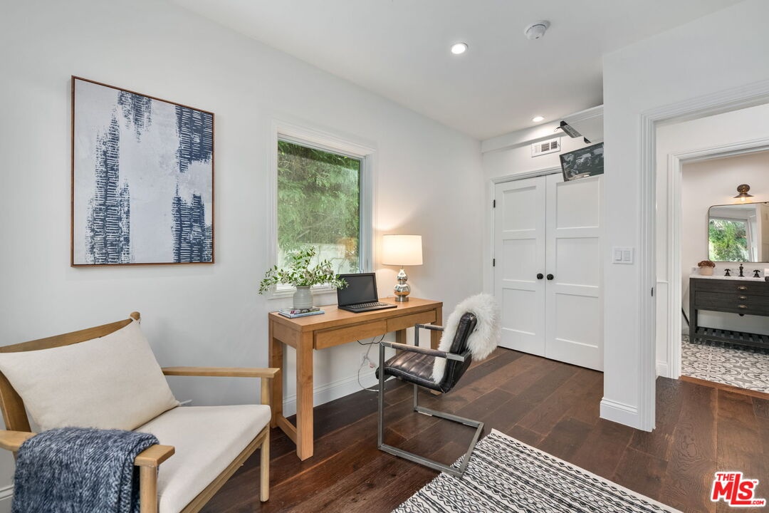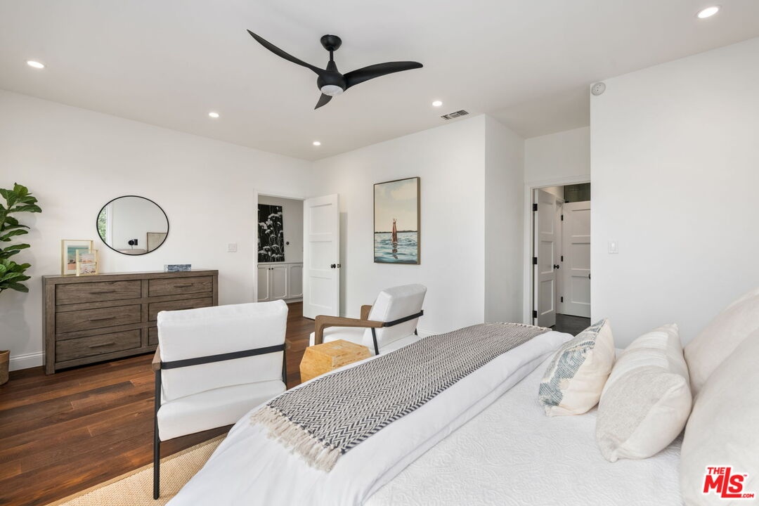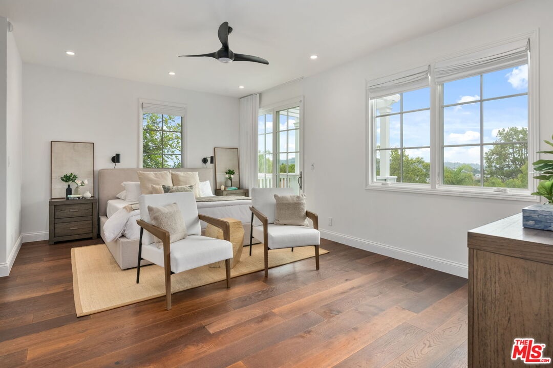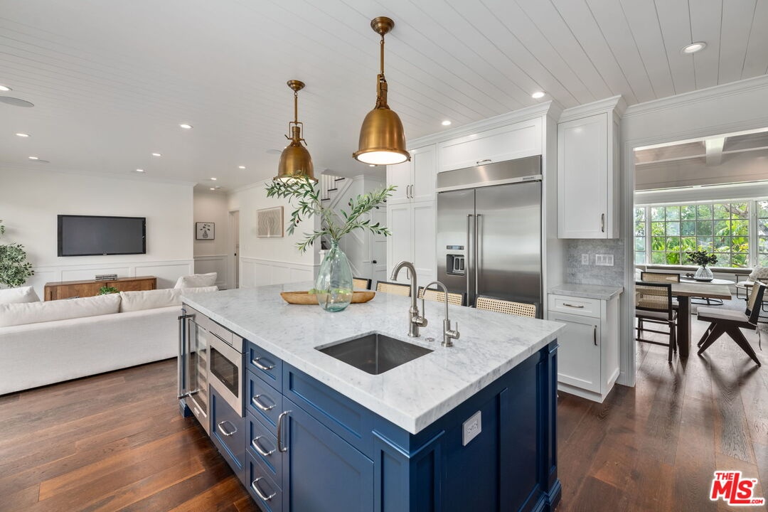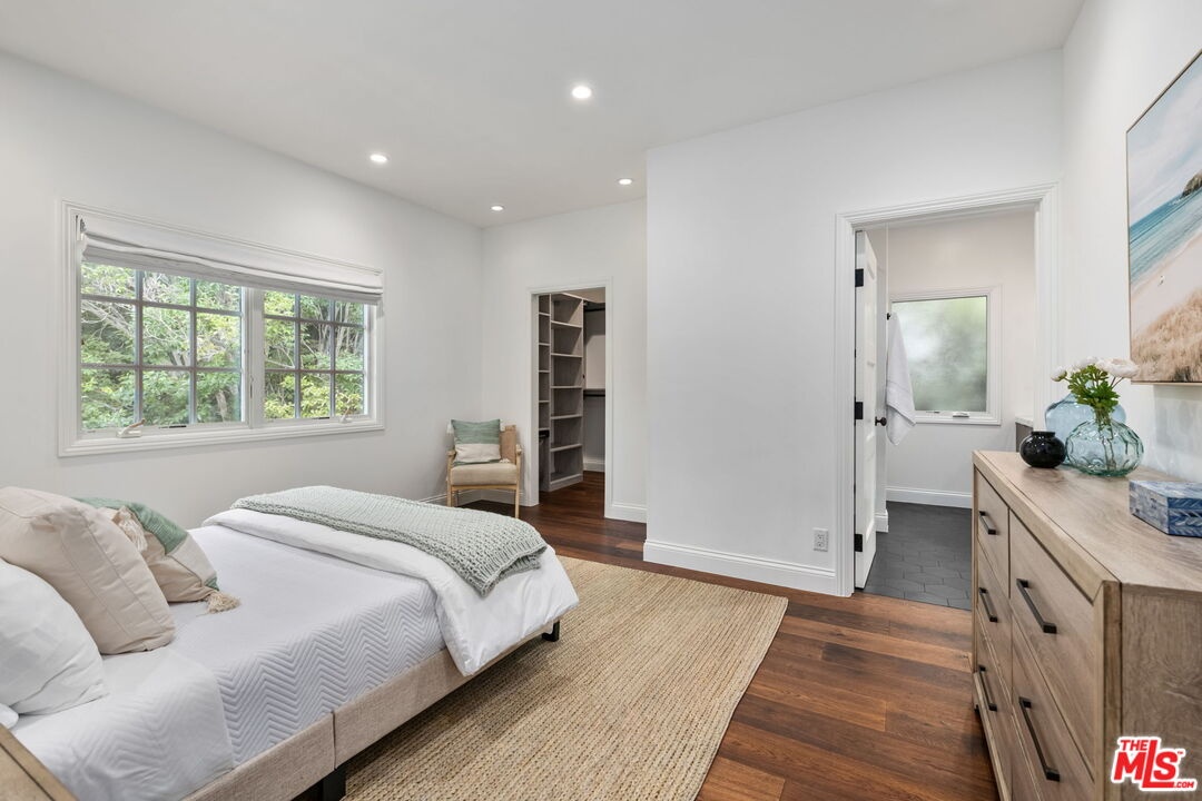 Gorgeous Custom 5 bed/4.5 bath Cape Cod Style Traditional 2-story in Beverlywood with spectacular views and delightful, oversized entertainer's backyard with pool and spa. Set privately off the street with treetop and city views, this lovely home is filled with natural light, high-end finishes, abundant storage and custom architectural details throughout. The home is designed for luxury family living and upscale entertaining. The entry features a two-story open ceiling and a charming, well-appointed mud room with barn door closure. The home's ideal, open floor plan includes a spacious living room with wainscoting, fireplace, large bay window with ample cushioned seating with city views, and an elegant powder room tucked away nearby. Formal dining room with exquisite coffered ceiling opens to sun-filled gourmet Kosher kitchen with large center island that offers generous breakfast seating for the whole family, stainless steel appliances including 8-burner Wolf range with built-in griddle and grill, over-range pot-filler faucet, high-capacity externally-vented Wolf hood, double ovens, a wine fridge, built-in under counter microwave, 2 sinks, marble countertops, pantry cabinets with pull out drawers and unique serving window over sink that opens the kitchen to an outside counter/bar adjacent to the outdoor BBQ. Kitchen opens to family room with 4-panel bi-fold doors that create an open, indoor/outdoor living space perfect for hosting intimate and larger-scale gatherings, with built-in barbecue and pergola-covered patio, and a backyard oasis with privately landscaped mature trees framing the pool/spa. Downstairs includes 2 bedrooms, one with en-suite beautifully updated 3/4 bathroom and large patio with tree-top views, and the 5th bedroom with backyard access and 3/4 bathroom just outside the bedroom, ideal as well for a home office. Upstairs 3 additional bedrooms, including oversized primary suite with fireplace, bay window with built-in cushions seating and city views, 2 closets including large custom closet, covered balcony overlooking backyard and luxurious remodeled marble-finished primary bathroom with spa tub, separate shower and dual basins. 2 additional spacious bedrooms upstairs open to shared bathroom with dual basins, including one generously-sized bedroom with a front-facing balcony that boasts breathtaking expansive city views spanning from Downtown Los Angeles to Marina del Rey. Additional features found in luxury estate homes include built-in speaker system in family room ceiling and backyard, security system including custom-designed exterior security cameras with remote access, tastefully remodeled custom bathrooms, high-end fixtures and hardware, hardwood flooring, dual zoned ac/heat, graceful wainscoting, custom door casings, solid wood doors throughout for sound reduction and added privacy, built-ins, skylight, high ceilings and recessed lighting throughout. Ideal proximity to Beverly Hills shopping and retail, Century City's Westfield Mall and Downtown Culver City retail and restaurants, with easy access to freeways. Castle Heights Elementary School. Stunning home ready to move right in!