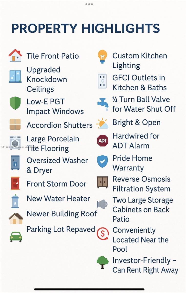 Exceptional value — priced to sell! Bright and spacious 2 bed / 2 bath condo in The Gardens @ Pembroke Lakes offering serene lake views and modern upgrades throughout. Features include new low-E PGT impact windows with warranty, full accordion shutters for total storm protection, and a newer building roof. Interior highlights boast large porcelain tile floors, fresh paint, custom kitchen lighting, a 6-stage reverse osmosis water filtration system, and an oversized washer/dryer. Enjoy peaceful lakefront living from your private balcony. Move-in ready and investor-friendly with immediate rentals allowed. Prime location near top hospitals, A-rated schools, fine dining, shopping, and major highways. Motivated seller — don’t miss this opportunity!