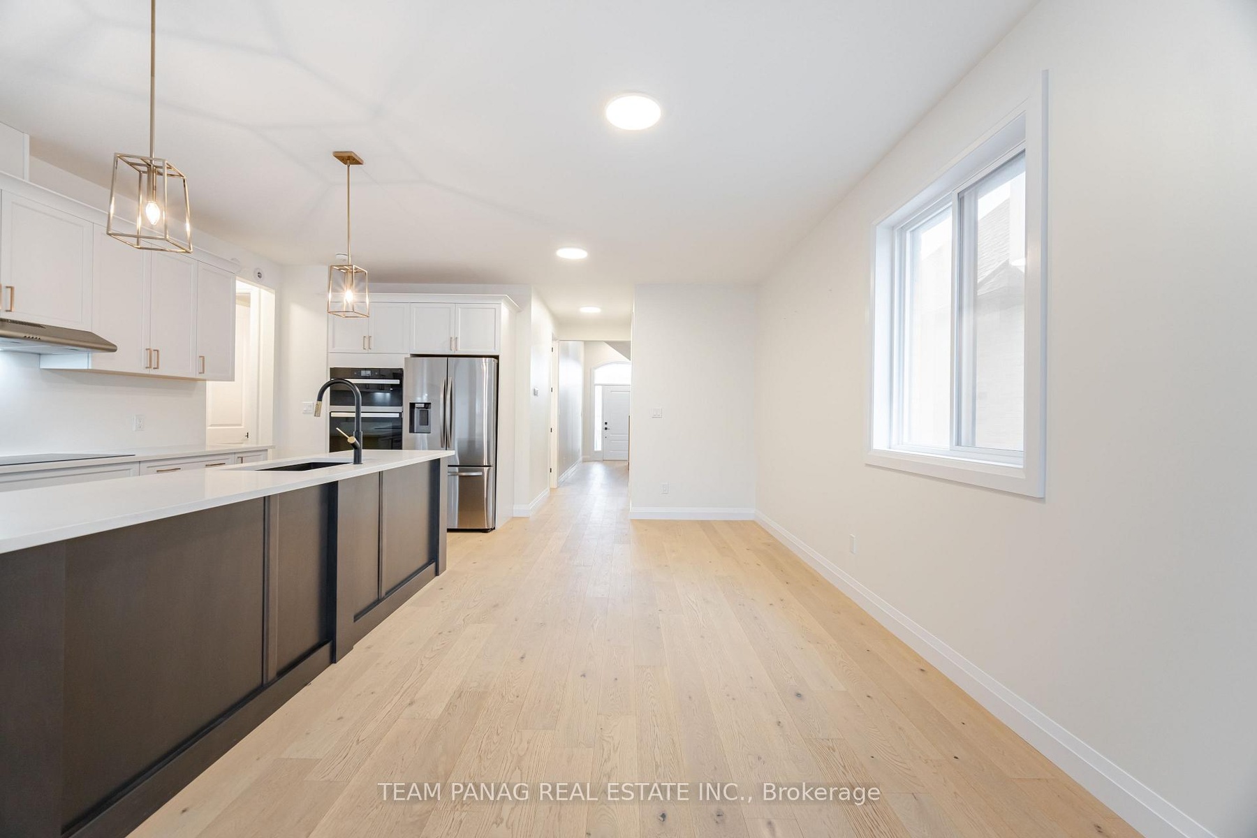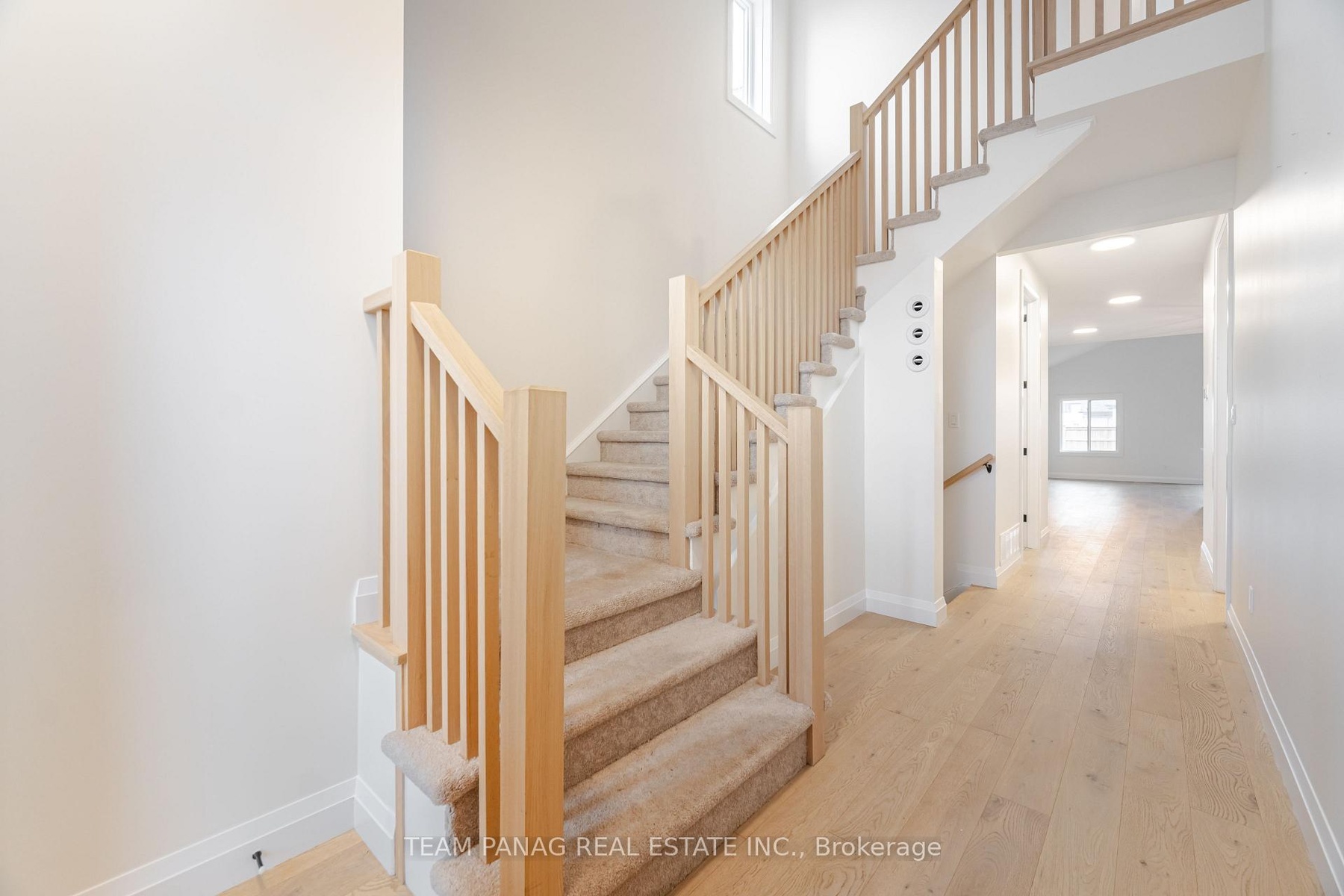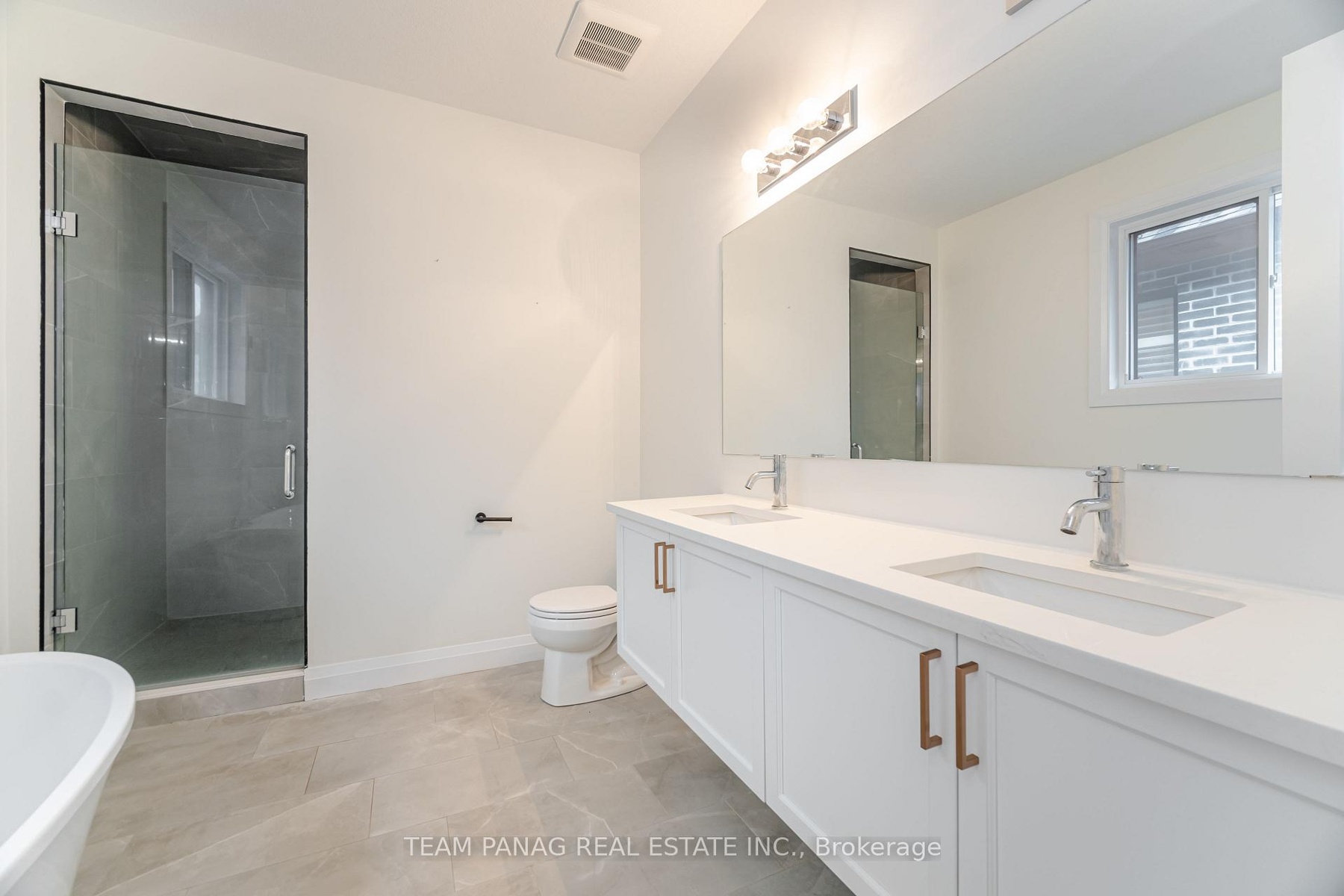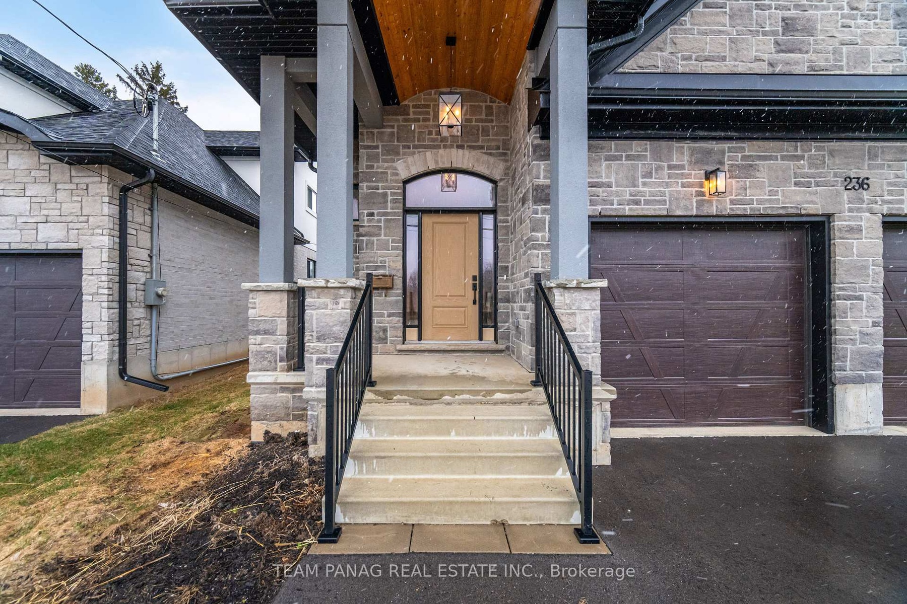 Welcome to 236 Mount Pleasant Street, a luxurious modern home in the prestigious Lions Park Estates community of West Brant, Brantford. This stunning 4-bedroom, 3-bathroom home with a double garage offers elegant design and high-end finishes throughout. Soaring 14-foot ceilings in the foyer and 12-foot ceilings in the main living area, along with 8-foot interior doors, create a grand and spacious feel. The main floor features premium engineered hardwood flooring across the living, dining, kitchen, and foyer. A gourmet kitchen highlights quartz countertops, an island with an undermount sink and overhang, high-end cabinetry, and a generous walk-in pantry. The main level also includes a luxurious primary suite with a walk-in closet and upgraded ensuite, plus a second bedroom and full bathroom perfect for guests or multi-generational living. Upstairs, you'll find two more bedrooms, a full bathroom, and a versatile loft-style living space. Step outside to a private backyard patio perfect for summer dining and entertaining. This home includes over $40,000 in thoughtful upgrades, such as mounted bathroom vanities, an upgraded tub in the ensuite, modern kitchen fixtures, a front porch railing, no floor vents, a fully dry walled basement, and a relocated furnace for better space efficiency. Located minutes from the Brantford Library, schools, parks, and shopping, and only a 10-minute drive to Highway 403, this home offers modern living in a family-friendly neighborhood. Don't miss your chance to live in one of Brantford's most desirable communities.