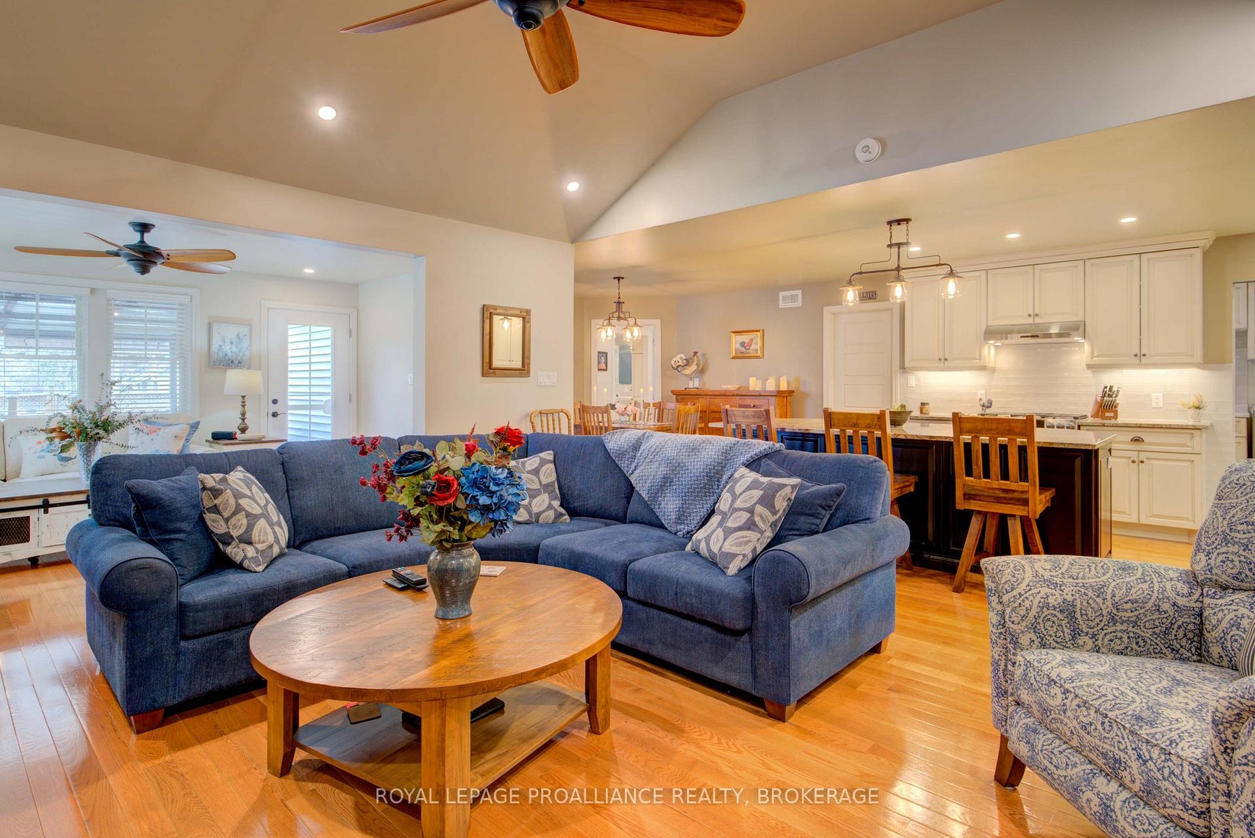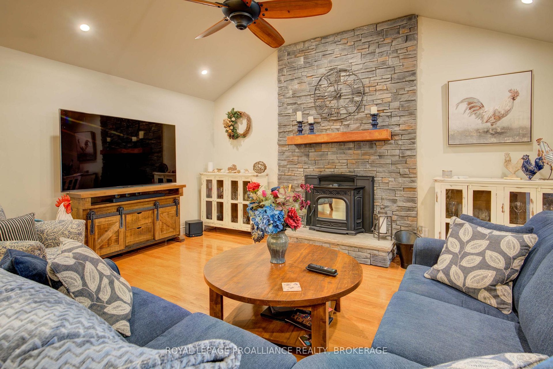 Welcome to this charming 3-bedroom, 2.5-bathroom home nestled in the heart of the village of Lansdowne. Built in 2019, this thoughtfully designed home blends quality craftsmanship with timeless charm. Step inside to an inviting open-concept main floor featuring vaulted ceilings in the spacious living room, a stunning kitchen with a large island, and a convenient dining area perfect for everyday living and entertaining. The living room features a pellet stove that not only provides ambiance but a beautiful focal point for the home. Just off the living room, enjoy the cozy sun-room that opens to the back deck complete with a gazebo, ideal for relaxing or hosting. The home has a generous amount of storage including a walk-in pantry and a large mudroom with extra cupboards. The primary bedroom is a peaceful retreat with a walk-in closet, private vanity room, and a luxurious ensuite with a double vanity. The fully finished basement has another bedroom, a half bathroom, a large family room perfect for movie nights as well as a bar area. There is also an extra storage room as well as a full utility room. Outside, enjoy your own private oasis with an in-ground heated saltwater pool. The home also has an attached 1.5 car garage. This property is a perfect blend of comfort, style and functionality - ready to welcome its next owners.