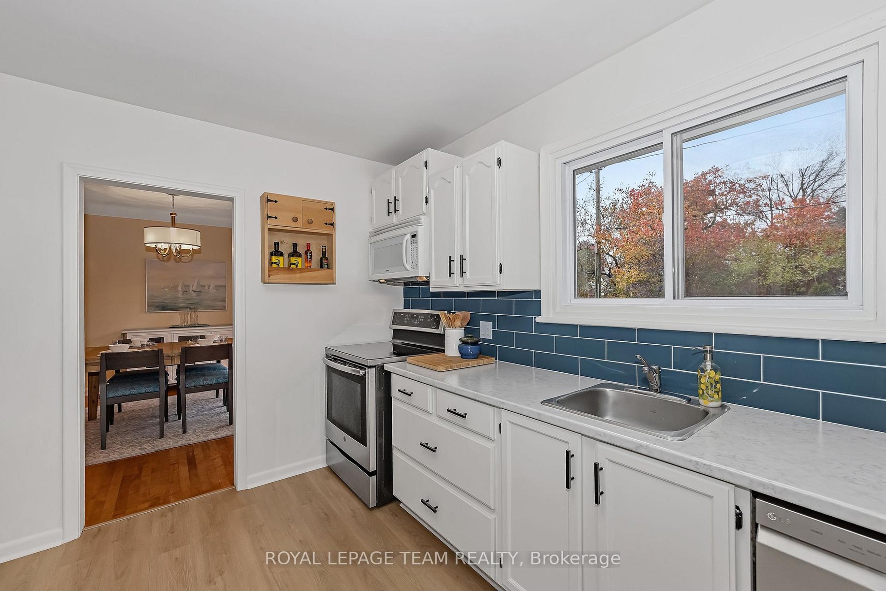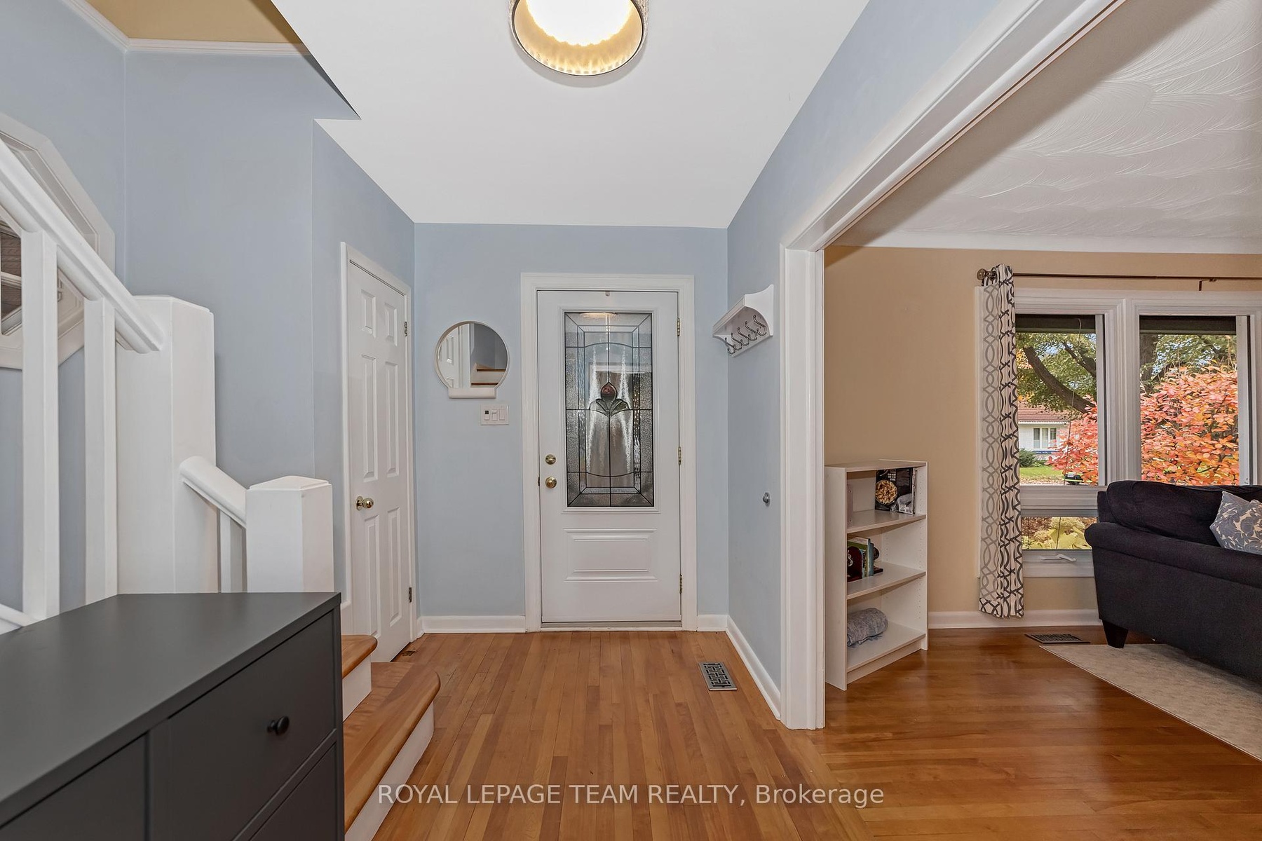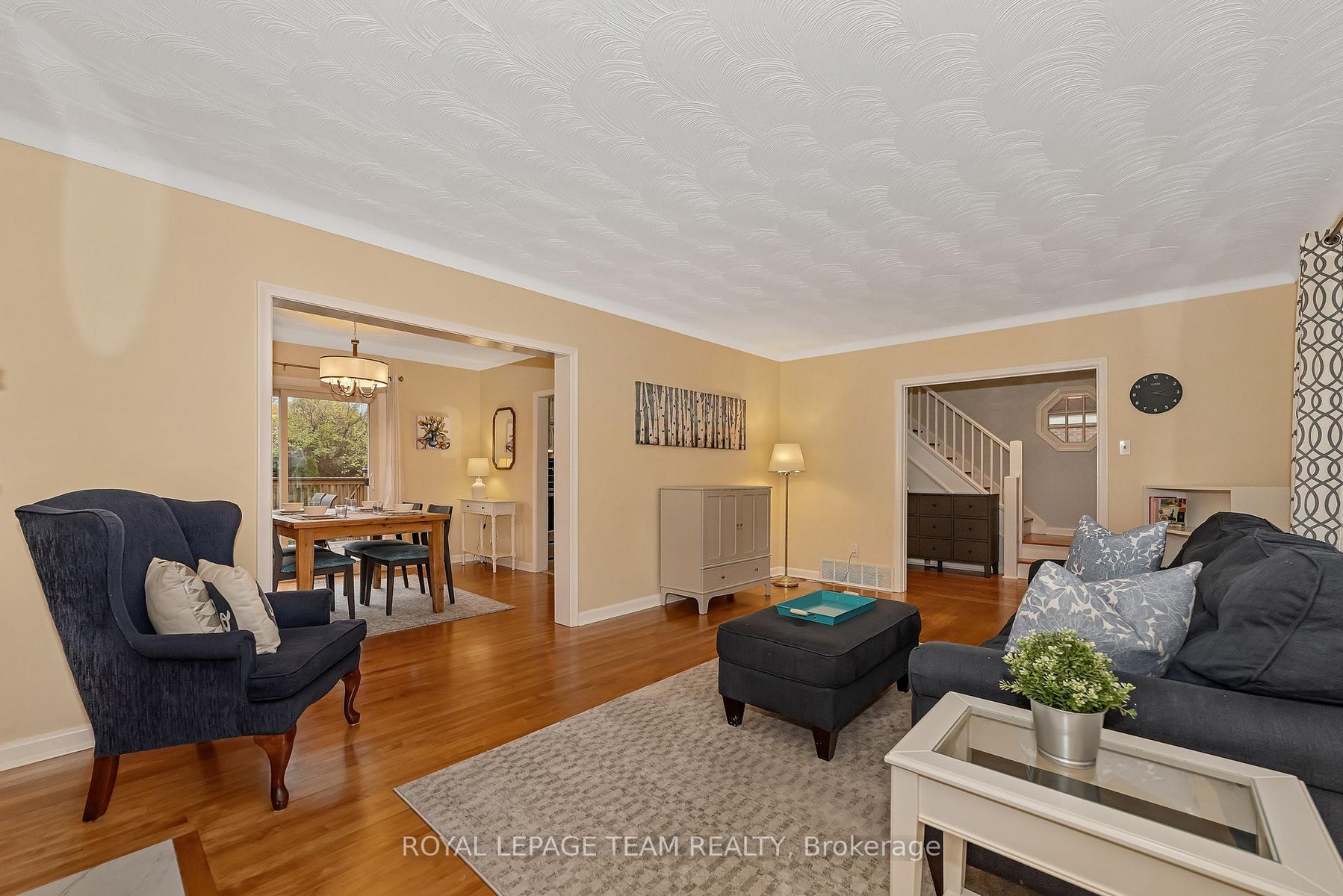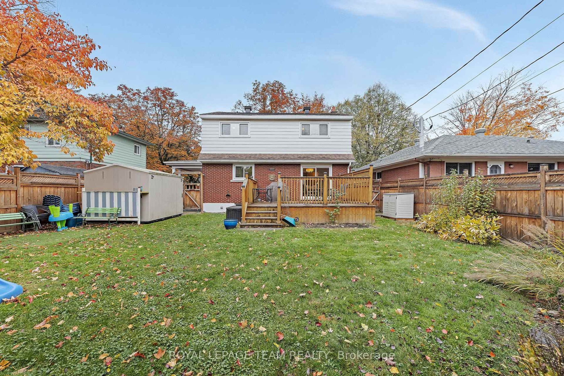 Set on a peaceful, tree-lined street and backing onto picturesque Bel-Air Park, this classic Campeau-built home offers timeless charm in a sought-after location. With 3 bedrooms, 2 bathrooms, and numerous updates, it's the perfect blend of comfort, style, and convenience.A welcoming front porch invites you to sit and enjoy the peaceful surroundings before stepping inside to a warm, light-filled interior. The main level features gleaming hardwood floors, a spacious living room centred around a gas fireplace, and a well-proportioned dining room-ideal for family dinners or entertaining guests. Patio doors open to a private backyard with a deck, perennial gardens, and a gate providing direct access to the park.The updated kitchen (2025) features new countertops, backsplash, flooring, lighting, and sink-offering a fresh, modern touch. Upstairs, hardwood floors continue through the generous primary bedroom and two additional bedrooms, complemented by a bright family bath. The finished lower level adds a versatile living space with a comfortable family room, laundry area, and an additional shower and toilet. There is also a utility room for extra storage. Centrally located and surrounded by nature, this home is just minutes from public transit, shopping, restaurants, excellent schools, and easy access to the 417. The perfect place to call home.