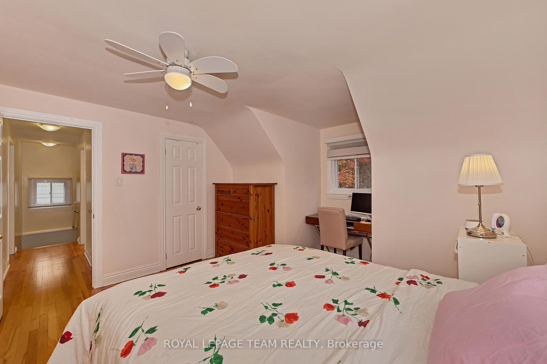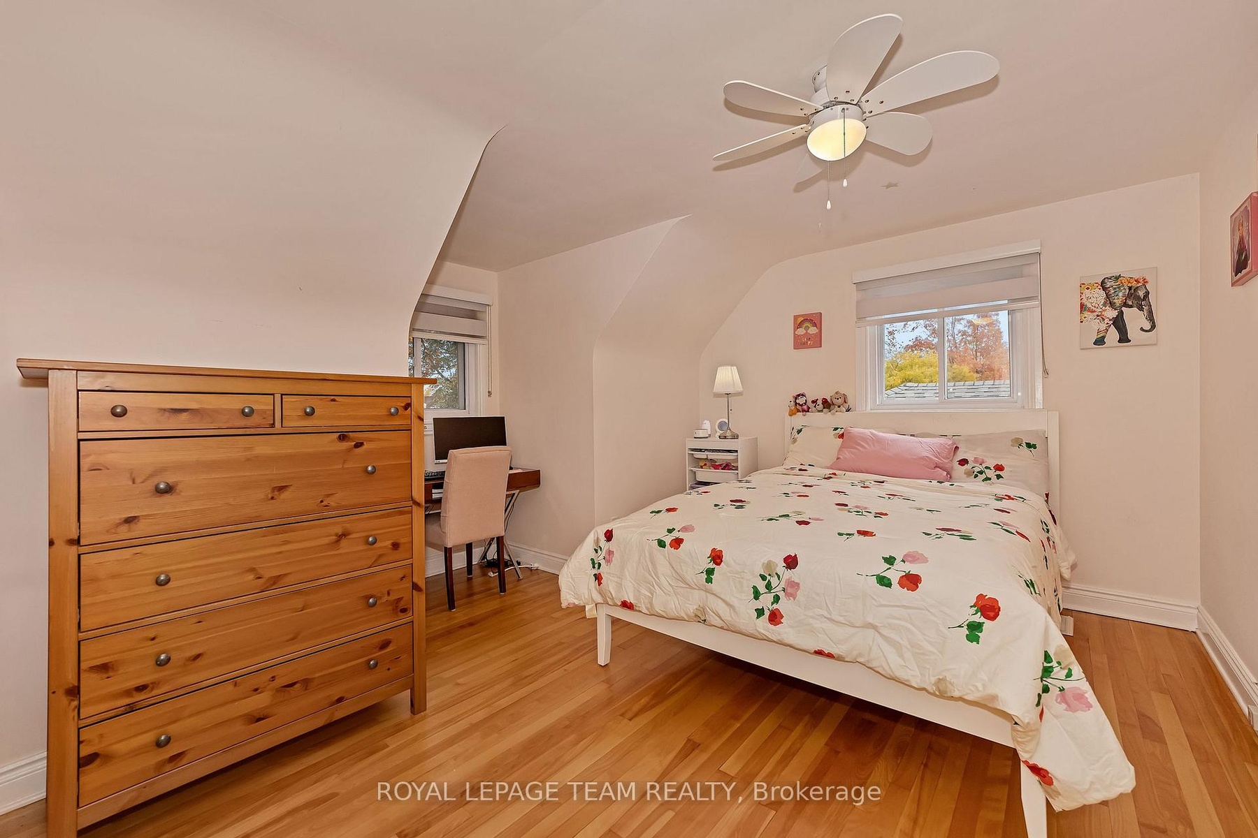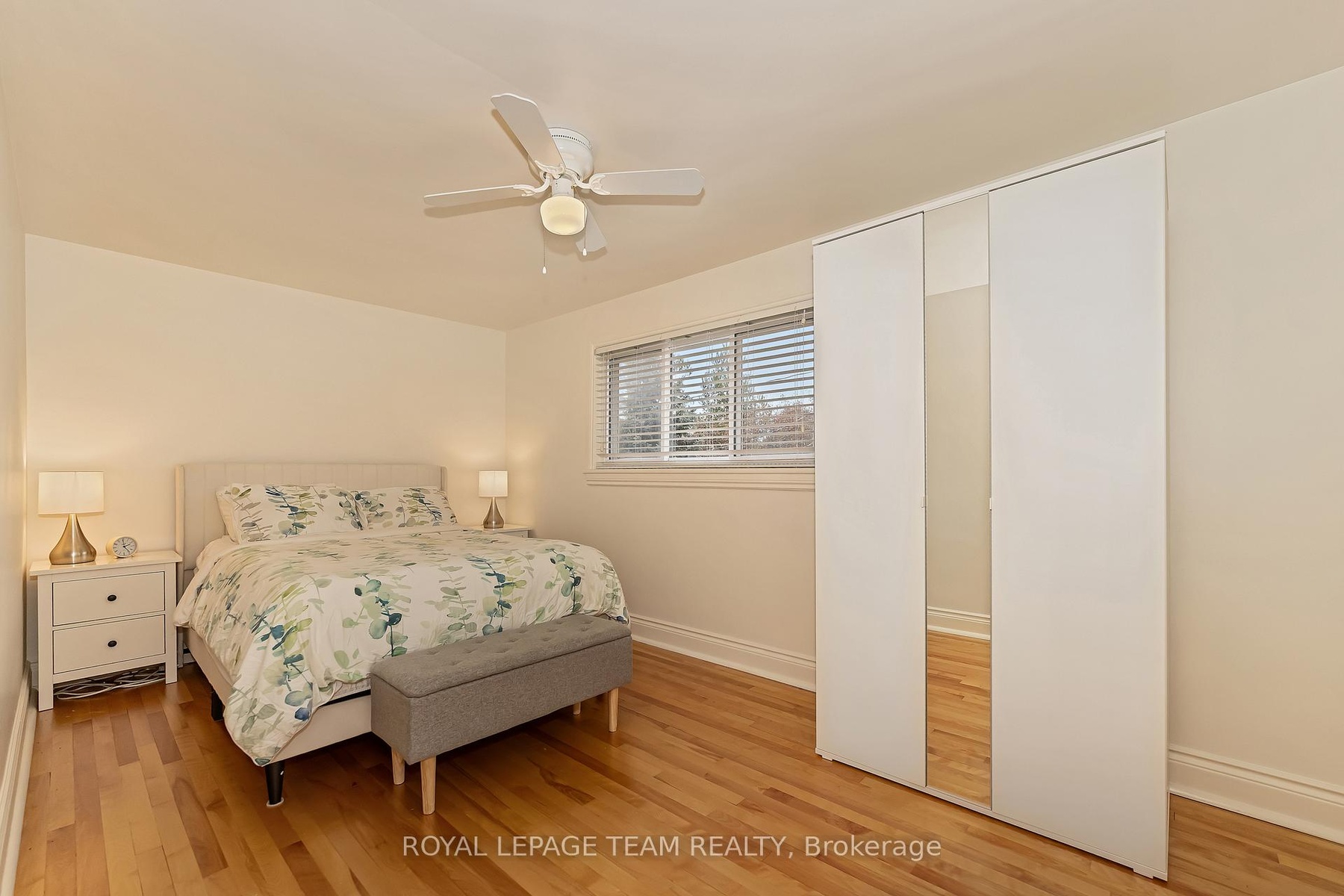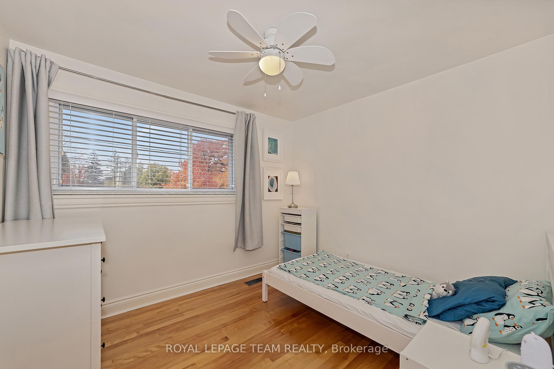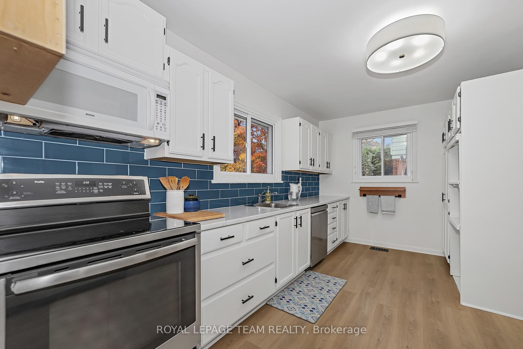 Set on a peaceful, tree-lined street and backing onto picturesque Bel-Air Park, this classic Campeau-built home offers timeless charm in a sought-after location. With 3 bedrooms, 2 bathrooms, and numerous updates, it's the perfect blend of comfort, style, and convenience.A welcoming front porch invites you to sit and enjoy the peaceful surroundings before stepping inside to a warm, light-filled interior. The main level features gleaming hardwood floors, a spacious living room centred around a gas fireplace, and a well-proportioned dining room-ideal for family dinners or entertaining guests. Patio doors open to a private backyard with a deck, perennial gardens, and a gate providing direct access to the park.The updated kitchen (2025) features new countertops, backsplash, flooring, lighting, and sink-offering a fresh, modern touch. Upstairs, hardwood floors continue through the generous primary bedroom and two additional bedrooms, complemented by a bright family bath. The finished lower level adds a versatile living space with a comfortable family room, laundry area, and an additional shower and toilet. There is also a utility room for extra storage. Centrally located and surrounded by nature, this home is just minutes from public transit, shopping, restaurants, excellent schools, and easy access to the 417. The perfect place to call home.