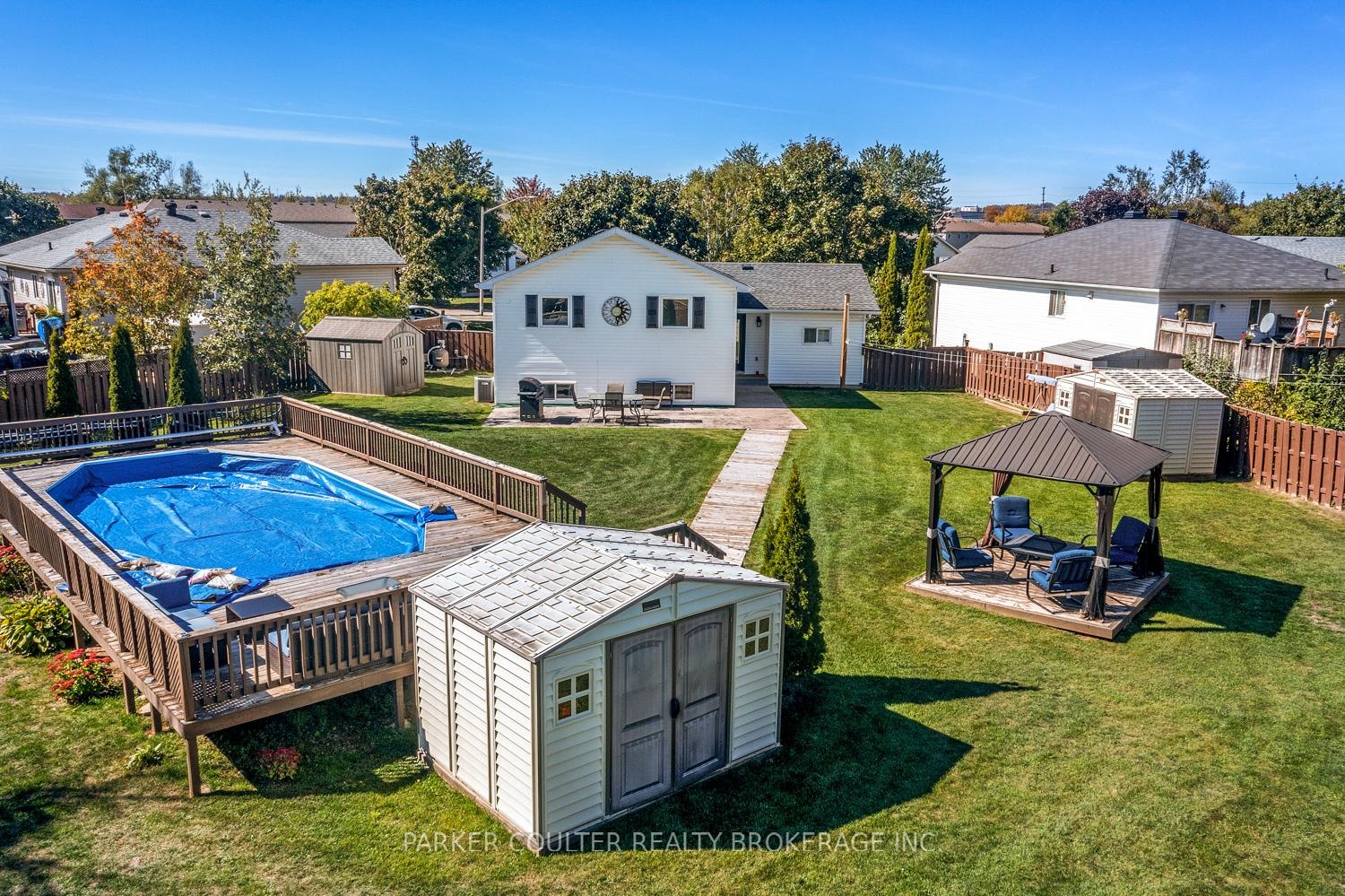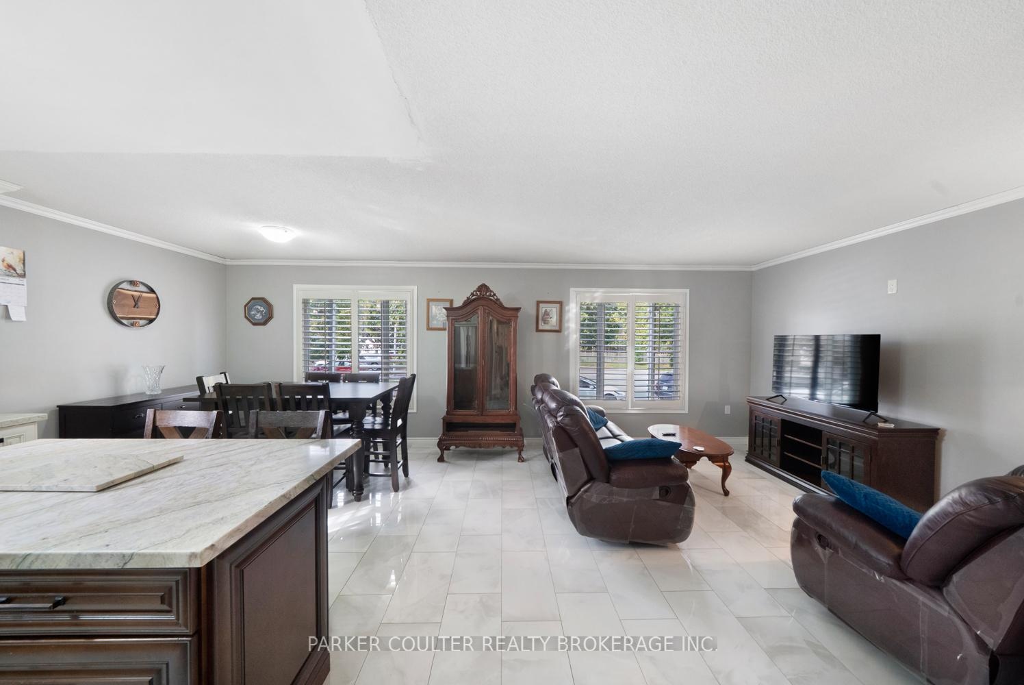 Welcome to 28 Keith Street, a beautifully updated raised bungalow perfectly situated on a quiet cul-de-sac in one of Orillia's most desirable family neighbourhoods. This home offers an exceptional blend of modern design, comfort, and outdoor living-ideal for growing families or multi-generational living. Step inside to a bright open-concept main level featuring porcelain tile flooring, California shutters, and a seamless flow between the living, dining, and kitchen areas. The custom kitchen showcases quartzite countertops, modern cabinetry, stainless steel appliances, and a center island, making it the true heart of the home. The main floor also hosts three generous bedrooms, including a spacious primary suite with a walk-in closet and a large window for natural light. A stylish four-piece bathroom completes the level. The fully finished lower level offers incredible versatility with in law suite, two additional bedrooms, a large family room, and a four-piece bath-providing the perfect setup for extended family, guests, or a potential in-law suite. Step outside to your backyard oasis featuring a heated 16' x 32' inground pool, a spacious deck, and a stamped concrete patio-an entertainer's dream space for relaxing or hosting summer gatherings. This home has been updated throughout with modern finishes and features forced air gas heating, central air conditioning, and an attached garage with a private double driveway offering parking for four vehicles. Connected to municipal water and sewer, and located near parks, schools, shopping, and commuter routes, this property combines convenience, comfort, and style. Nestled in a tranquil setting with mature surroundings, 28 Keith Street is the perfect place to call home in the heart of Orillia.