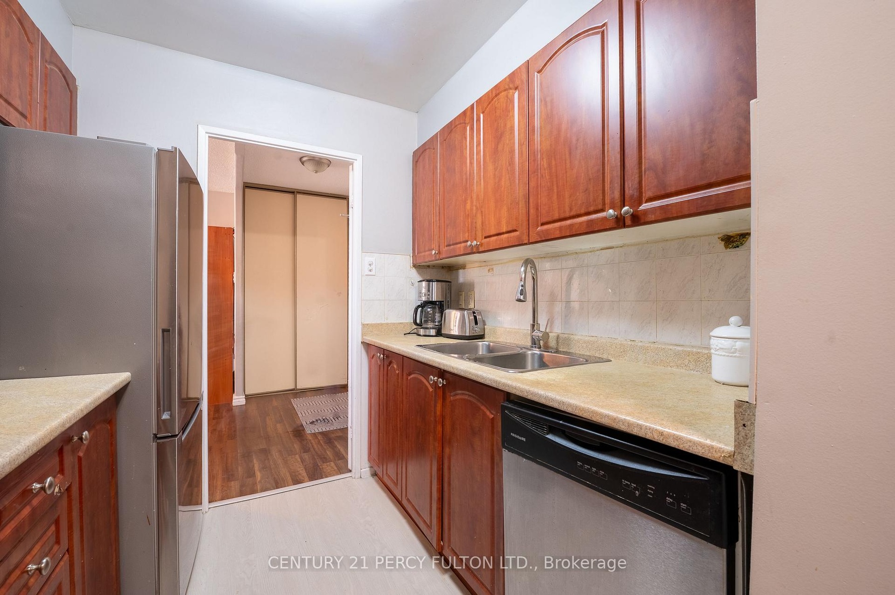 Feel at home in this large 3 bdrm, 2 full bath condo in a Great Location, Near All Amenities. One Of The Largest Units In The Complex. Sunny South view and Practical Layout. Large living room with a walk out to balcony, Laminate floors thru out. Separate laundry room, Great facilities include indoor and outdoor pool, Tennis court, exercise room, kids play ground, sauna, party room, concierge and 24hrs security. Walk to school, hospital, park & TTC.