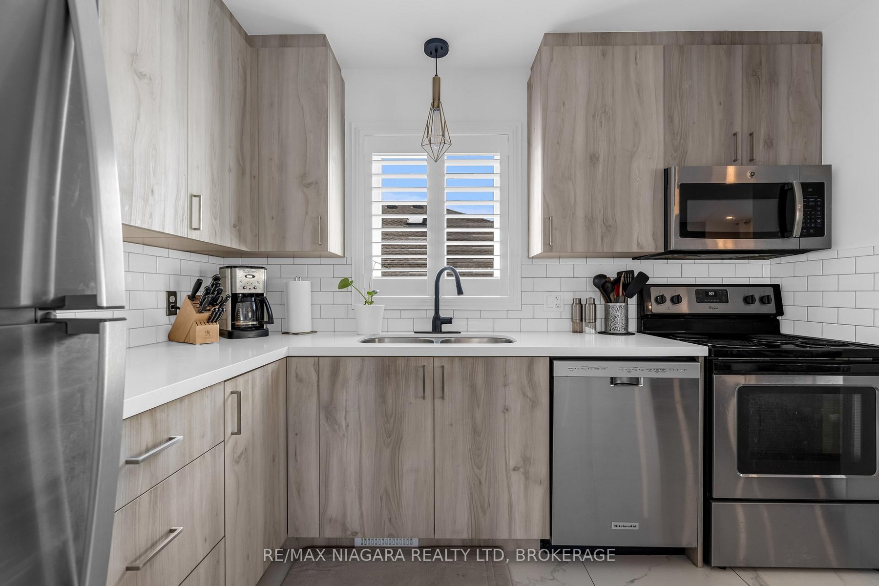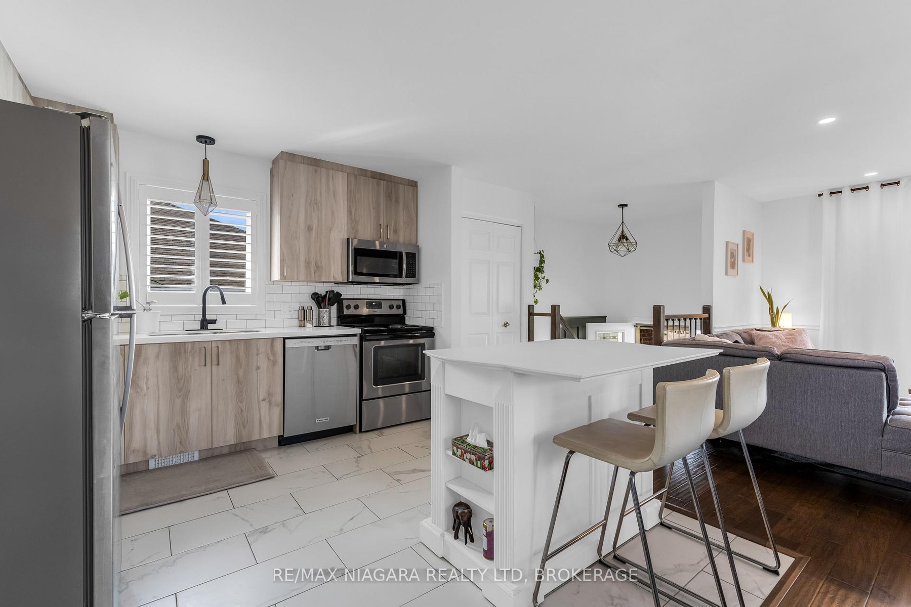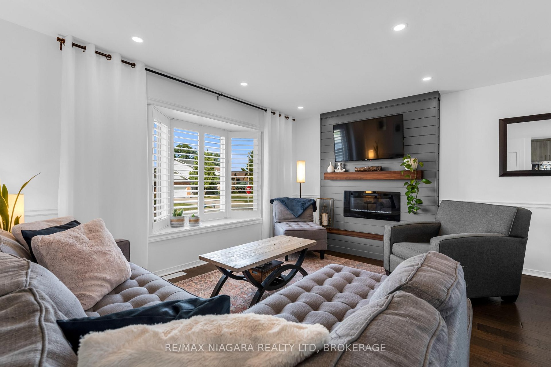 Welcome to 8142 Marcon Street! This home features a chic and warm interior with unique light fixtures complimenting the clean minimalist aesthetic. The living room highlights a custom black walnut entertainment wall with a built-in fireplace and recessed lighting. The spacious family room located on the lower level is perfect for your next game night or cozy movie night in. The large backyard has endless entertaining opportunities and has a covered concrete patio with plenty of green-space. This renovated beautiful family home is located in a quiet well-maintained neighbourhood close to amenities, schools and green-spaces. Recessed lighting (2023), roof (2018), furnace (2020), bay window (2021), A/C (2022), engineered hardwood (2022), California shutters (2021).