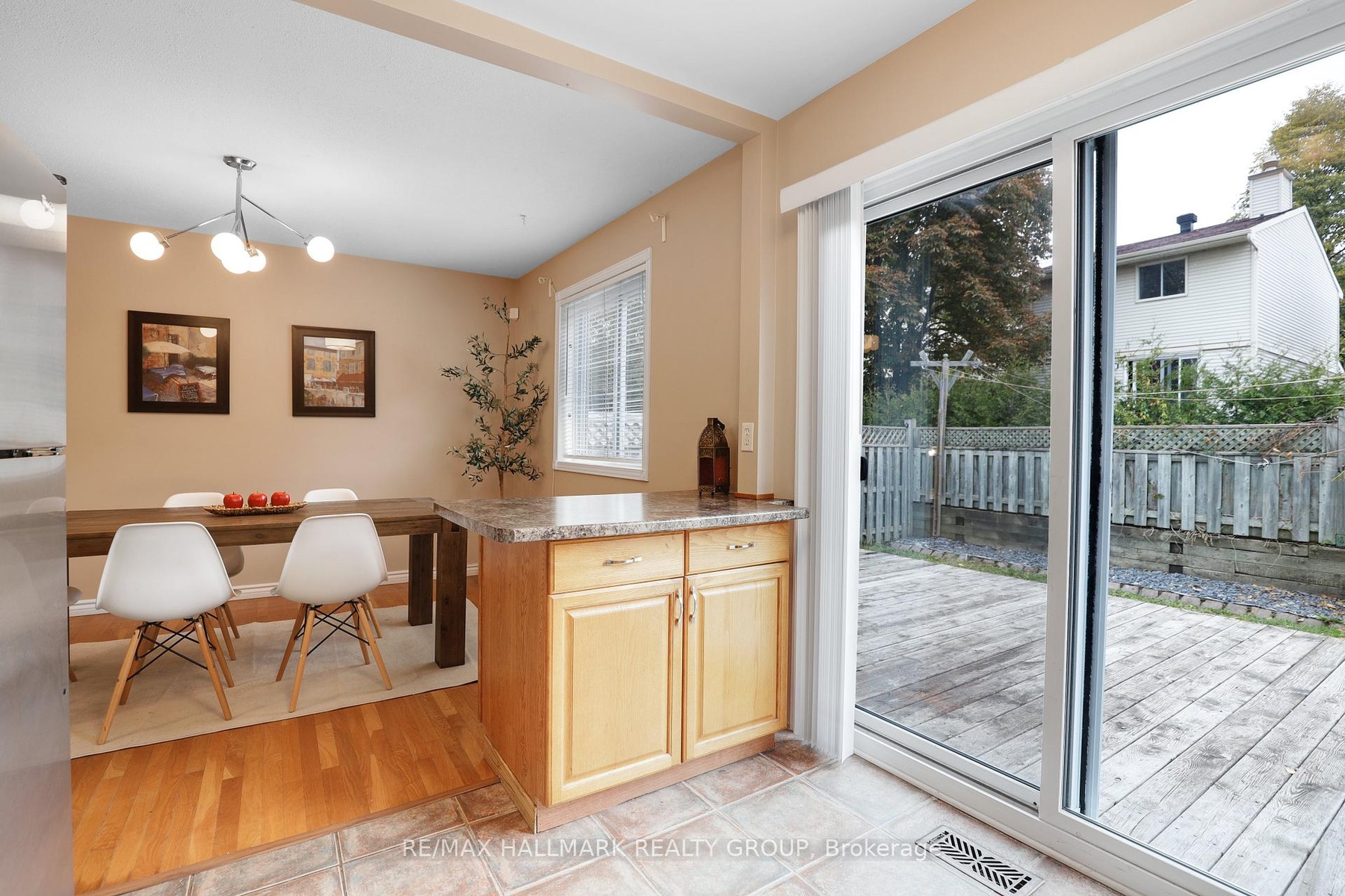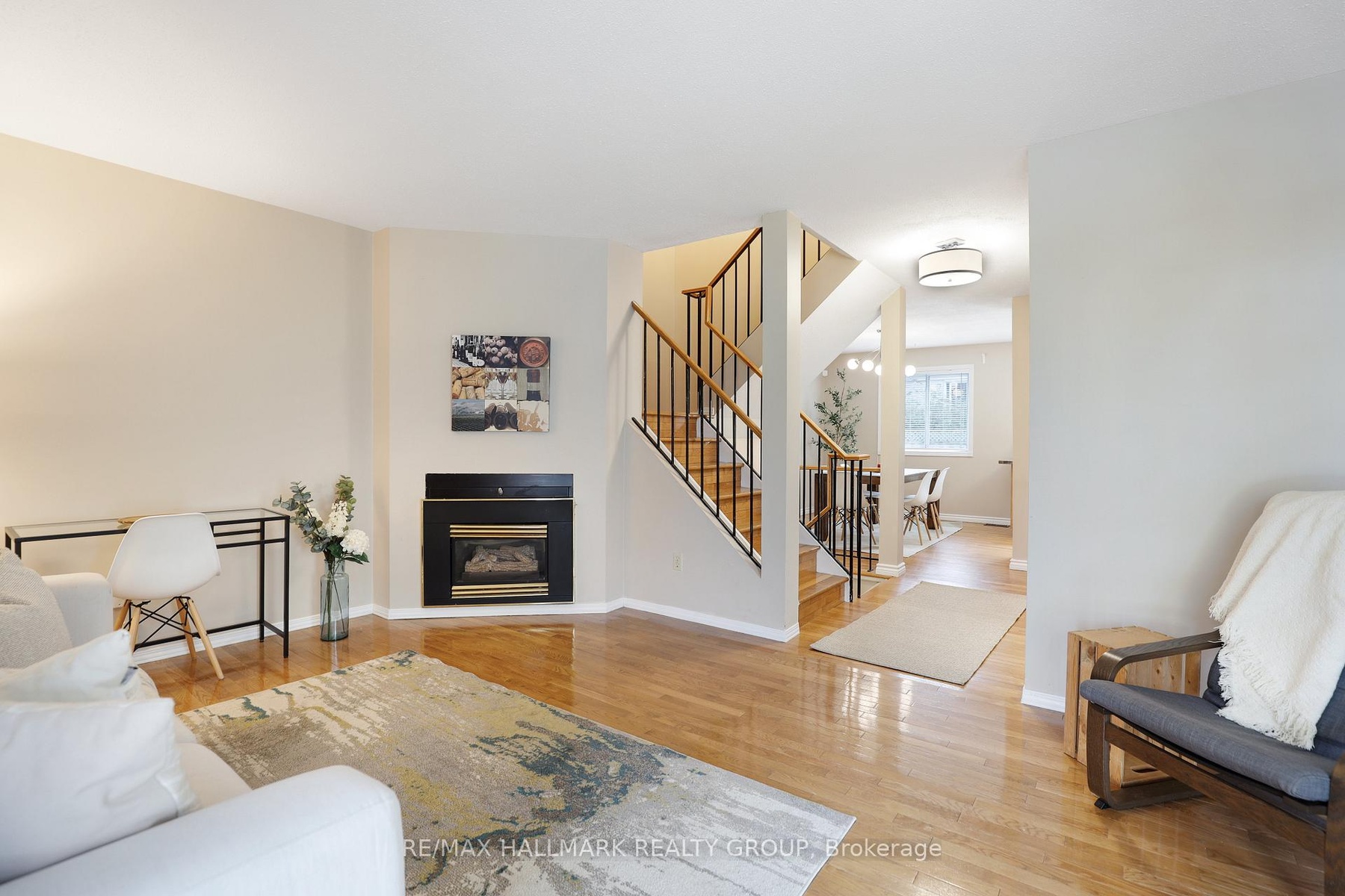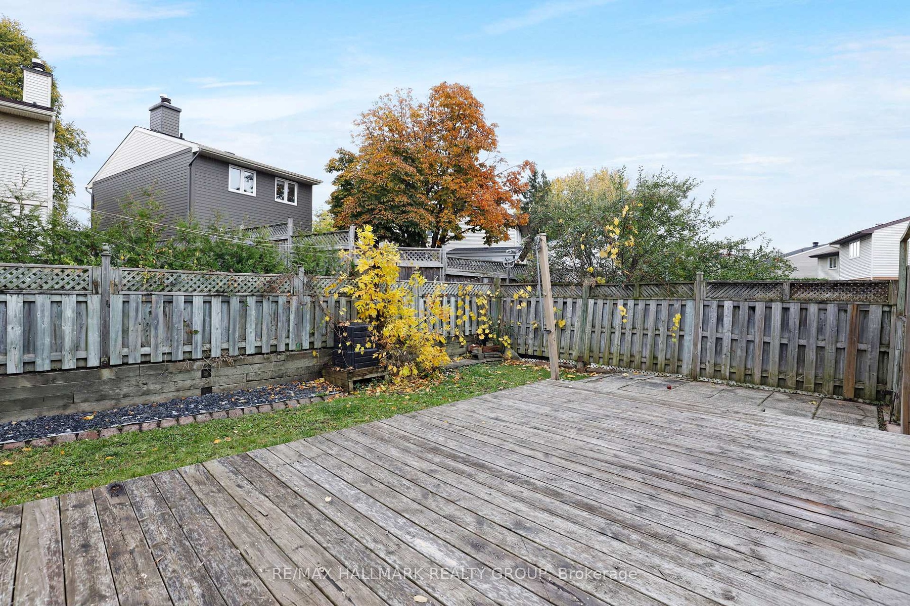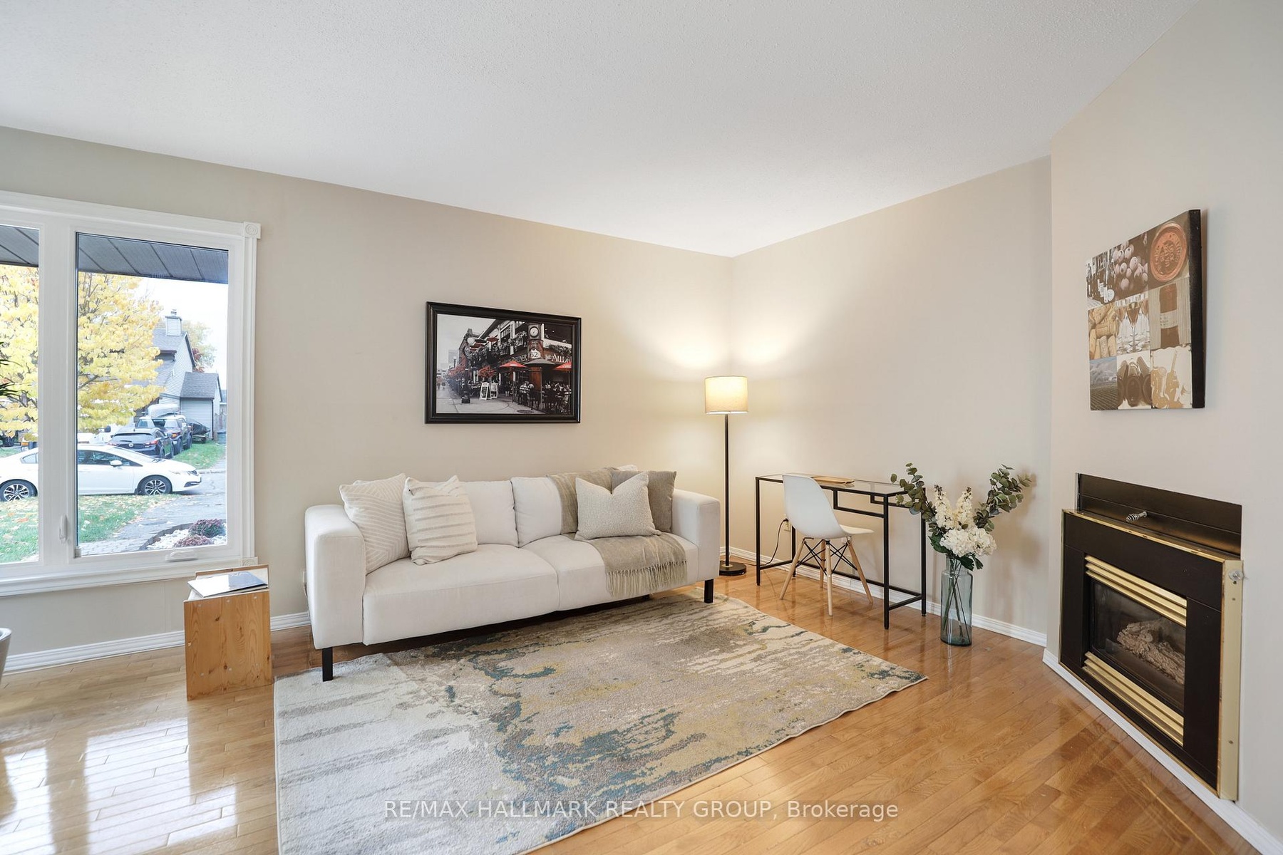 Here's your chance to own a single-family home for the price of a semi! This sunny 3-bedroom, 2-bathroom home is nestled on a quiet, family-friendly crescent in Gloucester, offering easy access to parks, schools, shopping, and the Queensway. It's ideally located near Ottawa General Hospital, CHEO, and Trainyards, with local parks just a short walk away. Plus, enjoy a weekday peak time, convenient 30-minute commute to the University of Ottawa-perfect for students, staff, or anyone working downtown. The main floor features a spacious powder room, a bright living room with a corner window and cozy gas fireplace, and a generous dining area that opens to a kitchen tucked at the back of the house-perfect for seamless backyard access during BBQ season. The kitchen boasts oak cabinets, stainless steel appliances, a breakfast bar, and views of the sunny, fully fenced backyard with a large deck. Upstairs, hardwood stairs lead to a spacious principal bedroom with a full wall of closets and built-in organizers. Two additional bedrooms at the rear of the home offer privacy and ample space for desks, dressers, and beds. A large hallway closet provides extra linen storage, and the main bathroom includes a 4-piece with an acrylic tub and easy-care tub surround. The basement offers a well-lit recreation or playroom with recessed lighting, a laundry room with newer vinyl flooring, a newer gas furnace and hot water tank ( 2019), and a central vacuum system with attachments and a flex area for a workout area or workshop. Outside, a double driveway and interlock path welcome guests year-round, while exterior access to garage makes gardening a breeze. The garage also features attic storage-ideal for seasonal items, tools, or extra gear. With hardwood floors throughout, classic tile finishes, vinyl windows, and all appliances, light fixtures, and window treatments included, this freehold home is a rare find in a modest enclave of singles-no condo fees required.. Roof updated 2018.