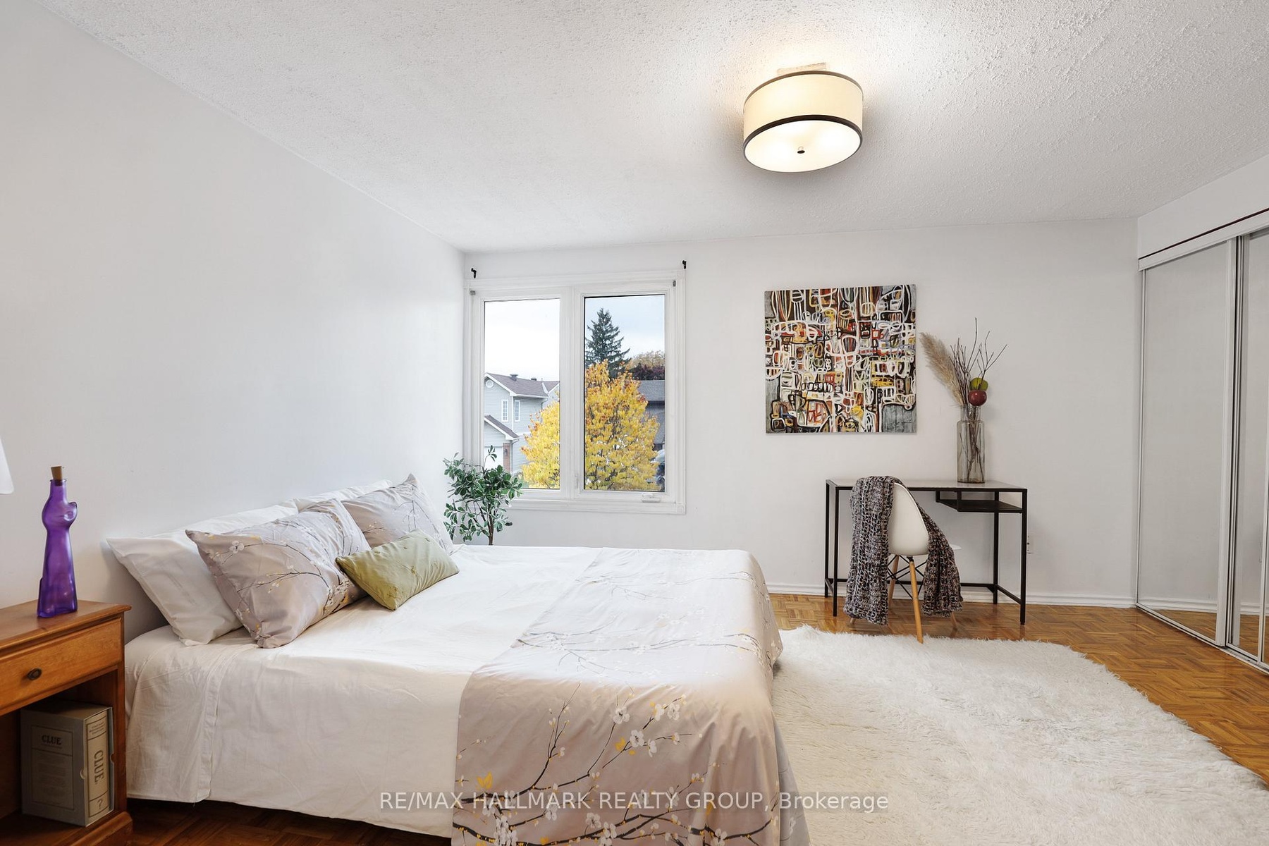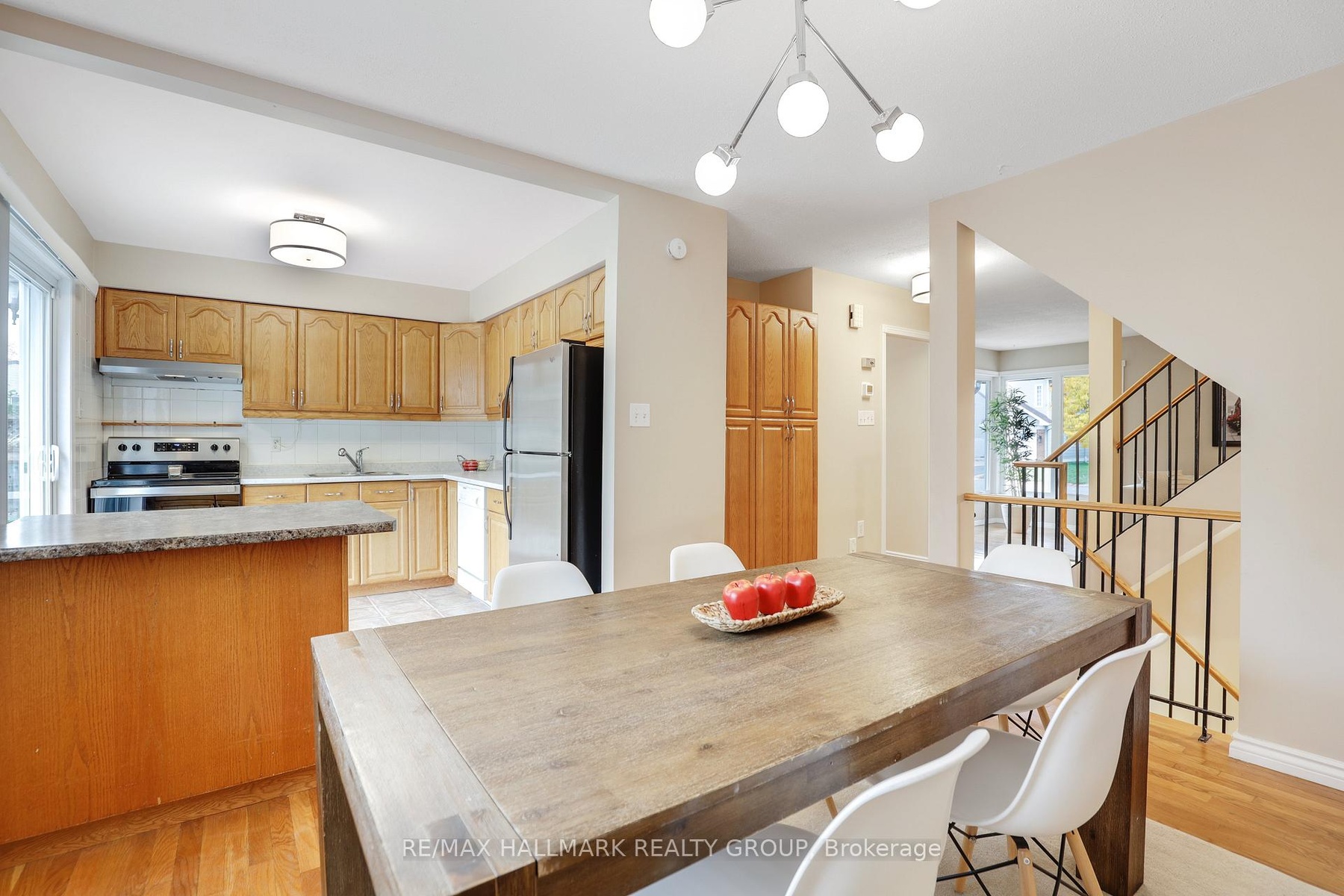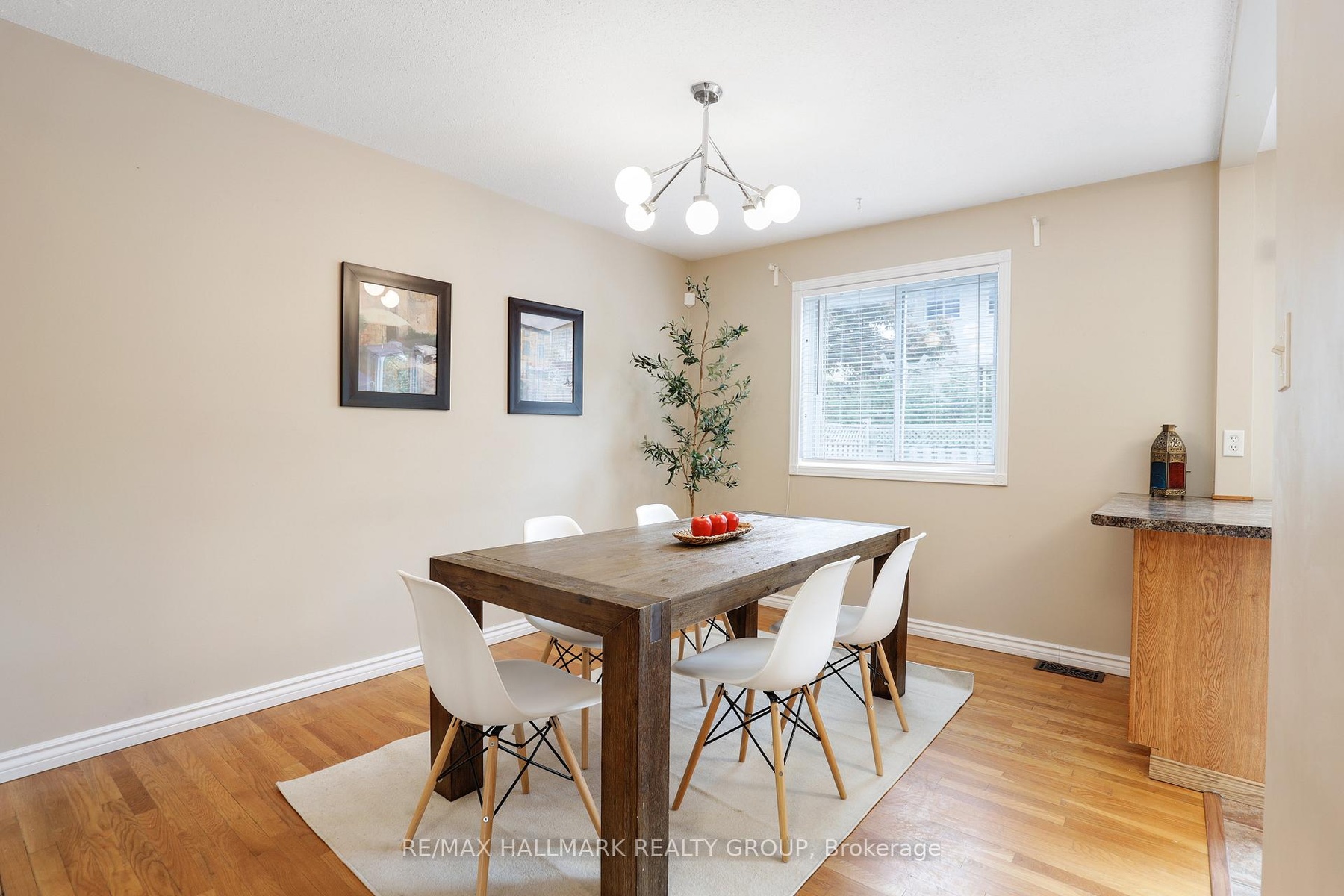 Here's your chance to own a single-family home for the price of a semi! This sunny 3-bedroom, 2-bathroom home is nestled on a quiet, family-friendly crescent in Gloucester, offering easy access to parks, schools, shopping, and the Queensway. It's ideally located near Ottawa General Hospital, CHEO, and Trainyards, with local parks just a short walk away. Plus, enjoy a weekday peak time, convenient 30-minute commute to the University of Ottawa-perfect for students, staff, or anyone working downtown. The main floor features a spacious powder room, a bright living room with a corner window and cozy gas fireplace, and a generous dining area that opens to a kitchen tucked at the back of the house-perfect for seamless backyard access during BBQ season. The kitchen boasts oak cabinets, stainless steel appliances, a breakfast bar, and views of the sunny, fully fenced backyard with a large deck. Upstairs, hardwood stairs lead to a spacious principal bedroom with a full wall of closets and built-in organizers. Two additional bedrooms at the rear of the home offer privacy and ample space for desks, dressers, and beds. A large hallway closet provides extra linen storage, and the main bathroom includes a 4-piece with an acrylic tub and easy-care tub surround. The basement offers a well-lit recreation or playroom with recessed lighting, a laundry room with newer vinyl flooring, a newer gas furnace and hot water tank ( 2019), and a central vacuum system with attachments and a flex area for a workout area or workshop. Outside, a double driveway and interlock path welcome guests year-round, while exterior access to garage makes gardening a breeze. The garage also features attic storage-ideal for seasonal items, tools, or extra gear. With hardwood floors throughout, classic tile finishes, vinyl windows, and all appliances, light fixtures, and window treatments included, this freehold home is a rare find in a modest enclave of singles-no condo fees required.. Roof updated 2018.