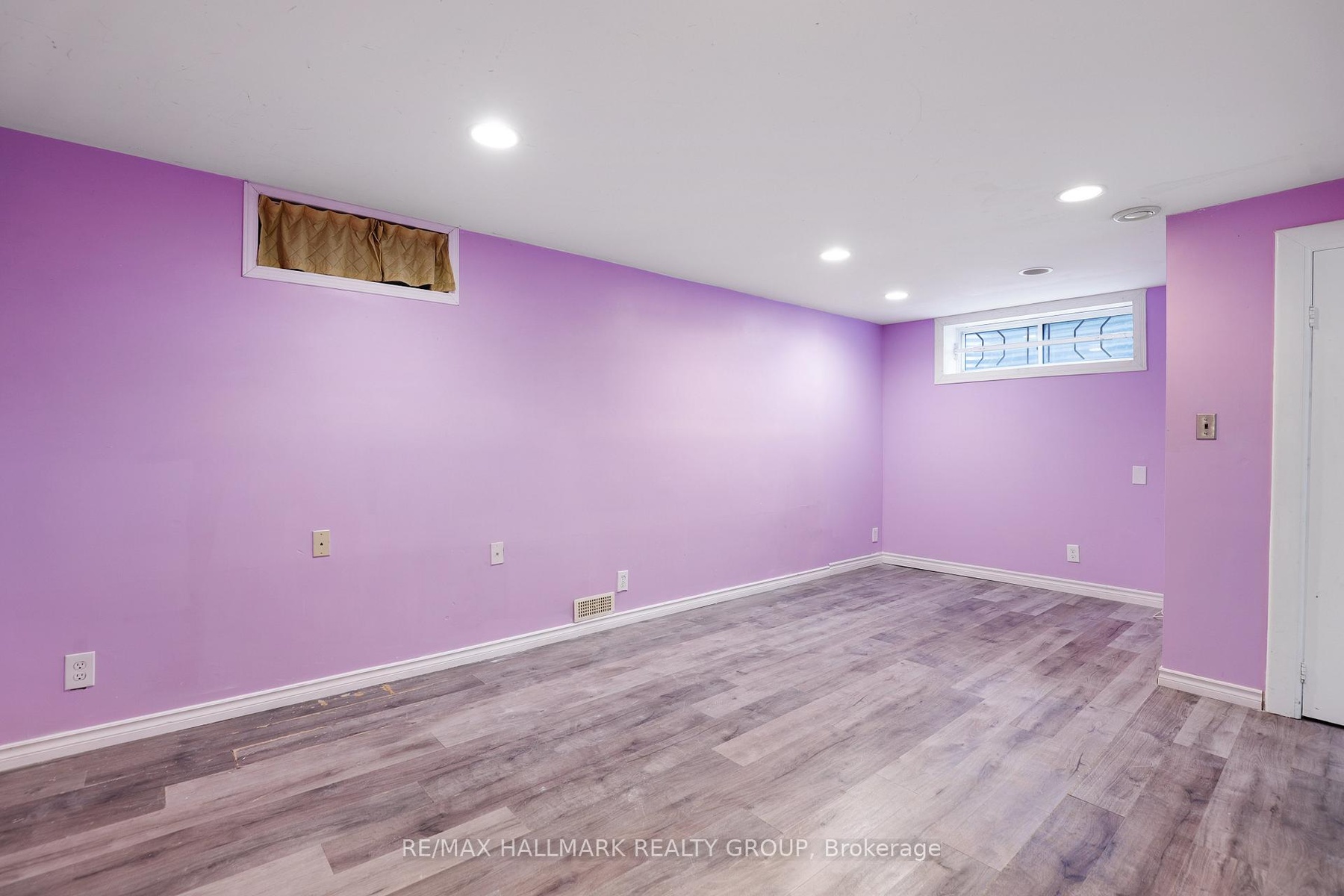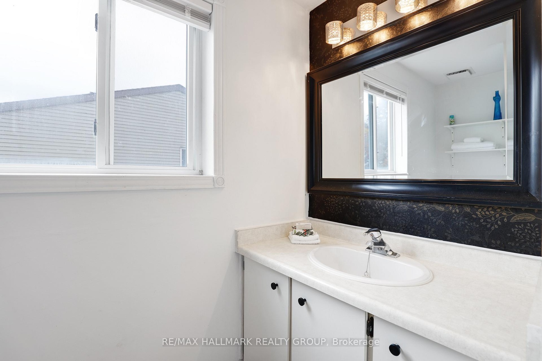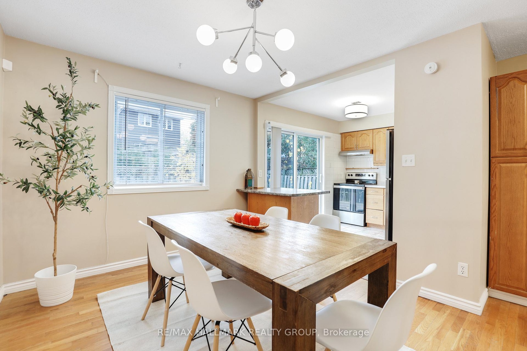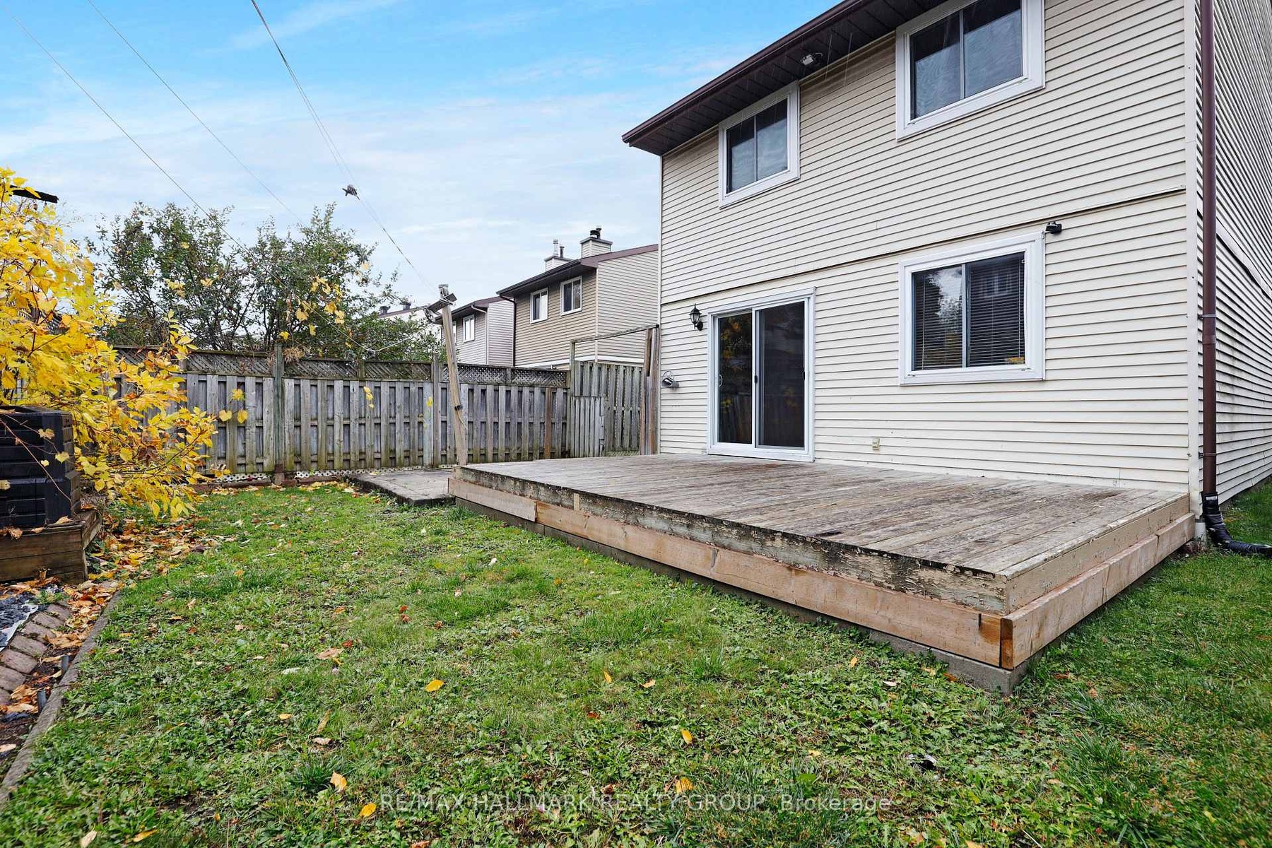 Here's your chance to own a single-family home for the price of a semi! This sunny 3-bedroom, 2-bathroom home is nestled on a quiet, family-friendly crescent in Gloucester, offering easy access to parks, schools, shopping, and the Queensway. It's ideally located near Ottawa General Hospital, CHEO, and Trainyards, with local parks just a short walk away. Plus, enjoy a weekday peak time, convenient 30-minute commute to the University of Ottawa-perfect for students, staff, or anyone working downtown. The main floor features a spacious powder room, a bright living room with a corner window and cozy gas fireplace, and a generous dining area that opens to a kitchen tucked at the back of the house-perfect for seamless backyard access during BBQ season. The kitchen boasts oak cabinets, stainless steel appliances, a breakfast bar, and views of the sunny, fully fenced backyard with a large deck. Upstairs, hardwood stairs lead to a spacious principal bedroom with a full wall of closets and built-in organizers. Two additional bedrooms at the rear of the home offer privacy and ample space for desks, dressers, and beds. A large hallway closet provides extra linen storage, and the main bathroom includes a 4-piece with an acrylic tub and easy-care tub surround. The basement offers a well-lit recreation or playroom with recessed lighting, a laundry room with newer vinyl flooring, a newer gas furnace and hot water tank ( 2019), and a central vacuum system with attachments and a flex area for a workout area or workshop. Outside, a double driveway and interlock path welcome guests year-round, while exterior access to garage makes gardening a breeze. The garage also features attic storage-ideal for seasonal items, tools, or extra gear. With hardwood floors throughout, classic tile finishes, vinyl windows, and all appliances, light fixtures, and window treatments included, this freehold home is a rare find in a modest enclave of singles-no condo fees required.. Roof updated 2018.