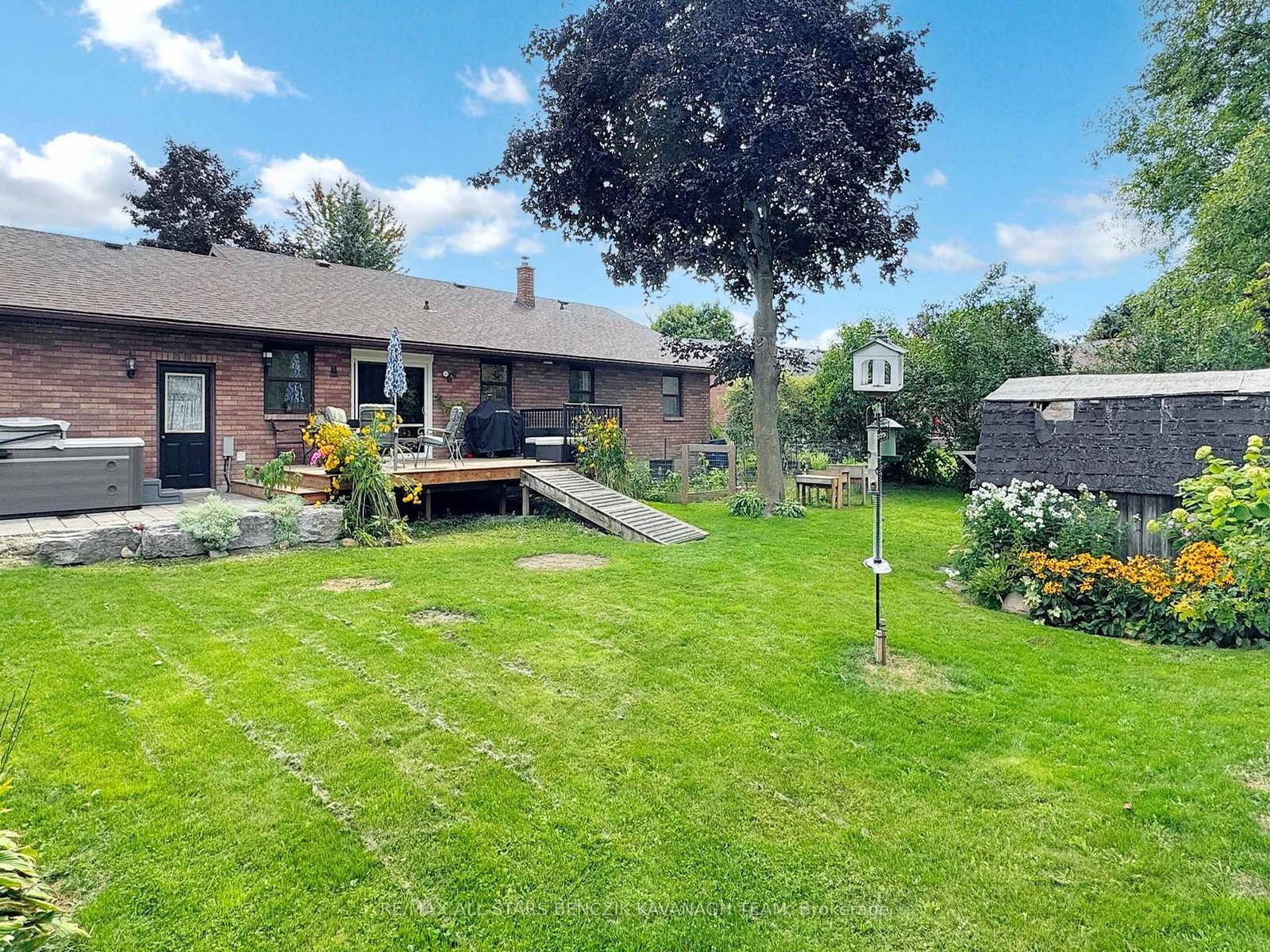 Charming 3+1 bedroom bungalow set on a generous 72' wide lot, ideally situated on a quiet court with convenient ground-level access in the quaint Town of Sunderland, offering easy commuting to Newmarket, Orillia, and cottage country. The spacious living room, with its sun-filled window, crown moulding, and pot lights, flows seamlessly into the dining room where the walls have been opened up to create a large eat-in kitchen featuring hardwood flooring, cabinet pull-outs, and a walkout to the deck for effortless indoor-outdoor living. The main level also includes a convenient laundry area with garage access, an expansive primary bedroom with a private 2-piece ensuite, two additional bedrooms, and a well-appointed 4-piece bath. The ground-level entry, offers easy accessibility for walkers and wheelchairs, with a layout designed for effortless movement throughout the home. The lower level extends the living space with a recreation area, a fourth bedroom, a 4-piece bath with jetted tub, and ample storage. Outdoors, enjoy a sun-drenched backyard with a spacious deck, lower patio with hot tub, vibrant floral beds, and a vegetable garden. Ideally located steps from local parks, Sunderland Public School, Health Centre, Main Street shops and amenities, and within walking distance to the sports complex, this home offers the charm of country living with easy access to fresh, locally grown produce.
