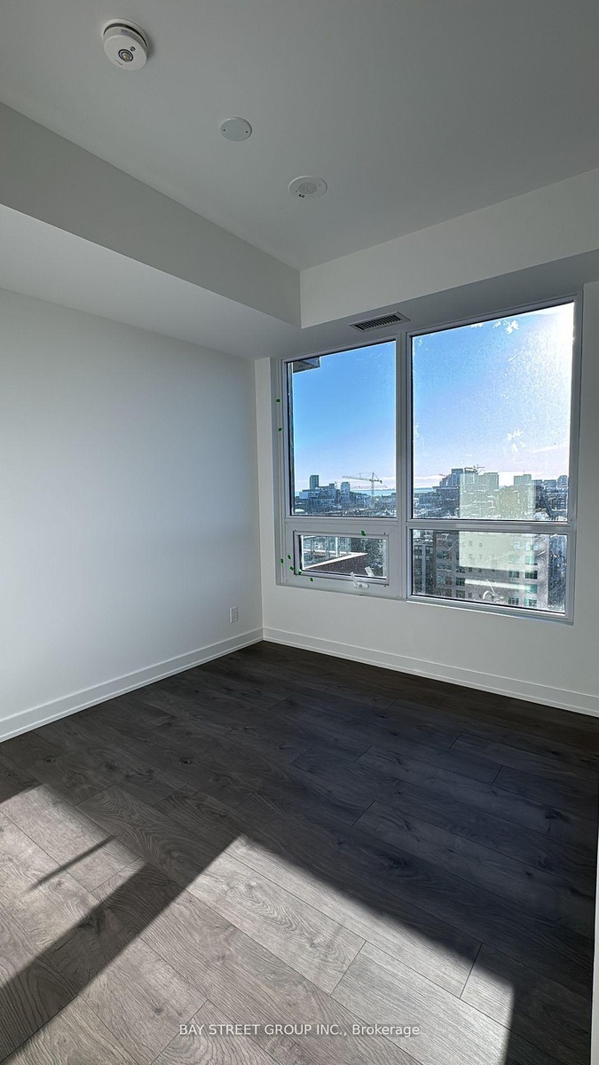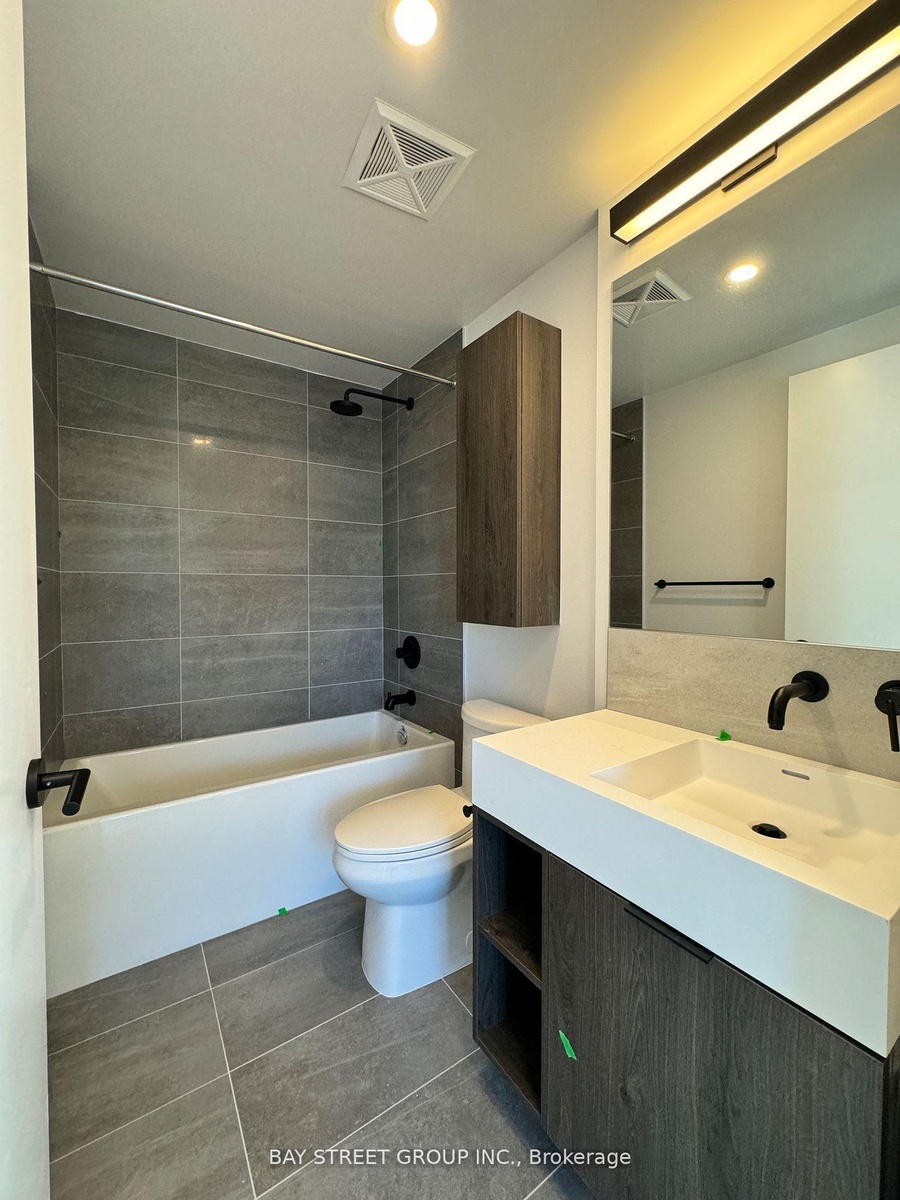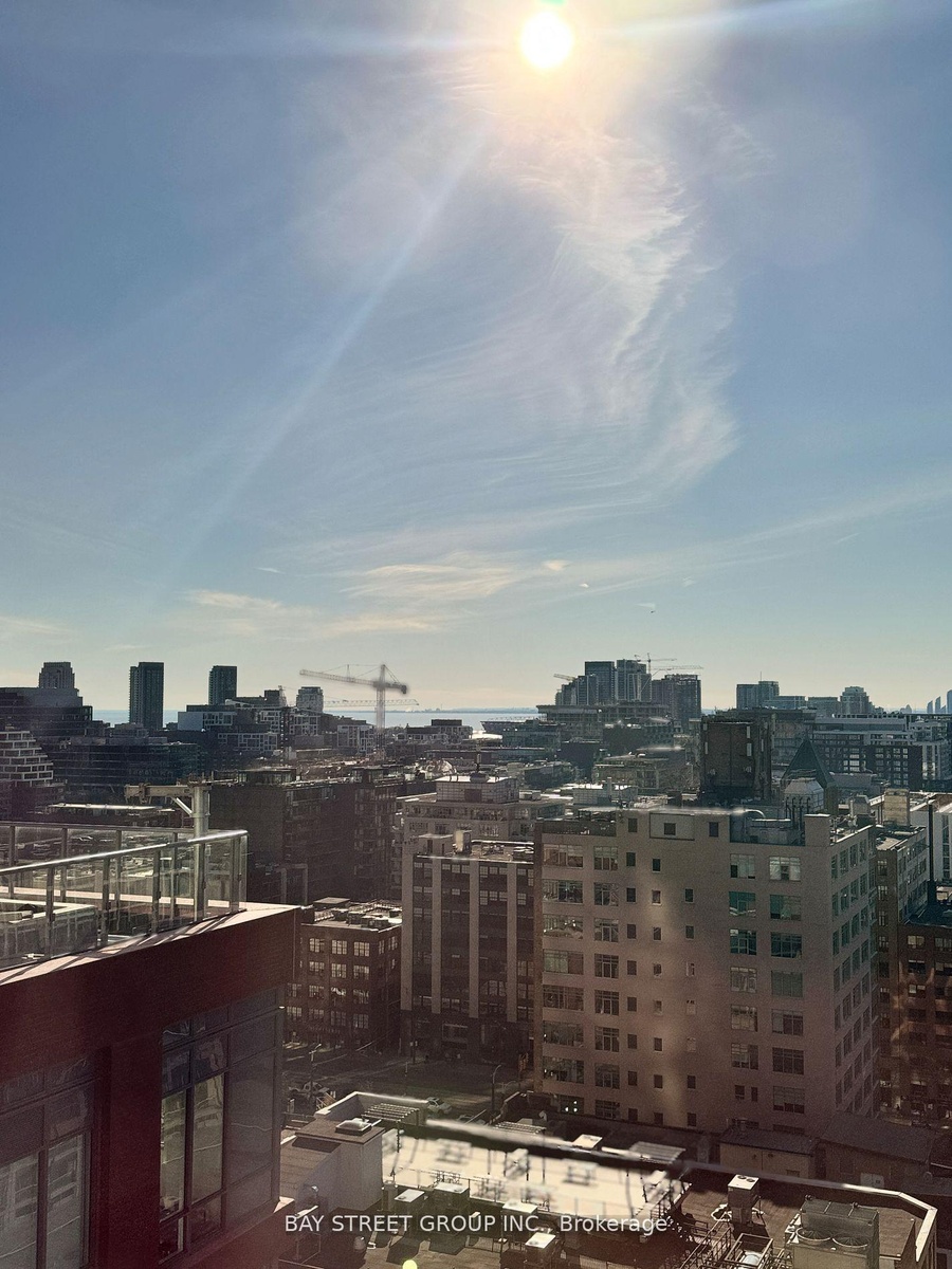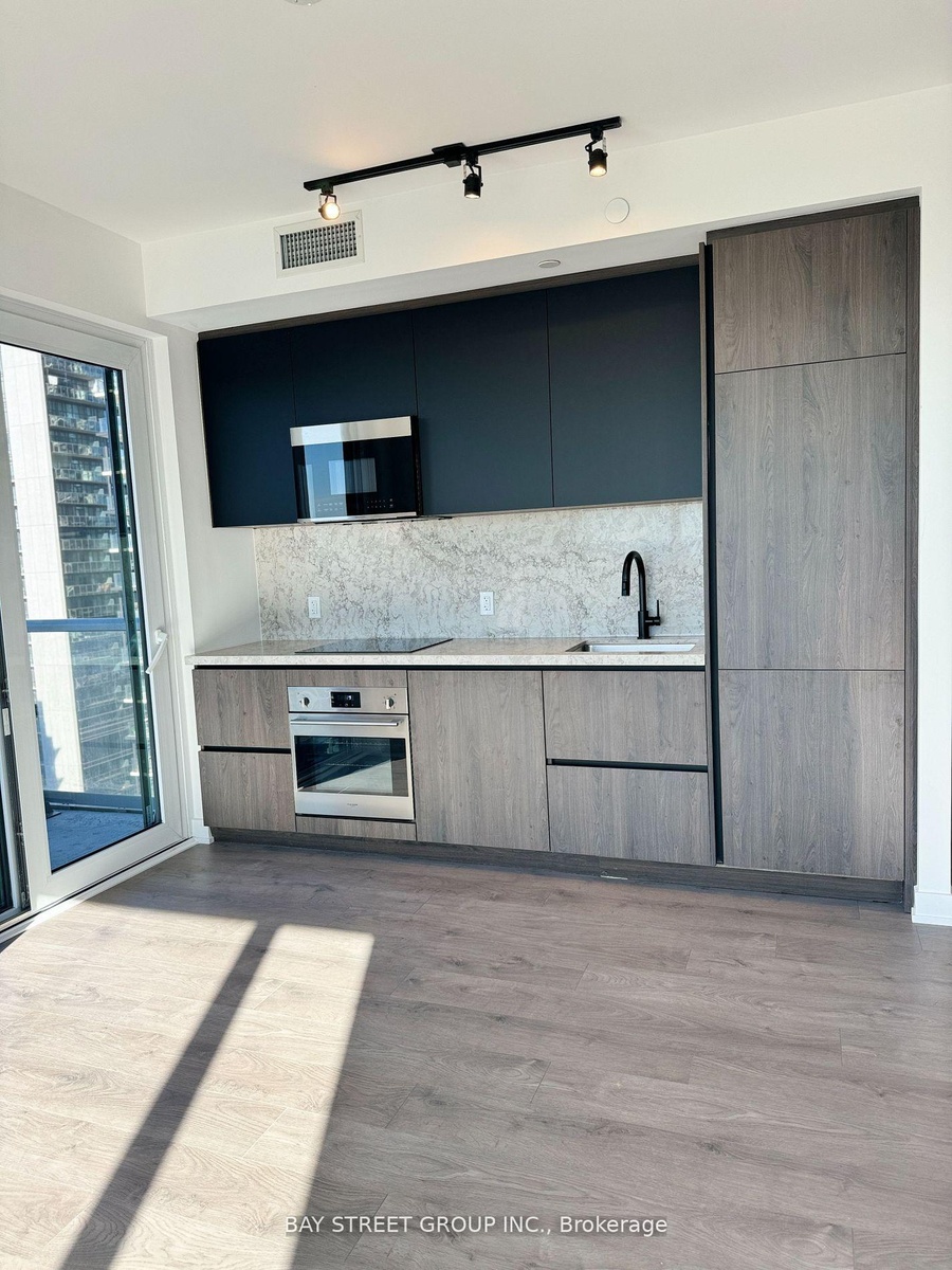 Prime Location in the Vibrant Heart of Toronto's Entertainment District. This never-occupied suite offers 746 sq ft of interior space, featuring a private balcony, 2 bedrooms, a den, and 2 bathrooms. The modern designer kitchen and bathrooms are complemented by laminate floors throughout, 9 ft ceilings, and sleek quartz countertops with a matching backsplash. Additional highlights include a spacious walk-in laundry closet, providing both style and functionality in a prime location.