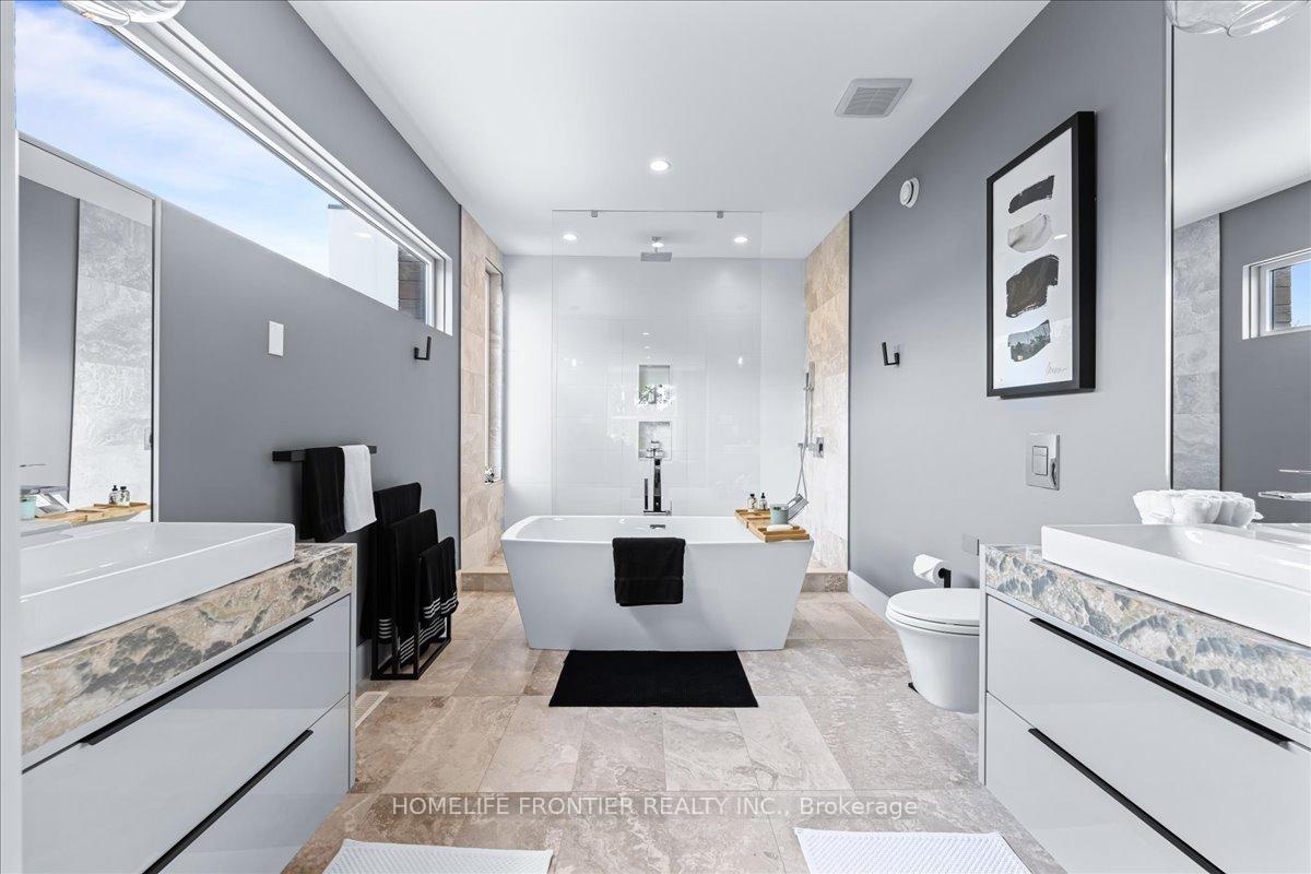 Welcome to this majestic luxury house, a true gem nestled in the coveted and family-friendly community of The Alcove in Byron! Approx. 4000 sqft of livable space! You are greeted by an inviting entrance with floor-to-ceiling closets for your storage needs. Featuring flowing architecture and an open-concept design, the spaces for living, cooking, and dining all seamlessly merge together. This stunning home boasts 4+1 large bedrooms and 4 bathrooms, including an oversized master suite with a 5-piece spa-inspired ensuite and an extra-large walk-in closet. The additional 863 sqft of living space in the finished basement can be used as an in-law suite, office, or entertainment area. The cozy living room creates a warm and inviting environment to enjoy year-round. The kitchen is a chef's dream, featuring built-in fridge, custom-made cabinets with pull-out shelves and push-to-open mechanism, quartz countertop islands, high-end Miele appliances. Other interior features include closet organizers in bedrooms, a liquid fireplace, a hidden TV cabinet in living room, 9 ft. ceilings, European windows and doors, and oak staircase and flooring on the main level. Exterior features include a heated driveway, garage floors, and walkway to the entrance, so you'll never have to shovel snow. The professional landscaping includes a 7-zone irrigation system and a drip watering system, ensuring that your garden is always well-maintained. The large backyard is enclosed by a green fence and offers an oversized deck with a pergola, electric retractable awning, and BBQ gazebo. Can you imagine spending your weekends in a backyard like this? Conveniently located near Boler Mountain Patio, skiing, snowboarding, tubing, Treetop Adventure Park, and hiking & biking trails, this home is situated in Southwestern Ontario's most dynamic destination for outdoor adventure. Just moments from highway, this home is perfect for commuters, offering quick and easy access to transportation routes.