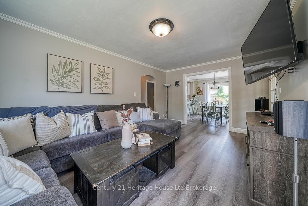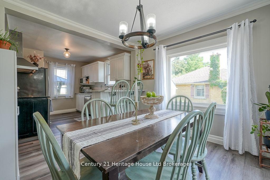 Your future home awaits in this spacious 4+2 bedroom gem, perfectly located on Woodstock's desirable South side. Enjoy peaceful views of Southside Park, ideal for quiet moments by the water or fun-filled family picnics. All just minutes from the 401/403, shopping, schools, and restaurants. Step inside to find three generously sized bedrooms on the upper level, plus a convenient main-floor bedroom. The large living room and dedicated dining area offer the perfect space for entertaining or relaxing with family. The main floor also features a recently updated full bathroom. The kitchen is bright and welcoming, with classic white cabinetry and a stylish white subway tile backsplash. An enclosed front porch adds even more charm and functionality and is perfect for morning coffee. Downstairs, the fully finished in-law suite includes its own kitchen, living and dining areas, bathroom, and two additional bedrooms, ideal for extended family or income potential. This home is situated on a quiet corner lot with a double detached garage. Don't miss your chance to live in the wonderful area!