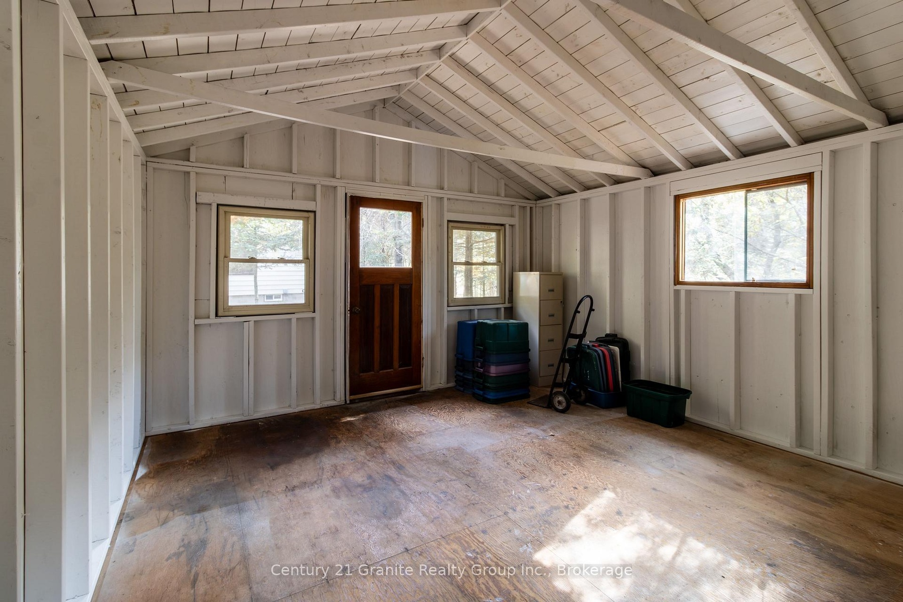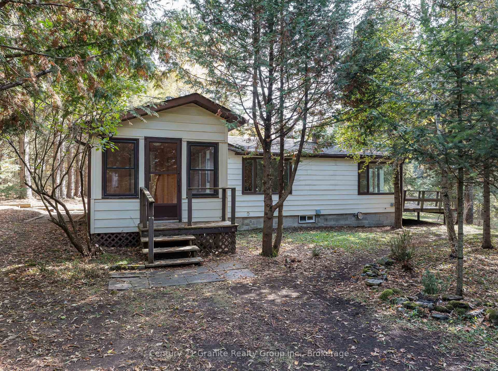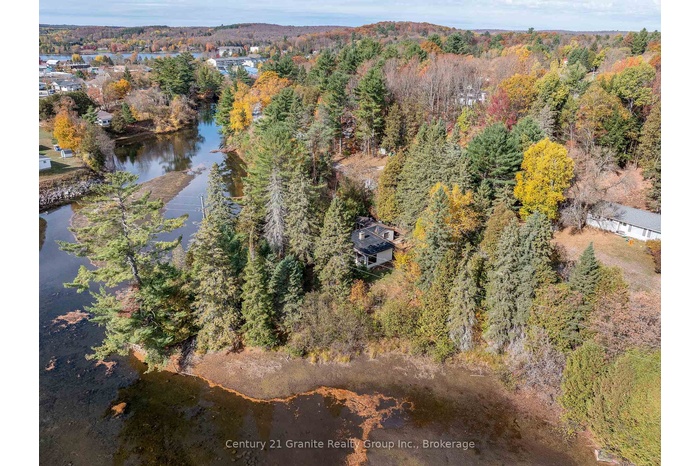 Charming In-Town Riverside Retreat in Haliburton Village - Discover this unique in-town point lot offering over 150 feet of serene frontage on the Drag River. With over 1,000 sq. ft. of living space, this 1-bedroom + den, 1-bathroom home combines the peaceful beauty of nature with the convenience of in-town living. Enjoy a picturesque setting surrounded by mature trees, gentle river views, and frequent visits from local wildlife, all within a 5-minute walk to Haliburton's shops, restaurants, parks, and amenities. The main level features an inviting open-concept living and dining area with beamed ceilings, a cozy wood-burning fireplace, and large windows overlooking the river. A bright sunroom and deck extend your living space outdoors, perfect for relaxing or entertaining by the water. The galley kitchen includes main-floor laundry and access to a cozy sitting room or mudroom. The spacious primary bedroom offers double closets and large windows framing scenic views of the property. A flexible den provides the perfect space for a guest room or home office. The lower level includes a tidy basement with a spacious storage area, workshop, and utility room - with potential to add to your living space. A large shed on the property offers additional storage or potential studio space. Recent updates include fresh paint throughout, updated lighting in the lower level, and a new propane forced-air furnace to be installed in early November. This charming property is an ideal opportunity for those looking to downsize, retire to the Highlands, or enter the market with a move-in-ready home in a beautiful riverside setting. Book your private tour today and experience in-town living with a touch of country tranquility.