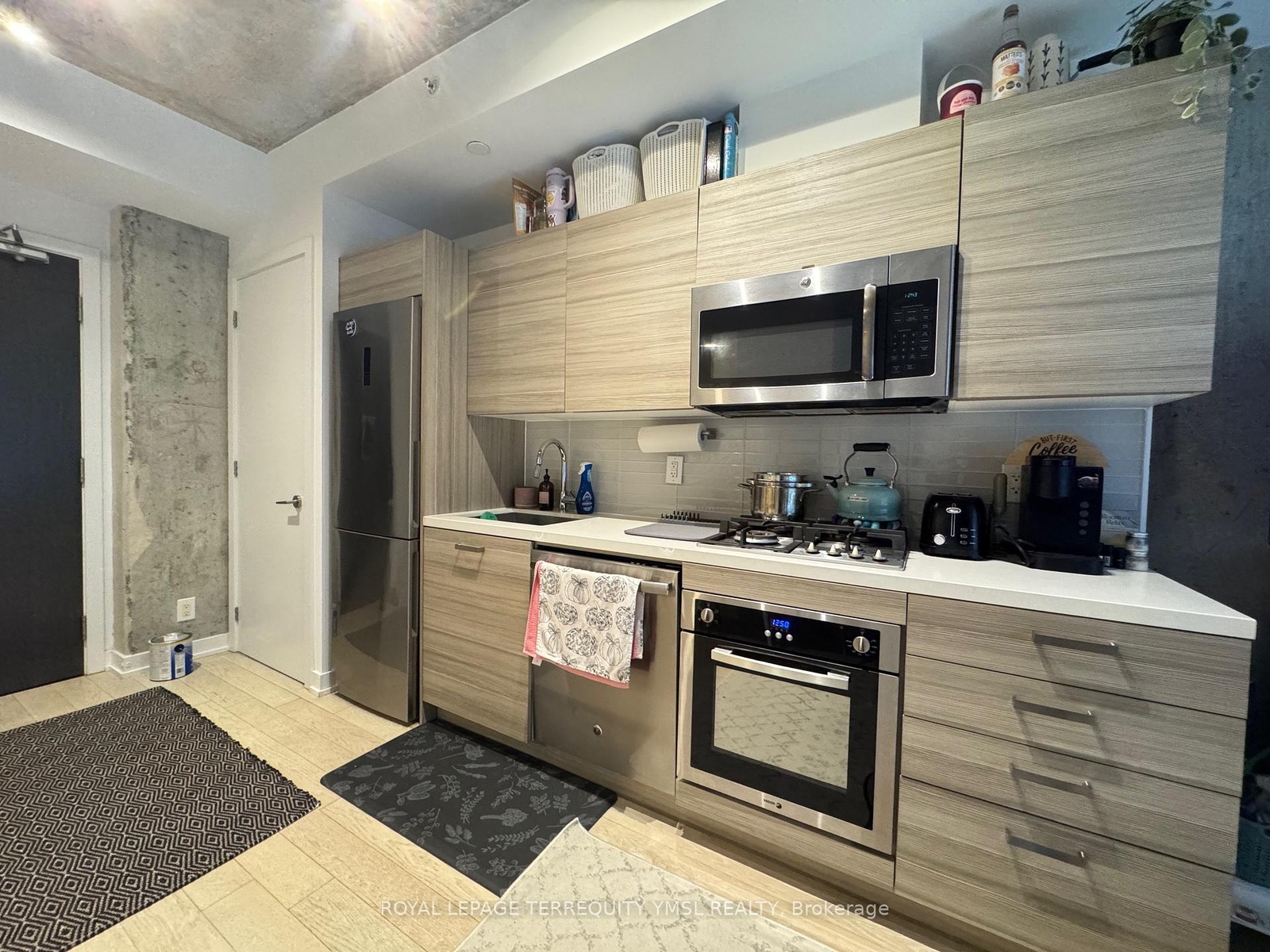"King Charlotte" - A sleek, modern high-rise in the heart of vibrant King West & Spadina! This stylish one-bedroom suite offers 9' exposed concrete ceilings, a signature concrete accent wall, and floor-to-ceiling windows that fill the space with natural light. Features include engineered hardwood flooring, Scavolini kitchen cabinetry, quartz countertops, and stainless steel appliances with a gas cooktop. The spa-inspired bathroom boasts a deep soaking tub and rain shower. Enjoy world-class amenities: a rooftop terrace with infinity pool, fully equipped gym, party room, and 24-hour concierge. One bike locker included. Perfect for a downtown professional or savvy investor seeking modern comfort and a dynamic urban lifestyle!