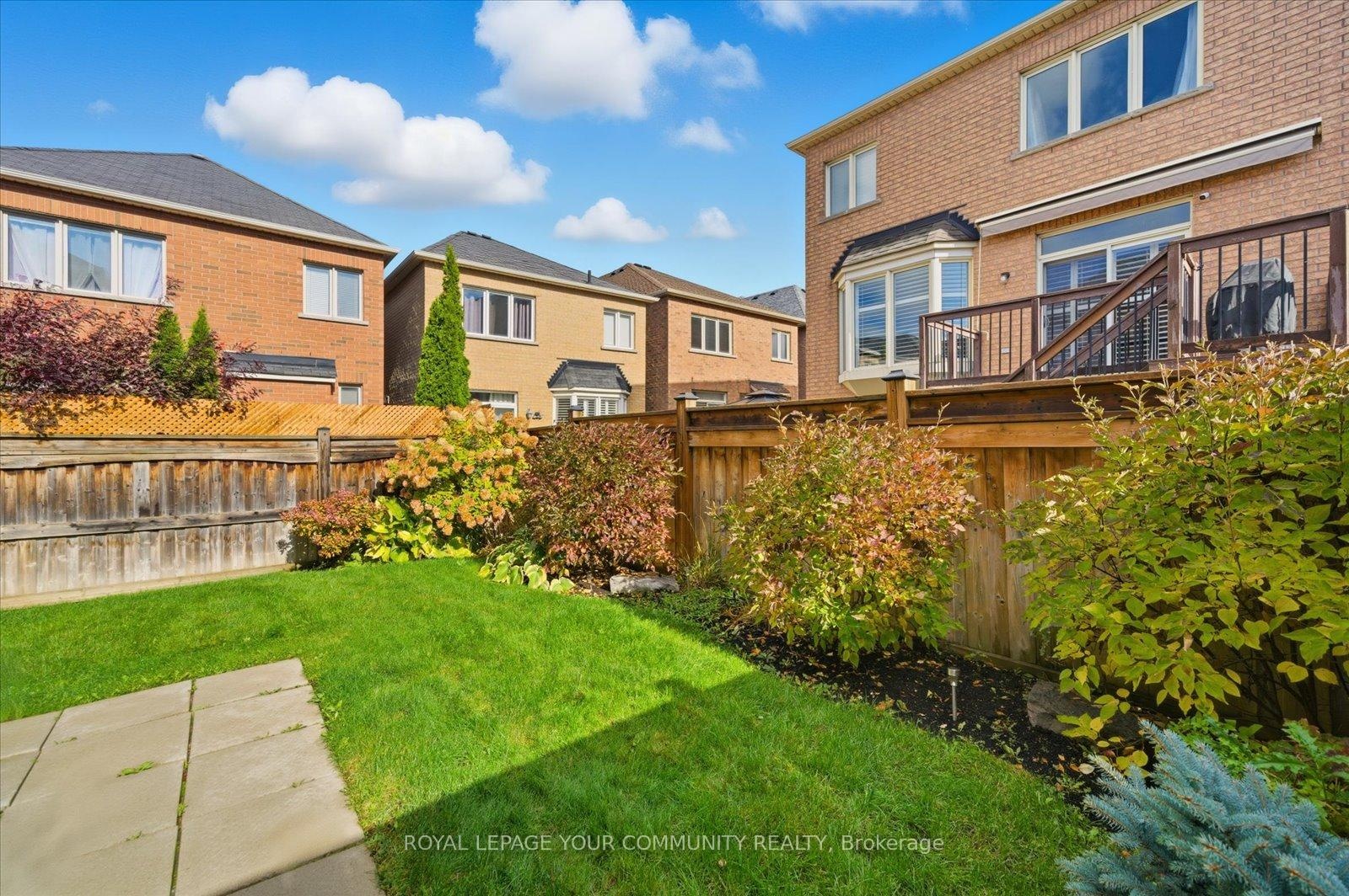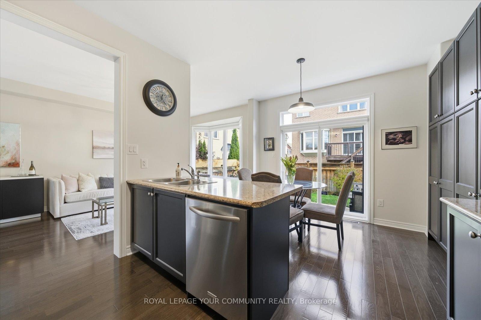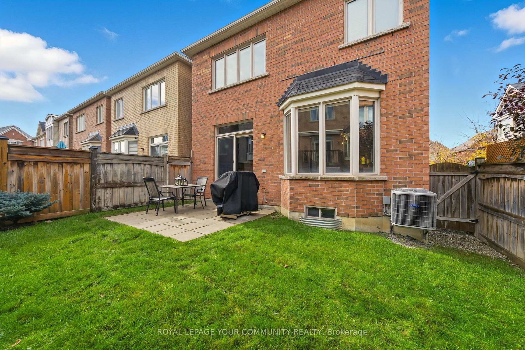 Your Search Ends Here! Don't miss this rare opportunity to own a beautiful 3-bedroom end-unit link home on a quiet crescent in sought-after Thornhill Woods! Featuring a 2-car garage and a driveway for 4 vehicles, this sun-filled home offers 9-ft ceilings, rounded corners, and dark-stained hardwood floors throughout the main level. The combination living and dining room boasts a charming bay window, while the modern kitchen includes stainless steel appliances, a pantry, and a bright eat-in area with a walkout to the extended patio and landscaped, fully fenced backyard - perfect for entertaining! Upstairs, relax in the cozy family room with gas fireplace and French doors leading to a walk-out balcony. The spacious primary suite features large windows, a walk-in closet, and a 4-piece ensuite with jacuzzi tub and large glass shower. There are two additional bedrooms, a 4-piece bathroom with private toilet and tub, an upstairs laundry room with stainless steel front loading washer and dryer, and a large linen closet that completes the upper level. The unfinished lower level includes a cold cellar and rough-in plumbing- ready for your personal touch. Ideally located near top-rated schools, parks, Community Centre, shops, public transit, GO Station, and Hwy 407. Move-in ready and waiting for you - this one won't last!