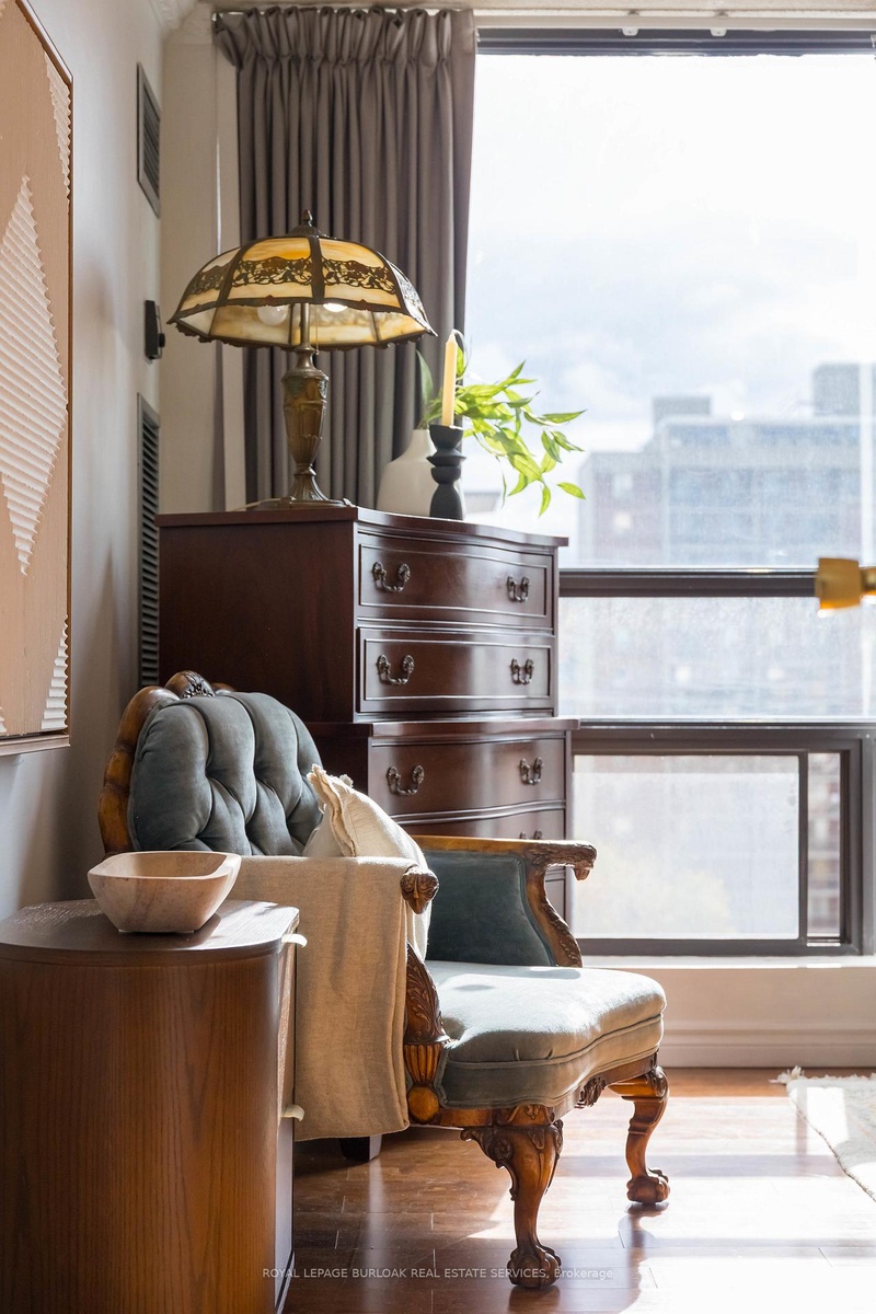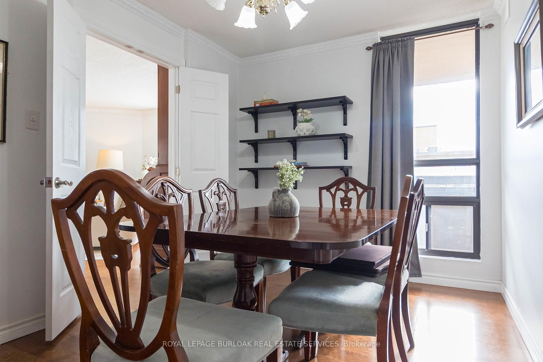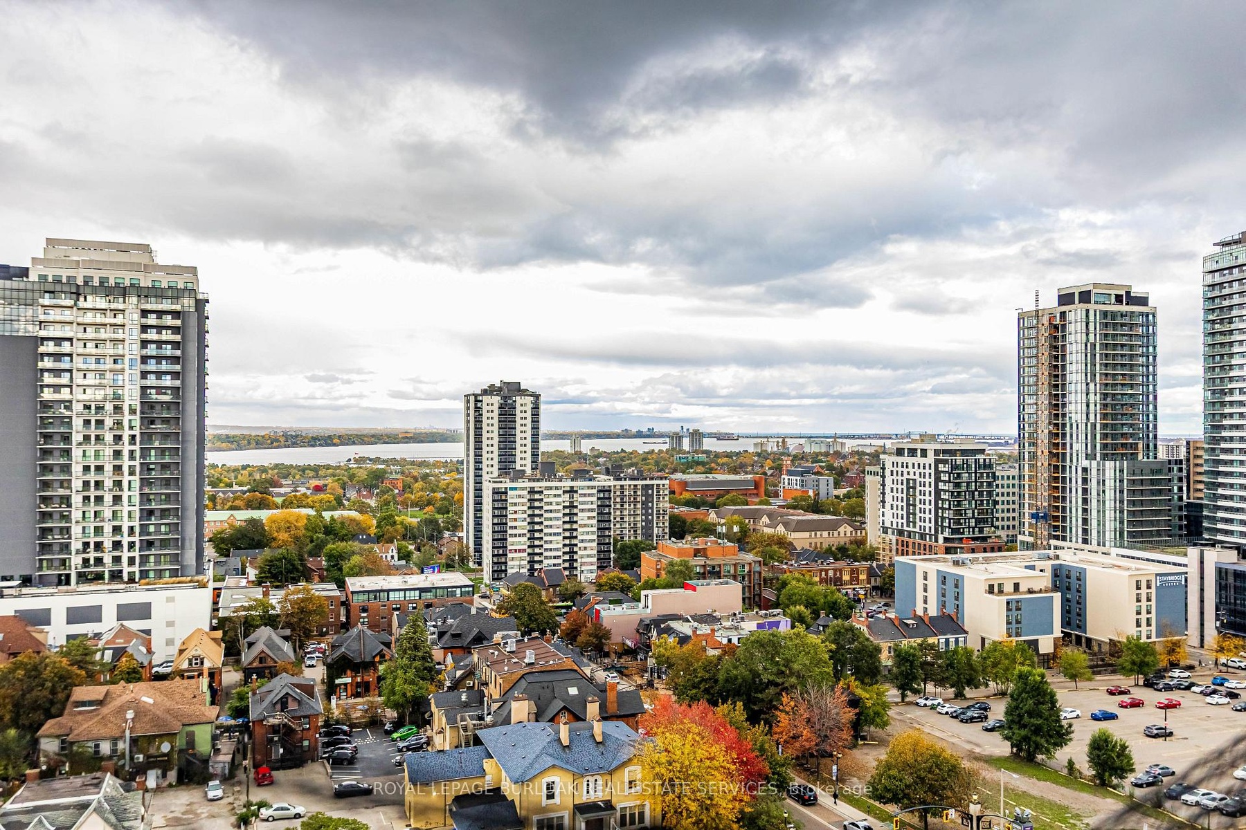 Beautifully upgraded 10th-floor spacious corner suite with 1,350 sq. ft of living space with 2 or 3 bedrooms using the dining area, offering sweeping southeastern views. The renovated kitchen features high-quality stone countertops and stainless steel appliances, tiled, backsplash, and a pantry closet, providing both style and functionality. The second bedroom is currently being used as an office, but can easily be a bedroom. The bathrooms have been tastefully upgraded with stone countertops, modern fixtures and finishes. The unit offers, engineered hardwood flooring and tile, lots of storage space and a private covered balcony, perfect for outdoor relaxation, and includes underground parking (P2A-#96) along with a storage locker (#4-52). The well-maintained building offers excellent amenities such as a party room on the penthouse floor overlooking the lake and the city for gatherings, a fitness gym, and a sauna for relaxation, and includes visitor parking near the front door. Located in the Village Hill Condominium in the trendy Durand neighbourhood, this residence is a short walk to Locke Street and Hess Village, plus nations, grocery store in the Hamilton market, trendy coffee shops, diverse restaurants, the theaters, art gallery, and independent boutiques. It is also conveniently near Hamilton Convention Centre, First, Ontario, Centre, and sports venues the the hospital, Go Station with easy access to Highway 403, and the newly planned LRT will have a stop nearby making commuting a breeze.