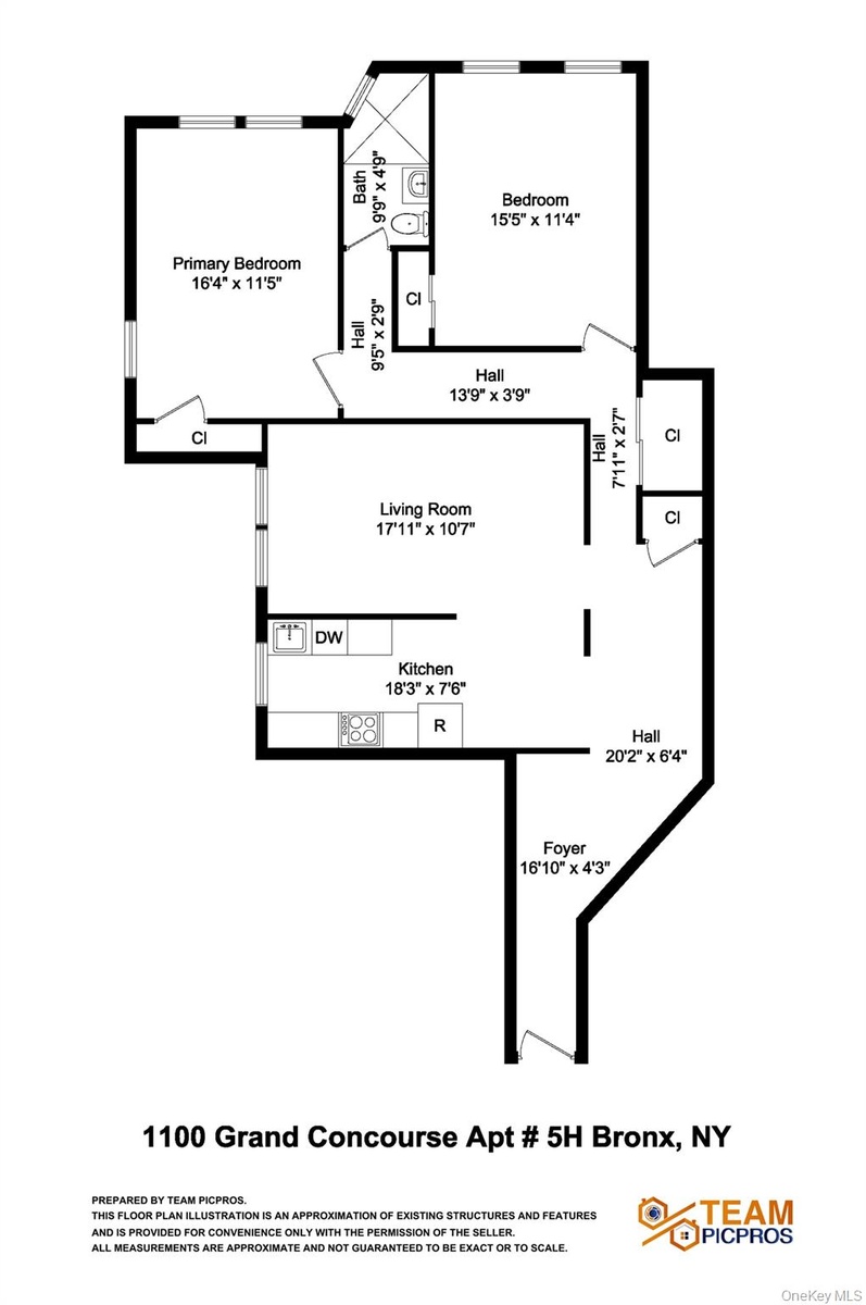 Once considered by The New York Times one of the most prominent residential buildings in the Bronx, the iconic 1928 John Ericsson Building, now known as 1100 Grand Concourse, is a distinguished part of the Grand Concourse Historic District. Within its walls lies this tastefully renovated 2-bedroom, 1-bath residence, blending pre-war charm with the comfort of modern living. This spacious home features high ceilings, gleaming hardwood floors, and oversized windows that fill the rooms with natural light. The modern kitchen features sleek white cabinetry, quartz countertops, brand-new stainless-steel appliances, and it's equipped with washer/dryer hook up. The spa-like bath showcases floor-to-ceiling marble-style tile, a glass-enclosed rain shower, and matte black fixtures for a bold contemporary touch. This well-maintained, elevator co-op offers a live-in super, on-site laundry, and a beautifully preserved lobby that reflects the building’s historic character. Ideally situated next to the Bronx Museum of the Arts and across the street from the historic Andrew Freedman Home, this address places you in the cultural heart of the Grand Concourse. Enjoy easy access to the Bx1, Bx2, and BxM4 bus lines, as well as the B/D and 4 subway lines, for a quick commute into Manhattan. You’re also just steps away from Yankee Stadium and the green spaces of Franz Sigel and Joyce Kilmer Parks and just a 12 min walk from Bronx Care Hospital.