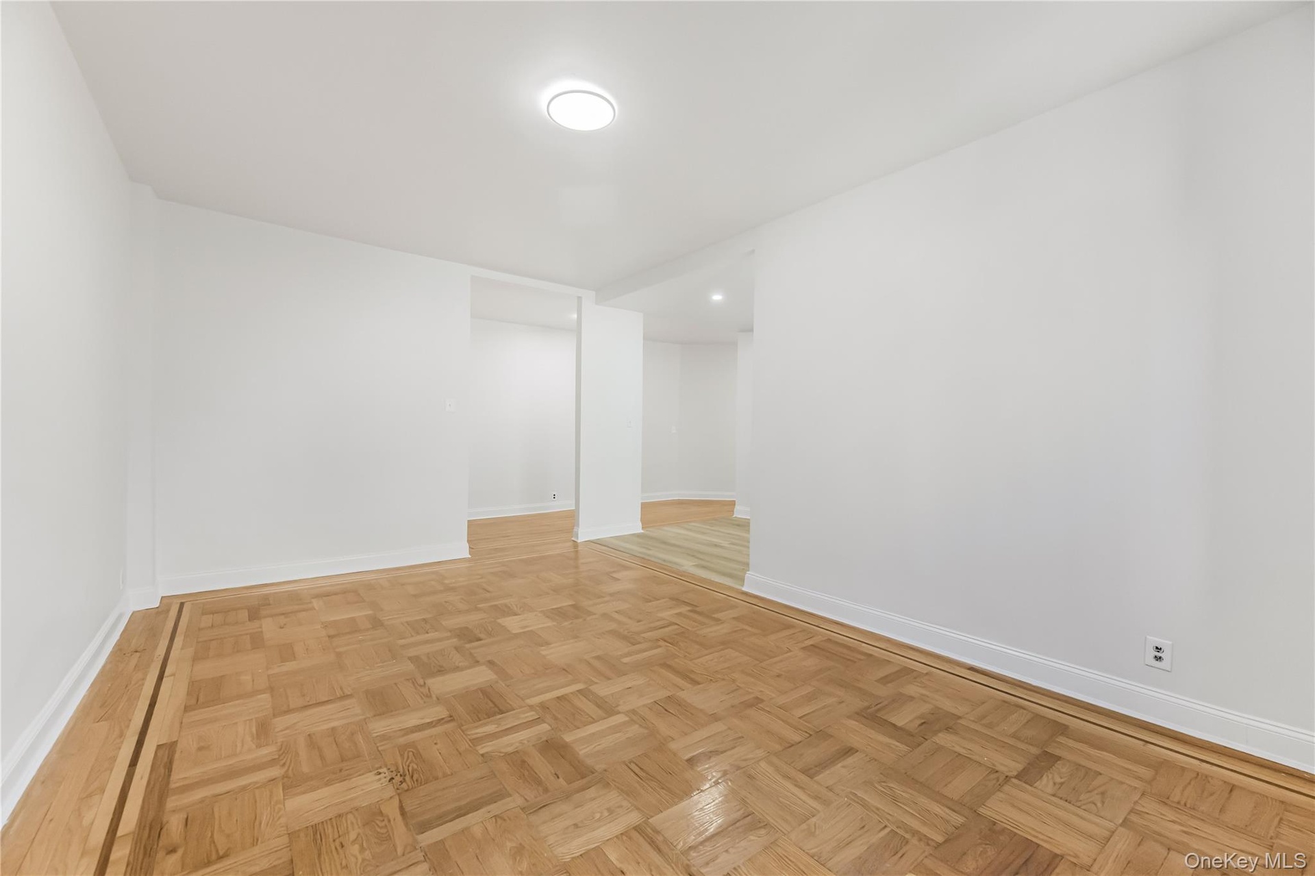 - Empty room featuring light wood-style floors and recessed lighting