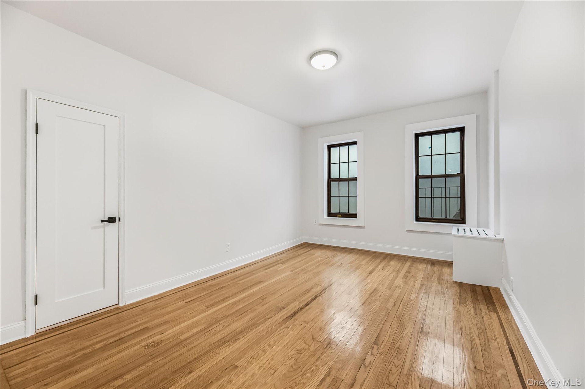 - Unfurnished room with light wood finished floors and radiator