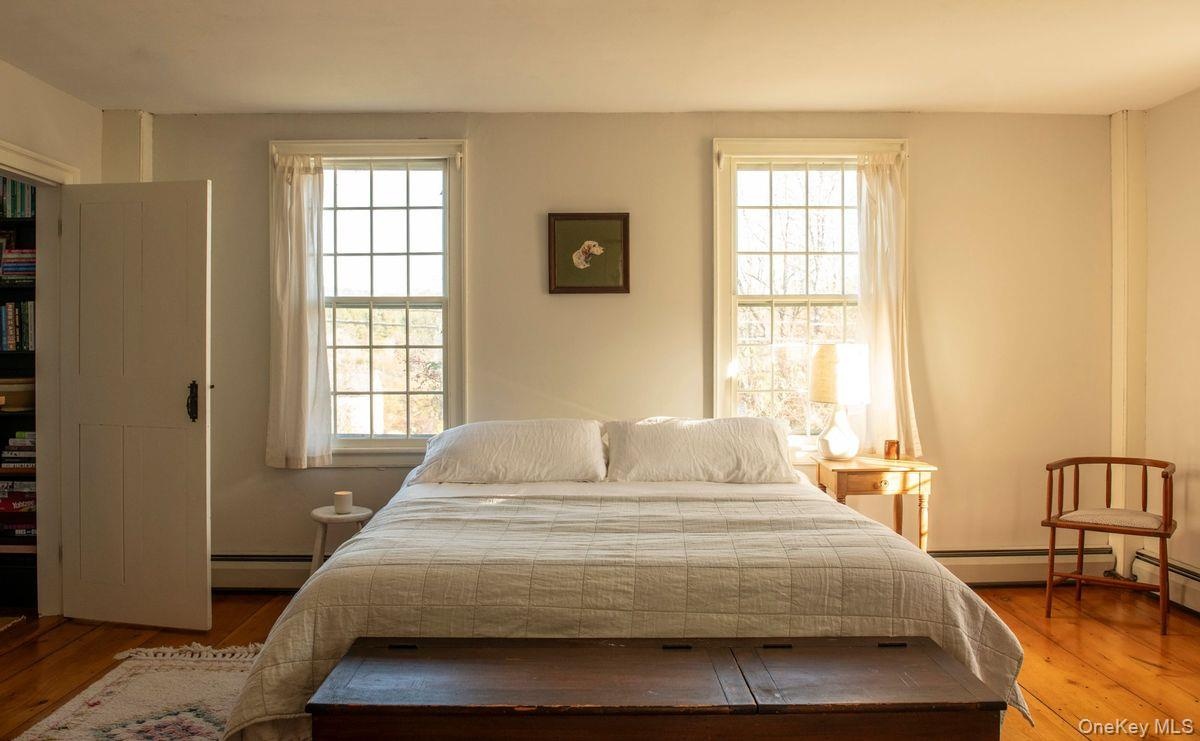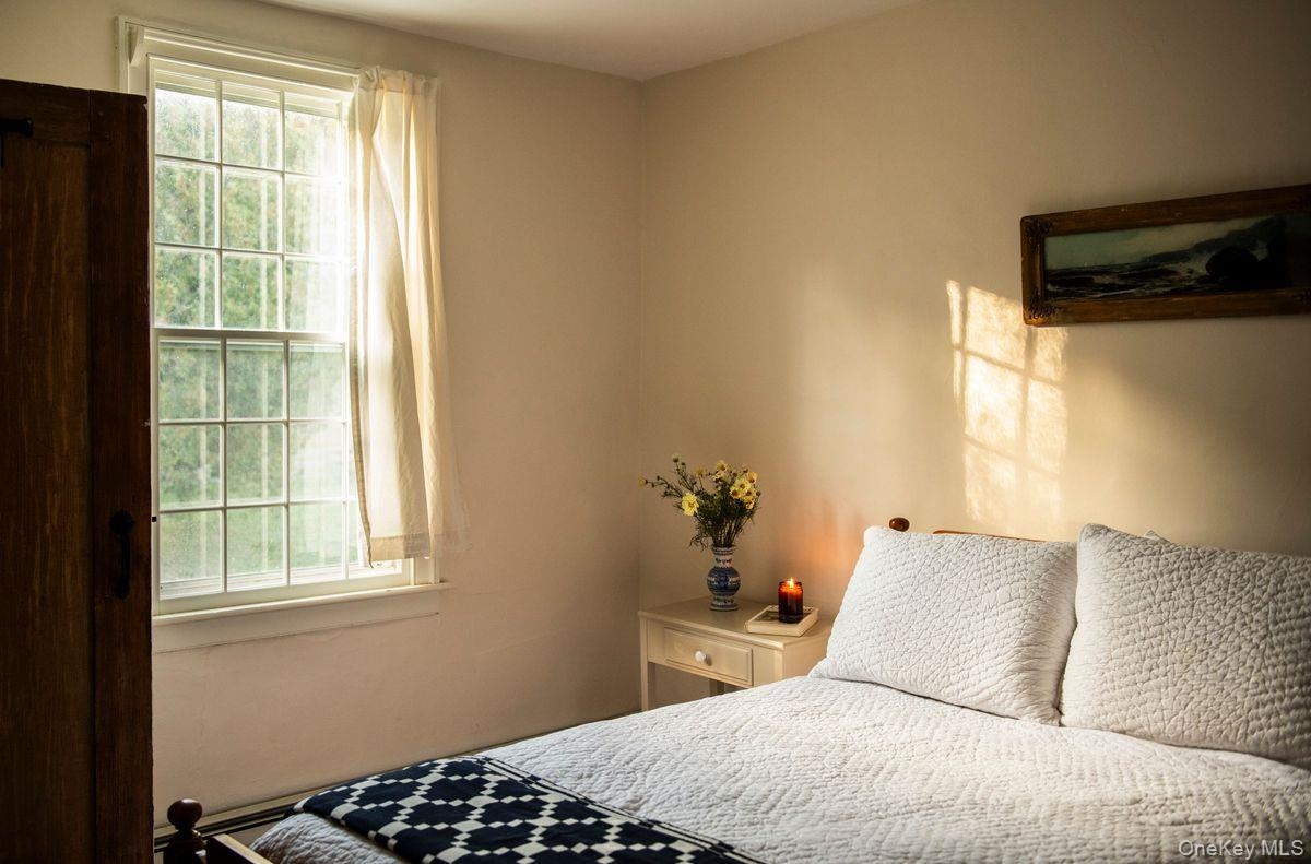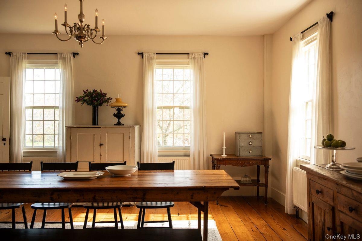 Said to be Hillsdale's second oldest home, this historic c1788 Shaker built center chimney Colonial sits on 17 acres of sprawling green hillside, gardens, and fruit trees. Once the home of Captain John Collin III, the home sits along the beautiful corridor connecting the Hudson Valley and the Berkshires— an area characterized by its rolling hillsides and rural landscape. Meticulously restored, you’ll find fabulous period details such as original 12-over-12 wavy glass windows with custom storms, beautiful curved walls, hand hewn beams and old growth pine floors. Enormous slabs or marble make up the front steps & foundation walls. You’ll find wonderfully high ceilings for a house of this age, and a four season sunroom with radiant heated floors & AC. Despite its formal proportions the house lives comfortably, the kitchen opens to a lovely seating area with a wood burning fireplace, undoubtedly the room you’ll spend most of your time in. There are two additional, large sitting/dining areas on the first floor, a mudroom & powder room. Upstairs, you’ll find five bedrooms, some large & lightfilled and others charming & petite, and two full baths including an ensuite in the primary. Outside, the 17 acres are comprised of woods and meadow, there is a fenced in garden with ten raised beds & a garden shed, heirloom varieties of apples, peaches and pears. A trail meanders through the woods. There is a full house generator. An early home with pedigree, you are just 15m to Great Barrington, 20m to Hudson, and under 2.5h from NYC.