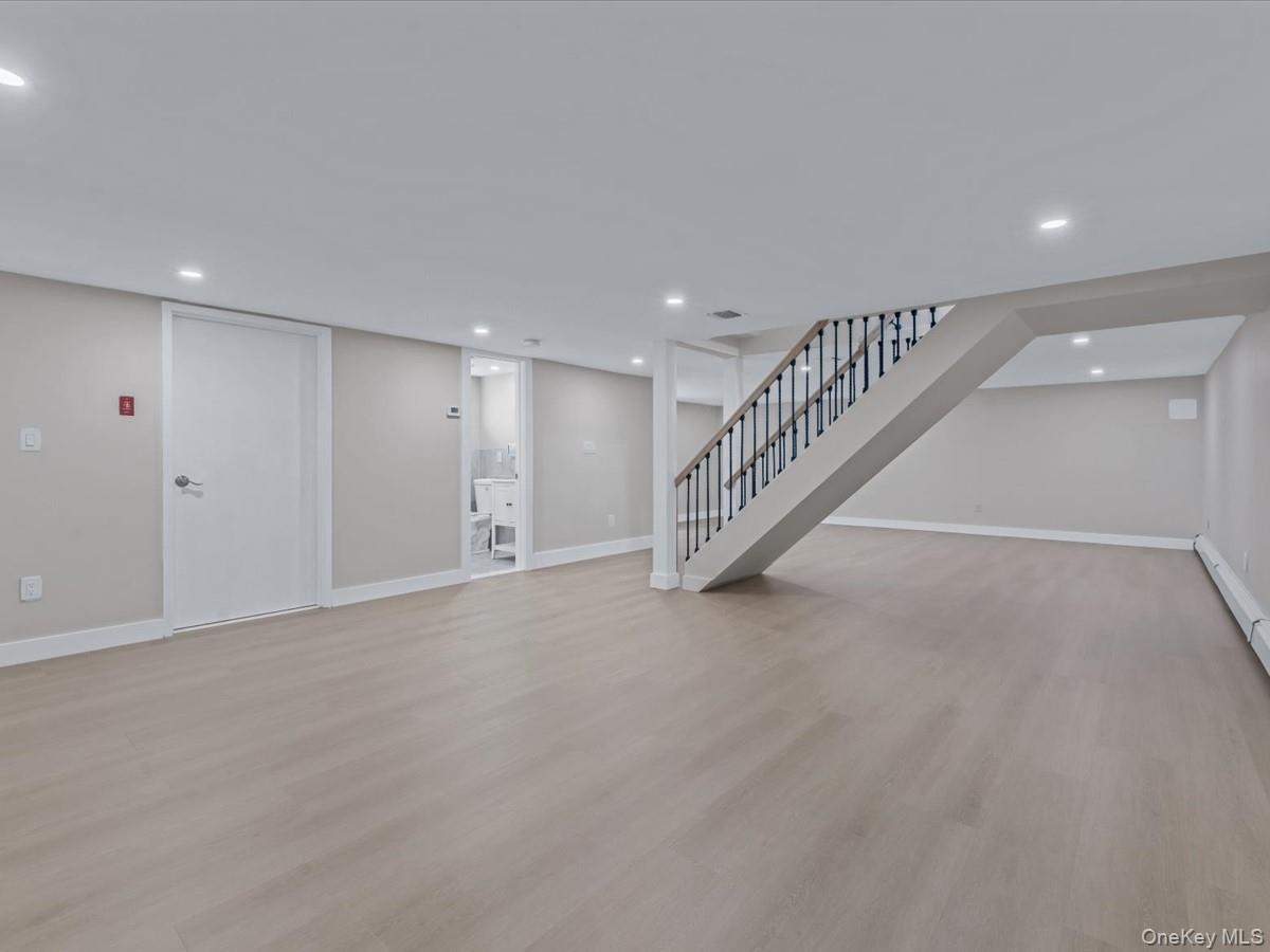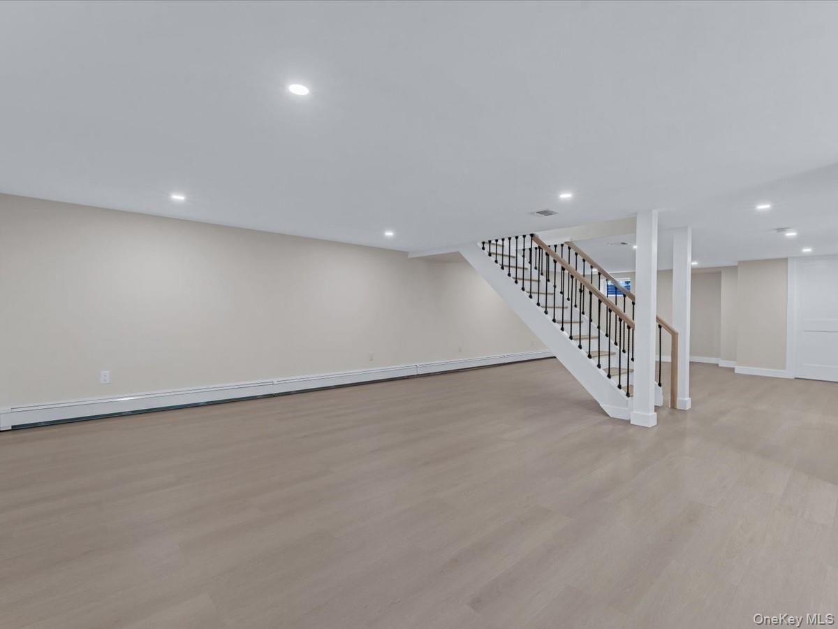 Finished basement providing versatile space for a recreation room, gym, home office, or playroom.