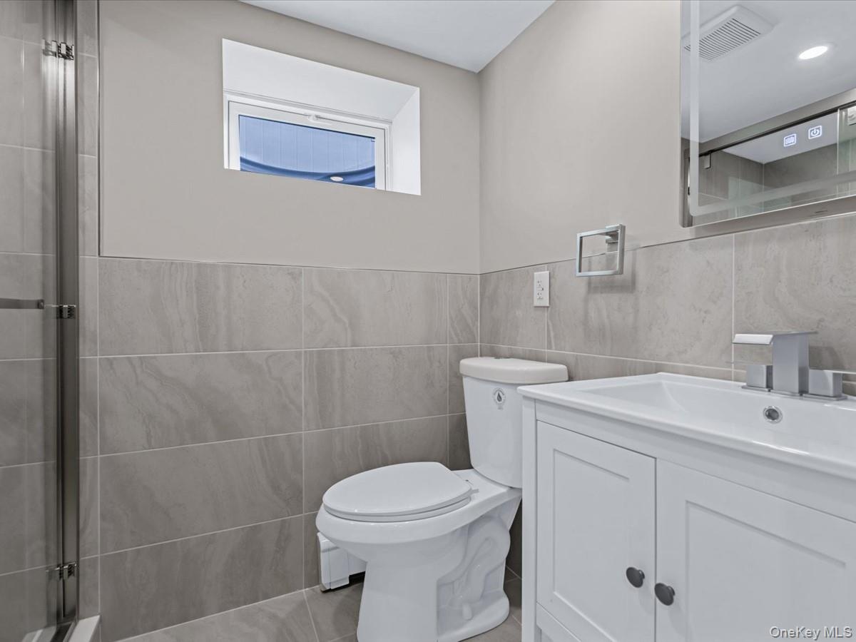 Elegant half bath on the main floor, plus three full bathrooms in total.