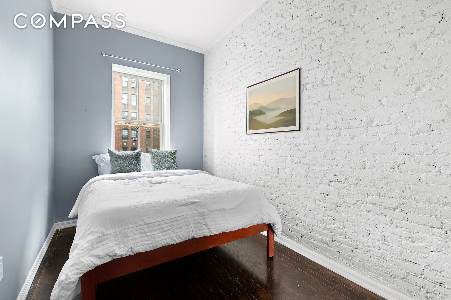 This charming 1-bedroom, 1-bathroom residence, located on the third floor of a landmarked townhome, masterfully blends classic elegance with modern convenience. The home features a cozy wood-burning fireplace and exposed brick walls, adding warmth and character to the inviting living space.