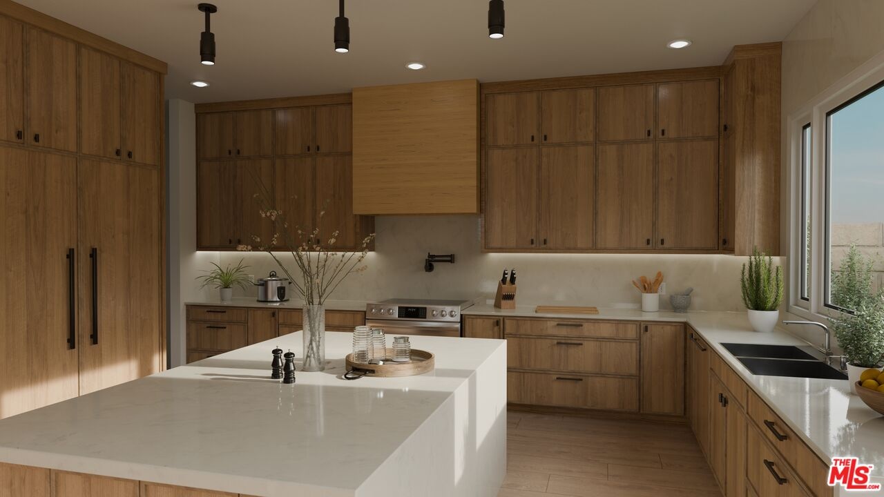 Modern Luxury in Mar Vista's Wood Streets - New Construction with December Completion. Experience elevated living in this brand-new 5-bed, 4.5-bath architectural gem located on a prime lot in Mar Vista's highly coveted Wood Streets. Spanning approx. 4,134 sq ft, this modern masterpiece blends clean contemporary design with warm, timeless finishes. Blending indoor comfort with outdoor elegance, the home features light-filled spaces, expansive windows, and Fleetwood pocket doors for a true California living experience. The chef's kitchen boasts custom rift oak cabinetry, top-of-the-line Thermador appliances, and a sleek butler's pantry. Host memorable gatherings in the elegant dining room, then unwind in the spacious family room with beautifully crafted plaster built-in shelves. A private in-law suite on the main level adds flexibility for guests or multi-gen living. Upstairs, the luxurious primary suite offers vaulted ceilings, spa-inspired bath, oversized walk-in shower, and a custom closet. Enjoy the outdoors year-round with a built-in BBQ and comfortable lounge areas designed for relaxation and entertaining. Ideally located minutes from Venice, Abbot Kinney, Santa Monica, Culver City, and Mar Vista hotspots. Photos are renderings. Construction will be completed in early December 2025.