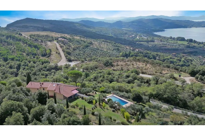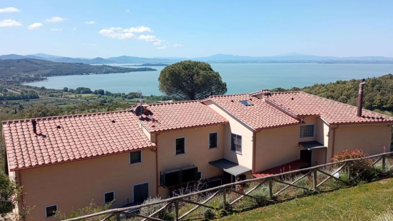 The main residence of approximately 265 sqm accommodates a double living area, a kitchen with large windows facing Lake Trasimeno, a small study, four bedrooms and four bathrooms.
