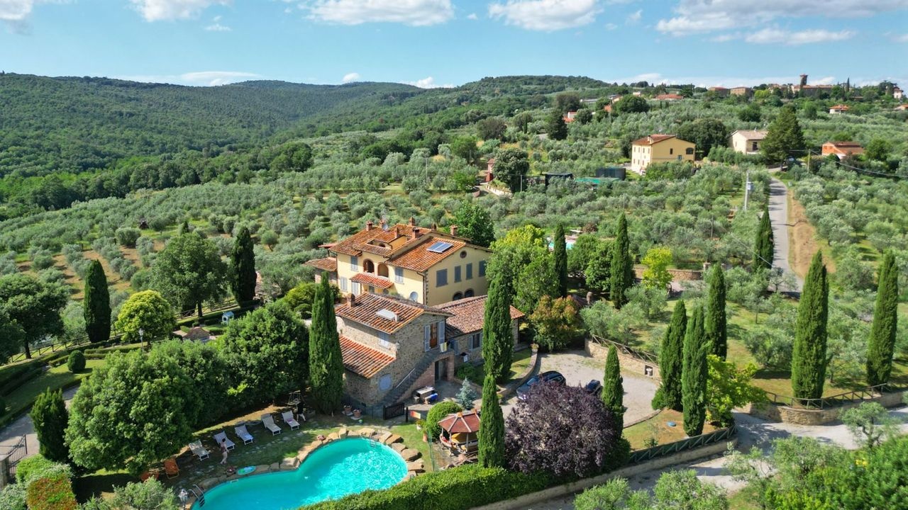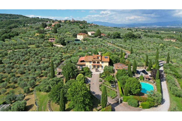 Magnificent historic villa surrounded by greenery and tranquillity, with private swimming pools and panoramic views of the Chianti region, for sale in the countryside of Arezzo.