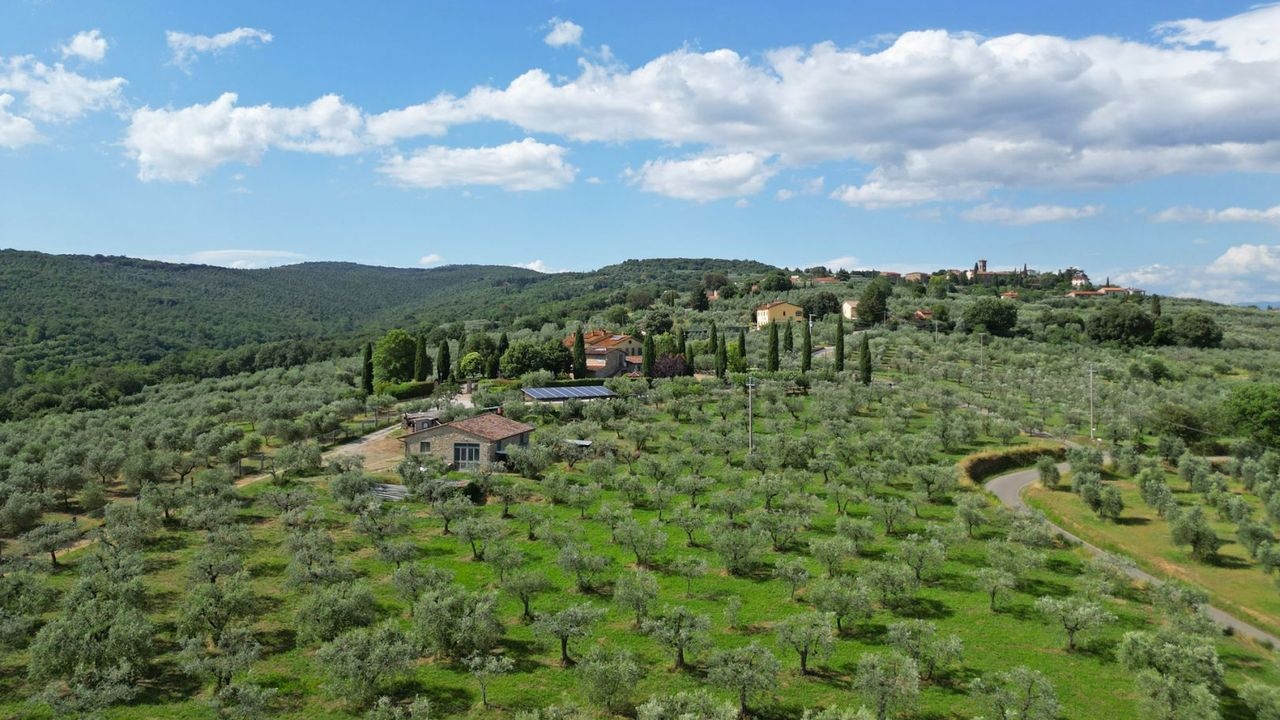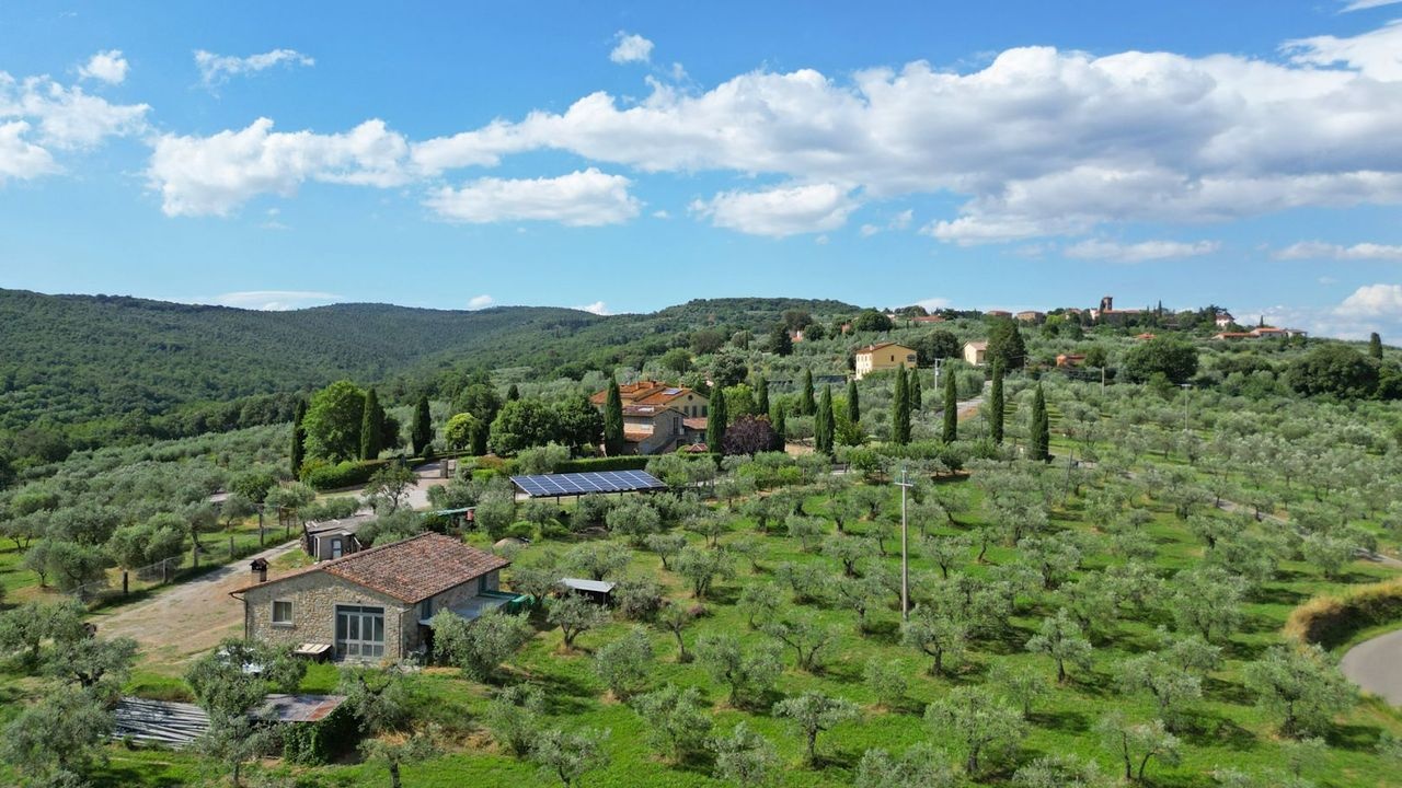 The property for sale includes approximately 22 hectares of land, comprising 8 hectares of woodland, 10 hectares of arable land and 3 hectares of olive grove with 1000 trees.