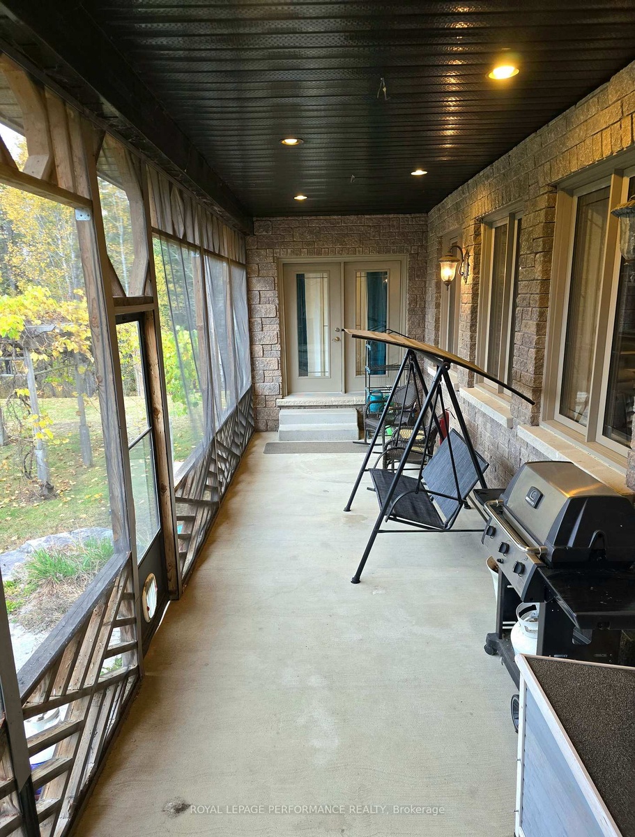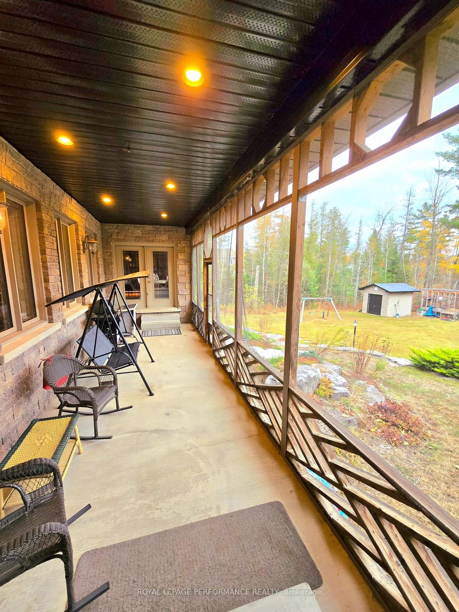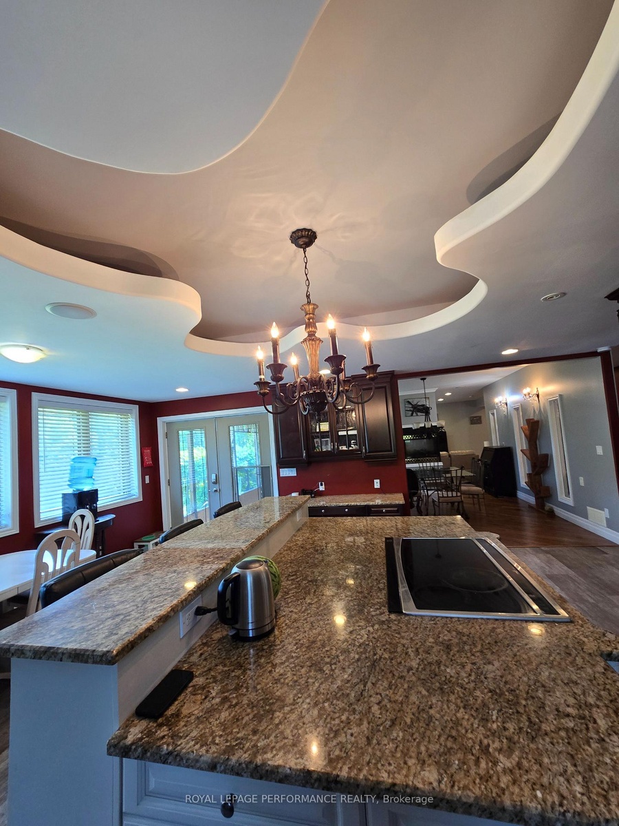 Distinctive custom all stone 4 bedroom bungalow on aprx 1 acre landscape lot in desirable Cotnam Island, Pembroke, with additional feature of a 2 bedroom In-Law Suite. Impressive entry hall welcomes you into this spacious home with aprx 5200 sq feet of living space, this custom home boast large, bright open concept living space with 9 ft ceilings, and high end finishes. Enjoy the ambiance of the 4 sided gas fireplace, accenting living & dining rooms area which open up to a well appointed kitchen with walkout to the screened-in expansive back porch overlooking the landscaped private yard with shed and greenhouse. The large sit in kitchen is equipped with custom cabinets, desk, high end appliances including induction cooktop with downdraft fan, wine fridge & sit at bar. Adjacent to the kitchen is a small den/office, plus main floor laundry room with counter & sink, plus linen closet. The main floor Primary bedroom also opens onto the back screened-in deck, has a walk-in closet and large ensuite bathroom with jetted tub, walk-in shower & heated floor & towel rack. Down the hall, 2 other main floor bedrooms share a 3 piece 'Jack & Jill' washroom. The fully finished lower level basement reveals a large recreation room with a wet bar, in-floor radiant heat, 3 piece bathroom, a 4th bedroom and large storage room. A little further down the hall, access to a 2 bedroom 'In Law Suite' with kitchen/living room, 3 piece bathroom, and a separate outdoor private entrance, which makes this an ideal 'multi generational' home. The double garage & driveway can accommodate 10 + vehicles. Don't let this gem get away, book your showing today.